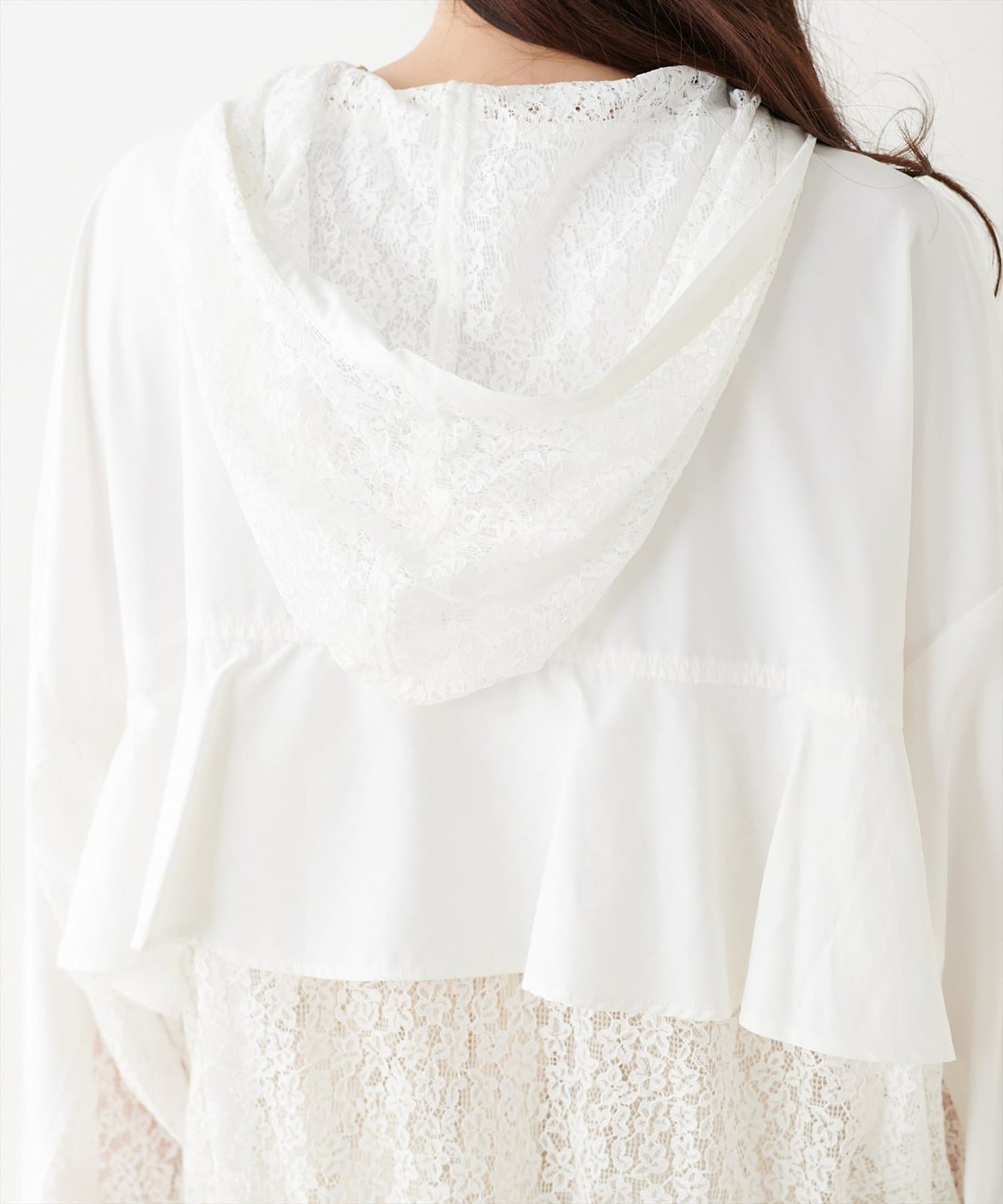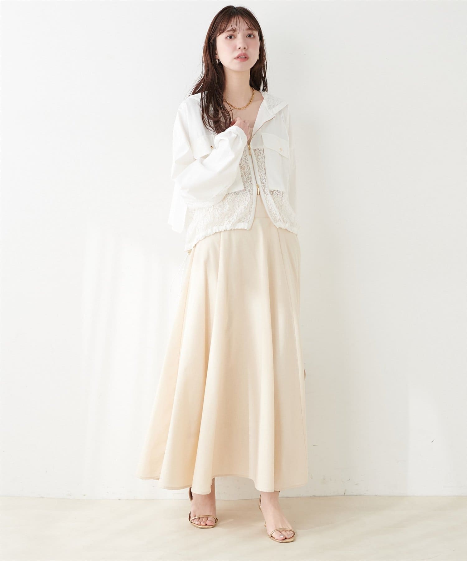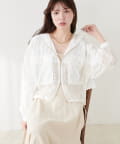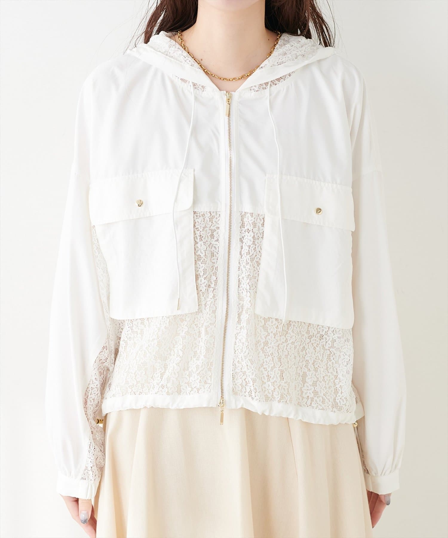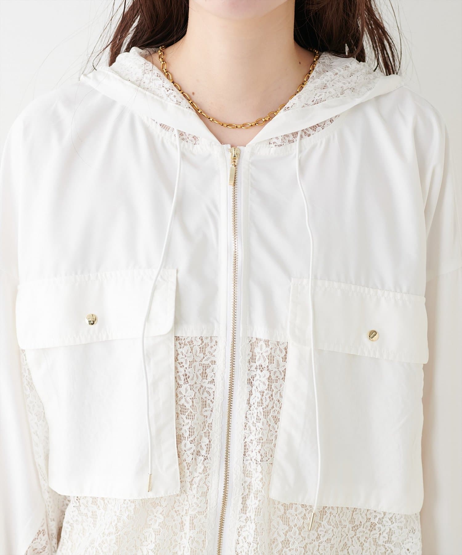 ブルゾンの持つラフな雰囲気と、レースの持つエレガントさが調和し、