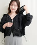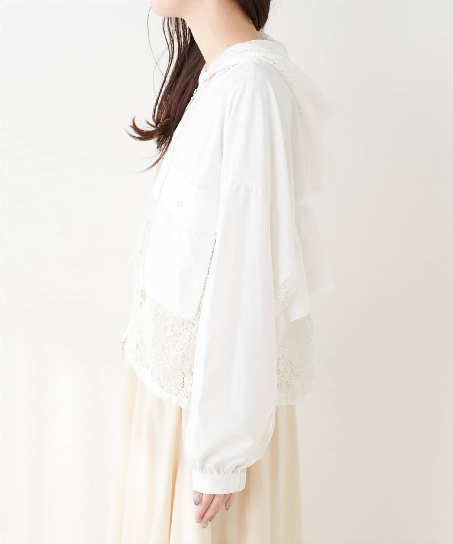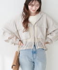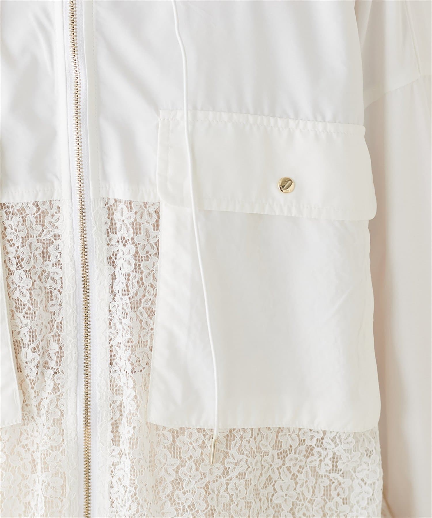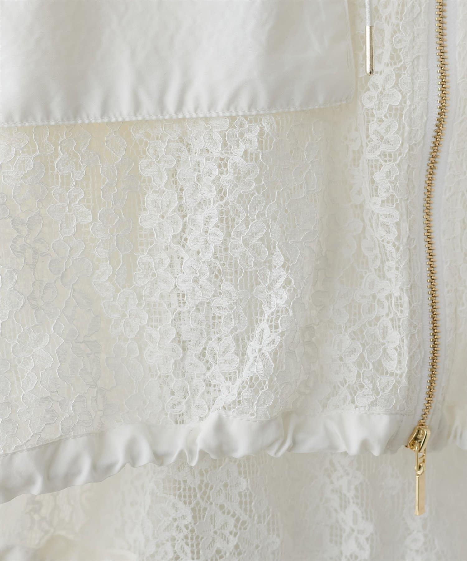 一見するとシンプルなブルゾンですが、フロント部分にあしらわれた繊細なレースが、フェミニンな印象をプラス。