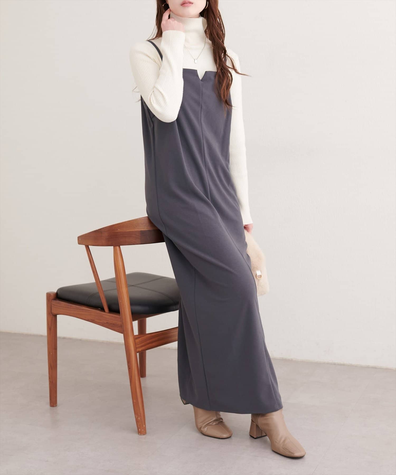 カットソーやニットとレイヤードして、普段使いに。