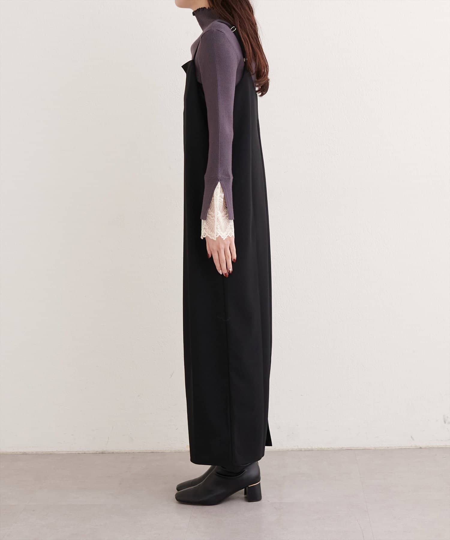 ストンと落ちるIラインシルエットは、ボディラインを拾わず、リラックスした着心地ながらもスタイルアップ効果が期待できます。