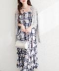 裾にかけてのゆるやかなフレアシルエットが女性らしさを演出し、身体のラインをすっきり見せてくれる大人レディな一着。