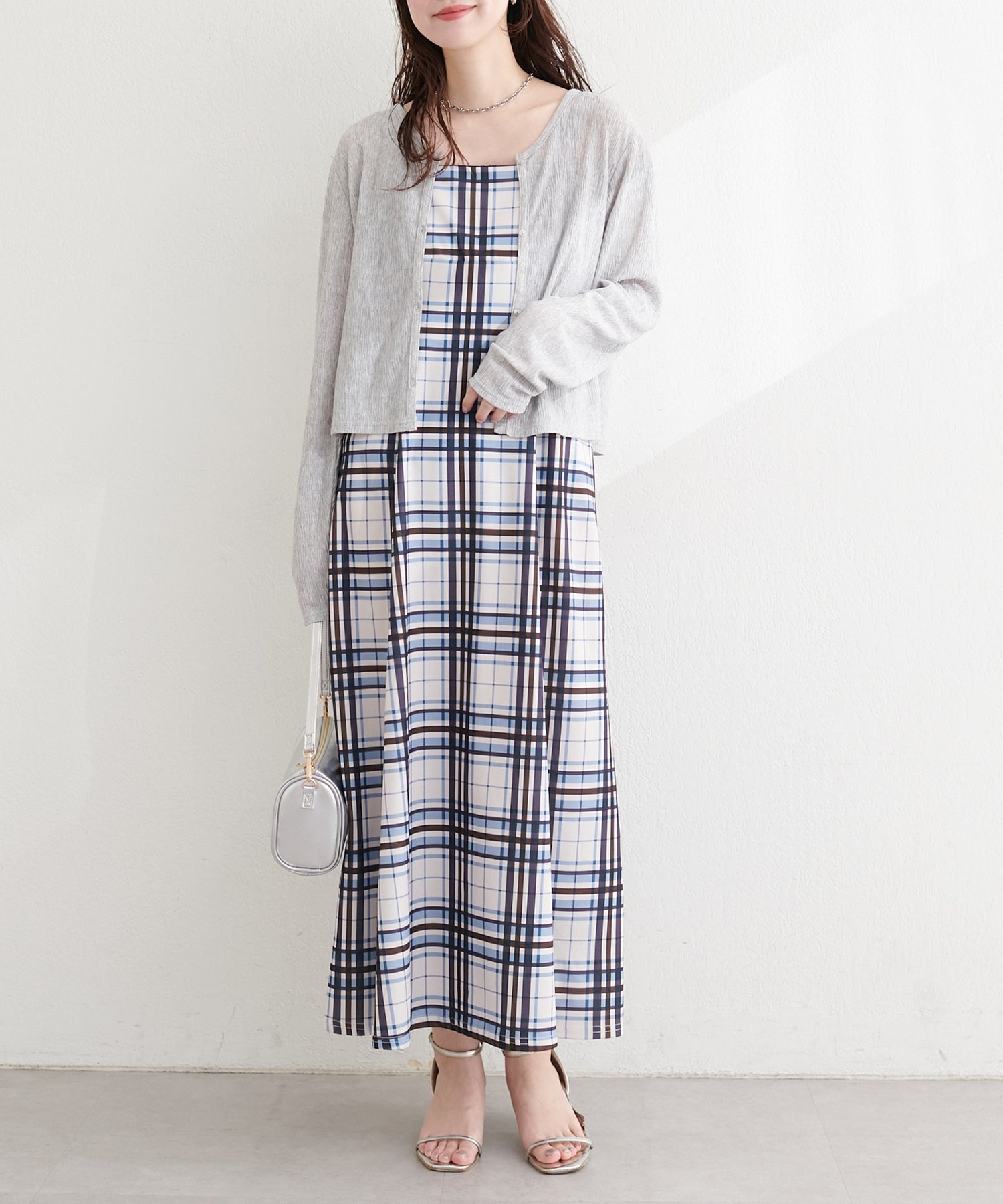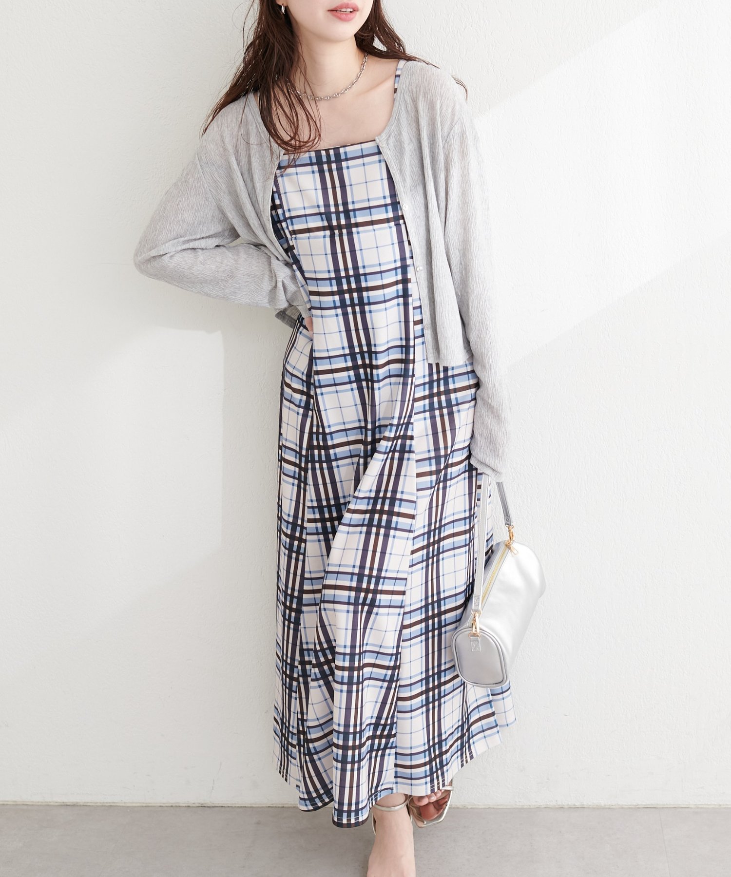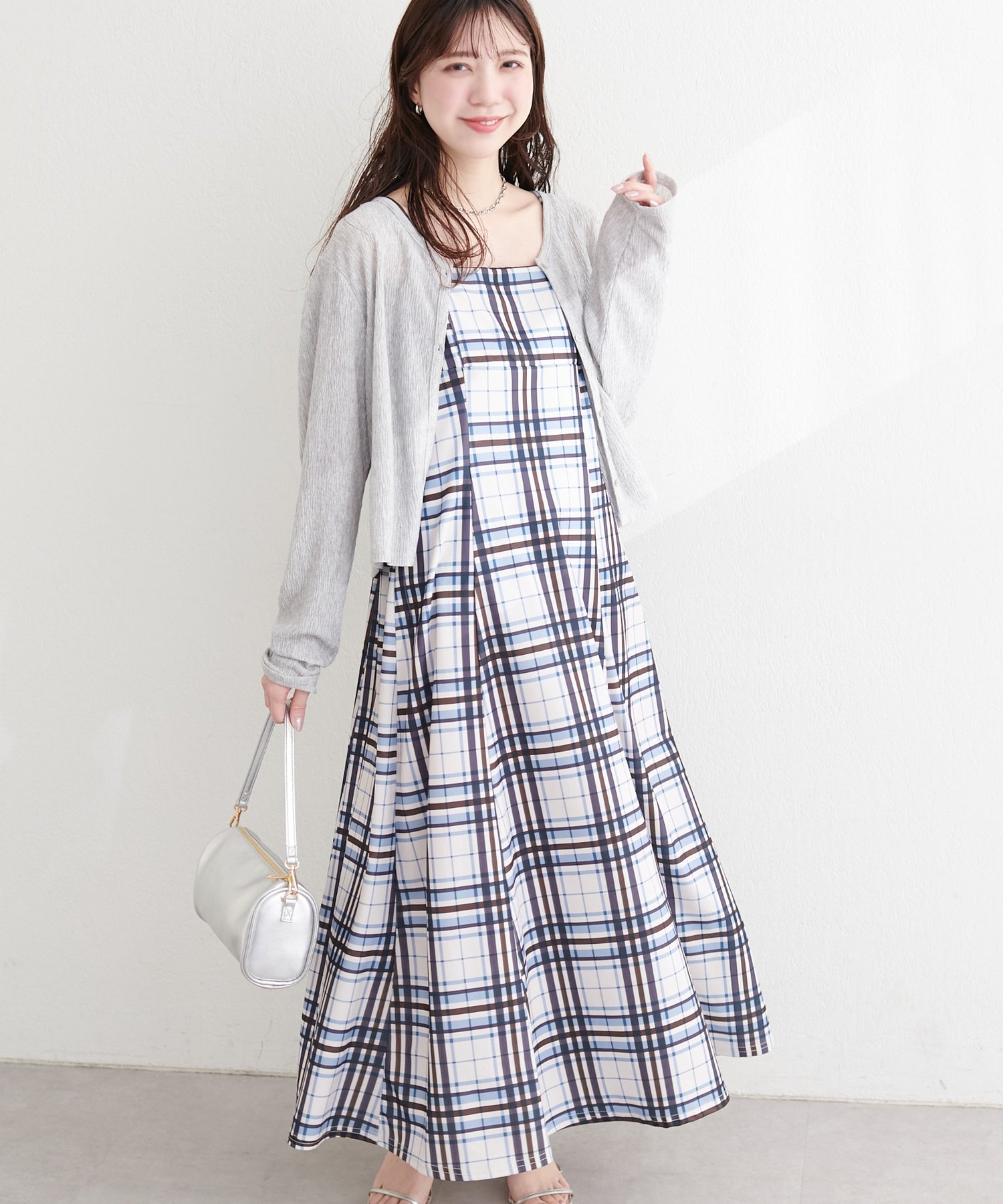 ニットなどをワンピの上に着て、レイヤードスタイルでも秋冬らしく決まります。