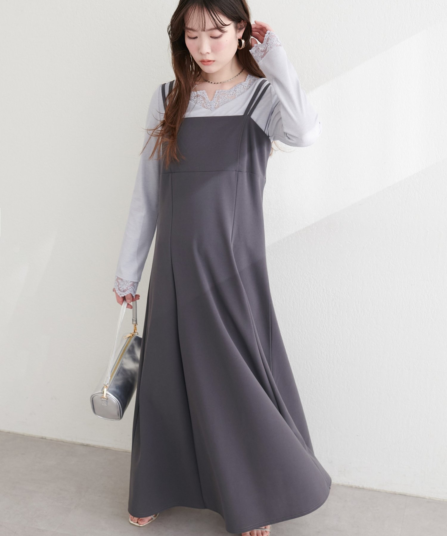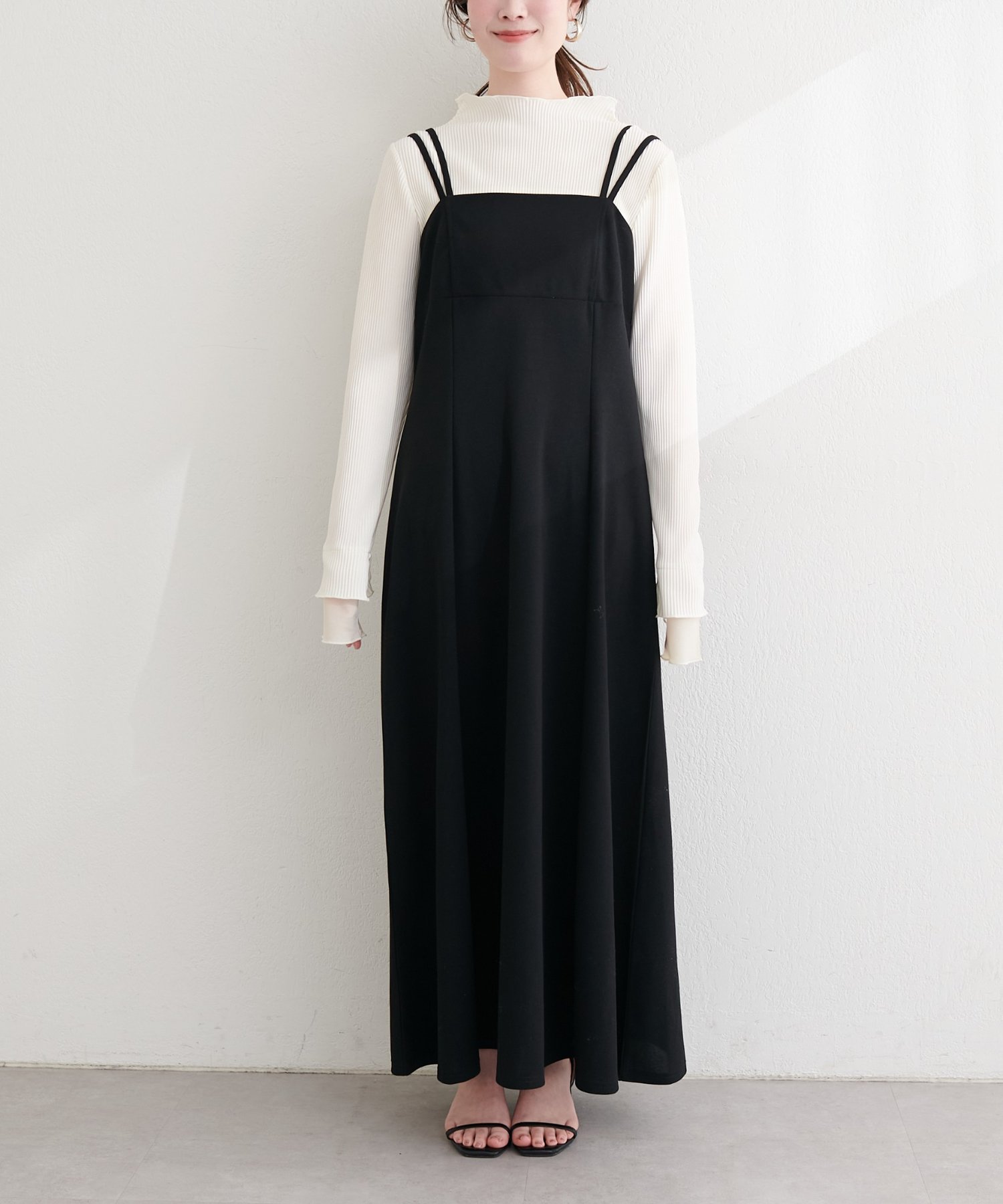 カットソーのような柔らかい素材感と風合いのキャミワンピース。