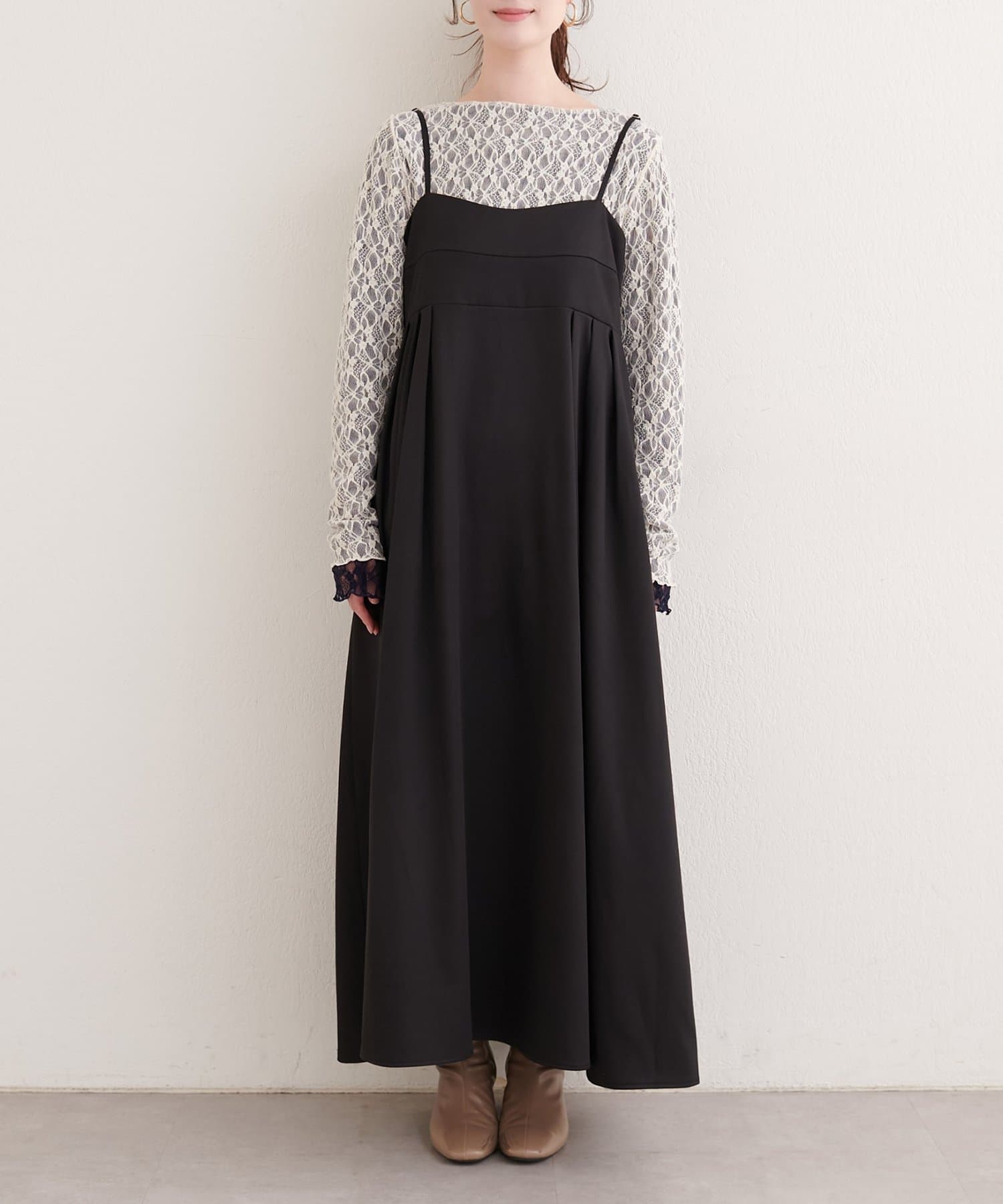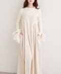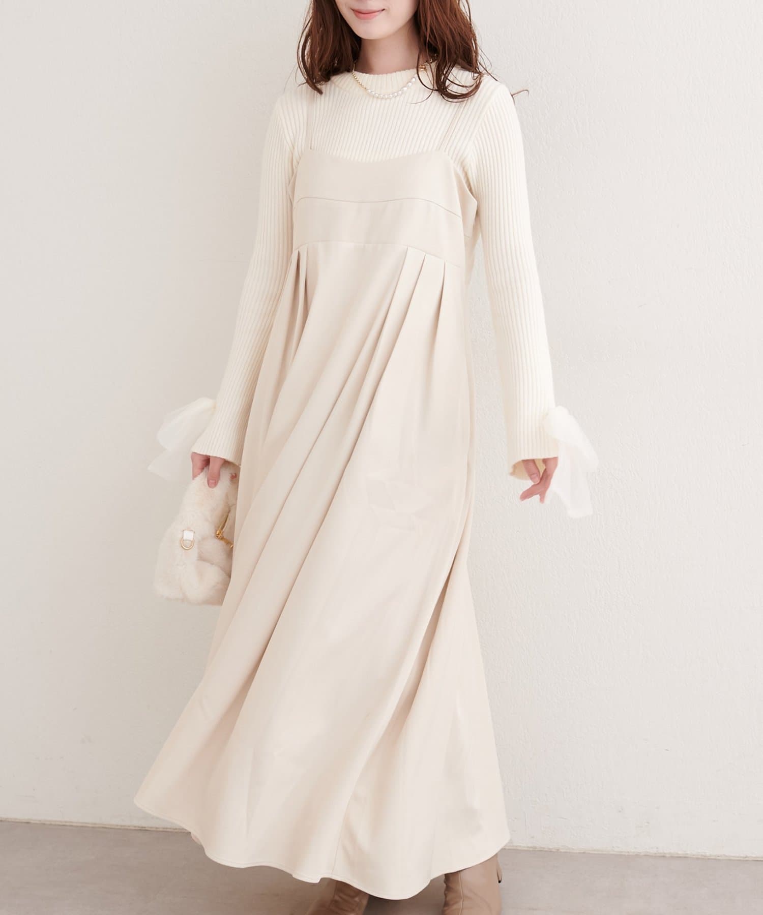 胸元から裾にかけて施されたタックが、美しいドレープを生み出し、優雅なシルエットを演出。