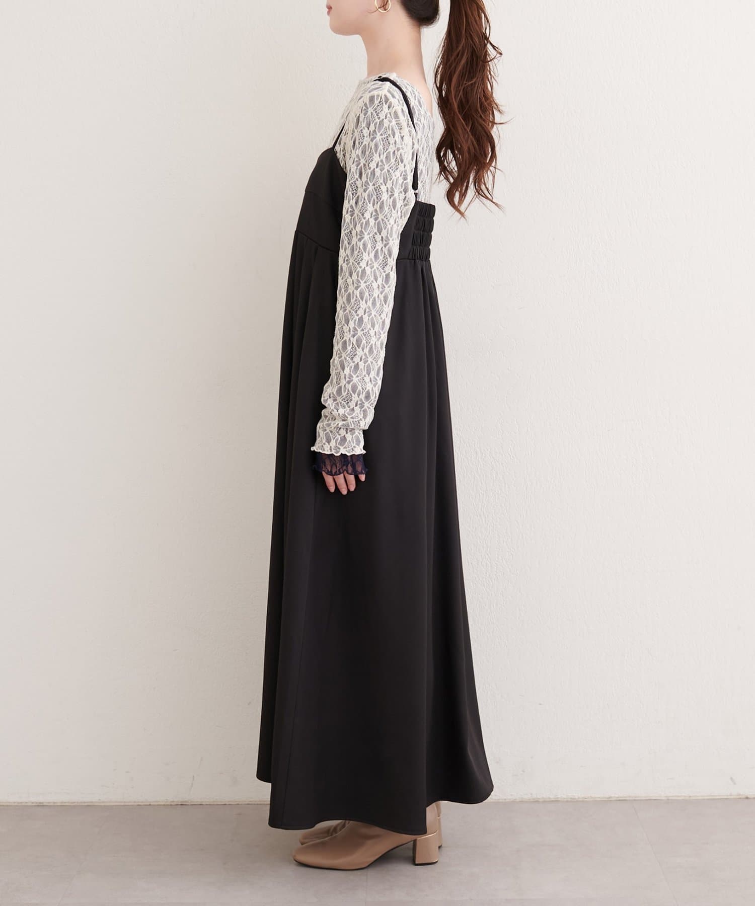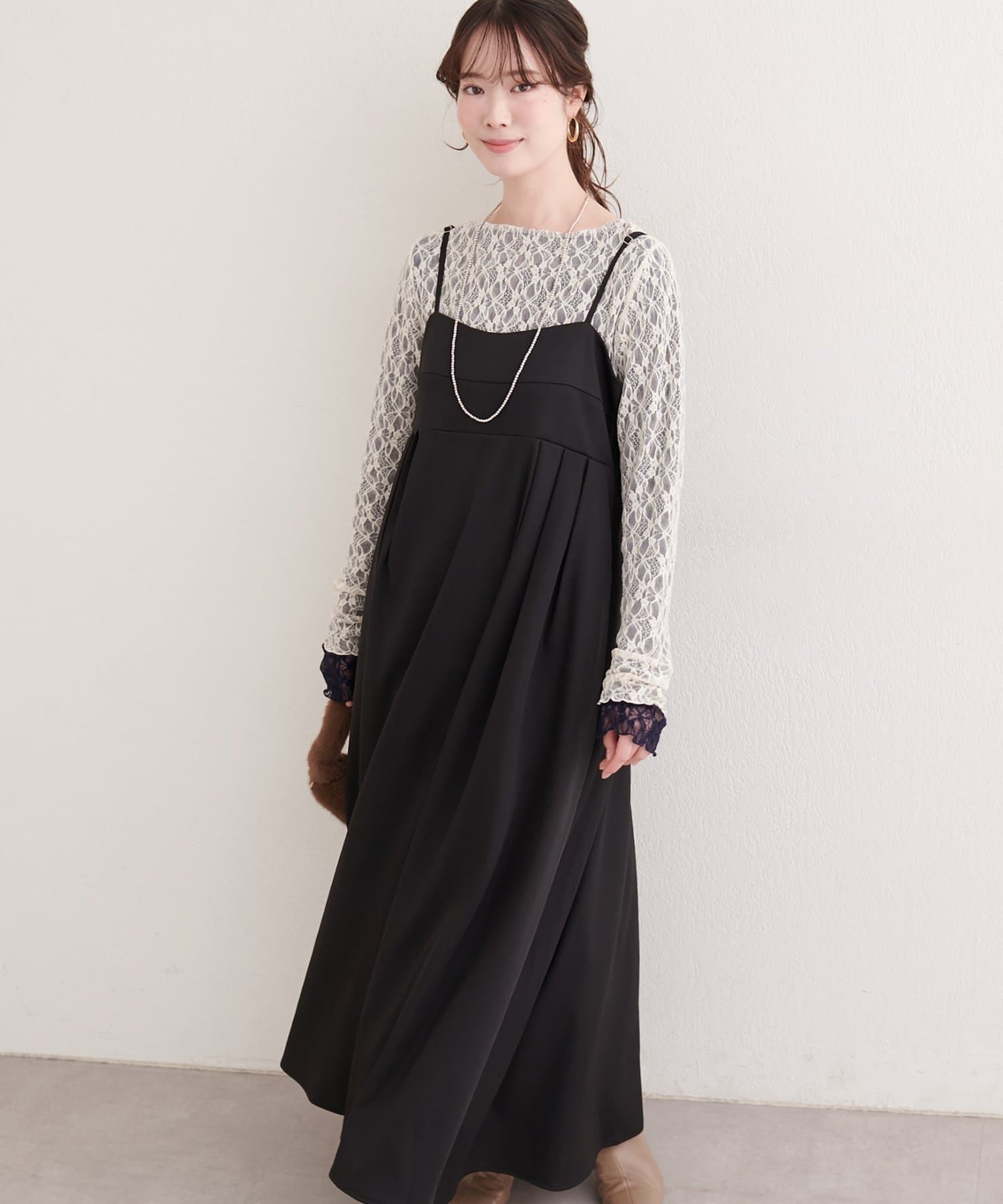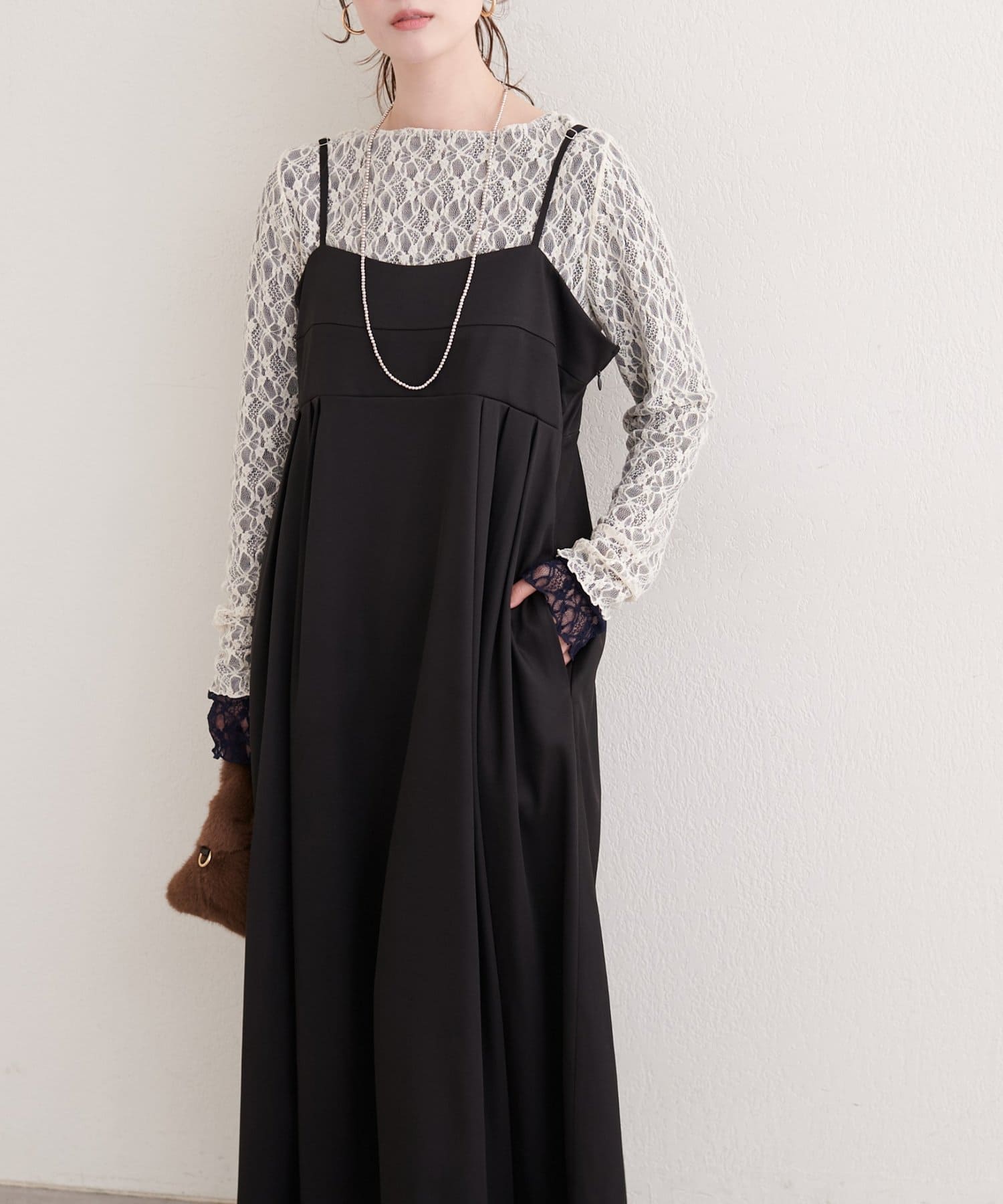 画像のように、レーストップスと合わせて、よりフェミニンな印象に。
