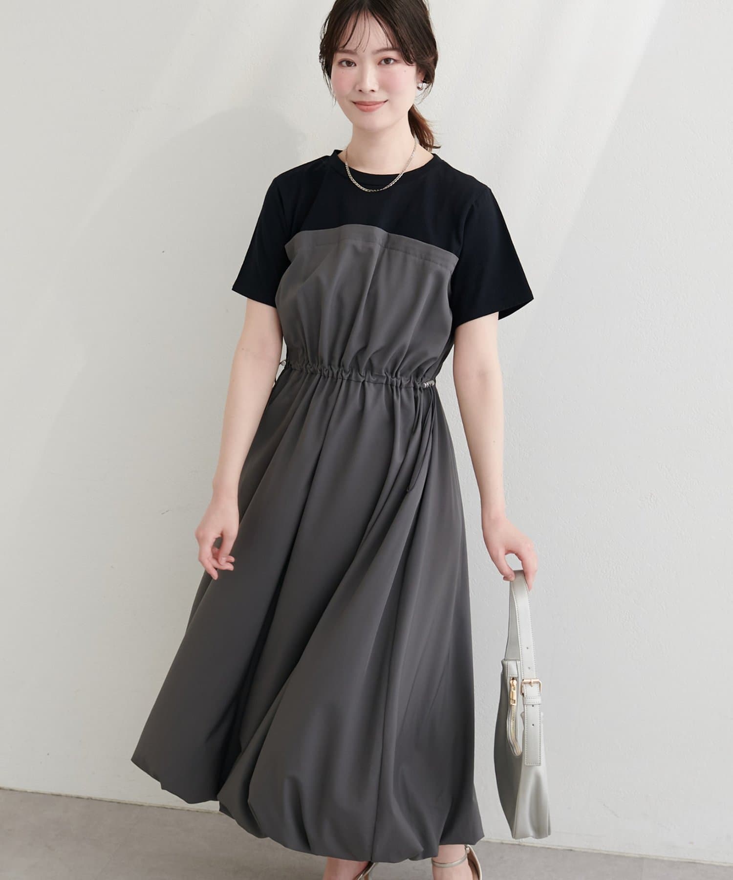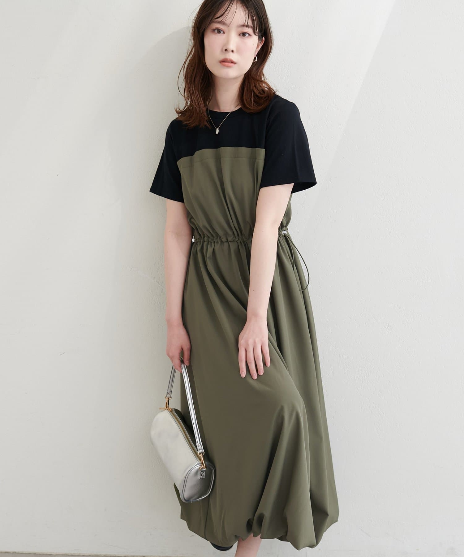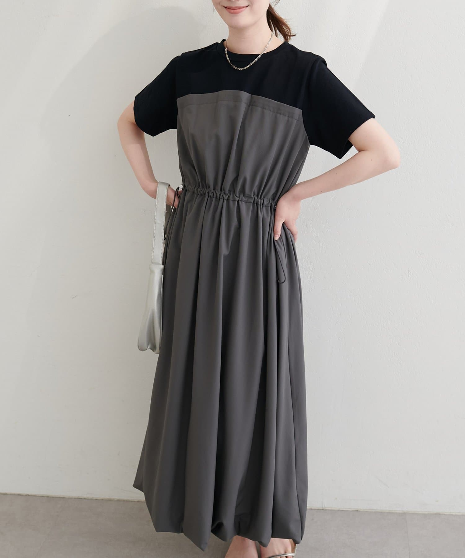 半袖ドッキングバルーンワンピース