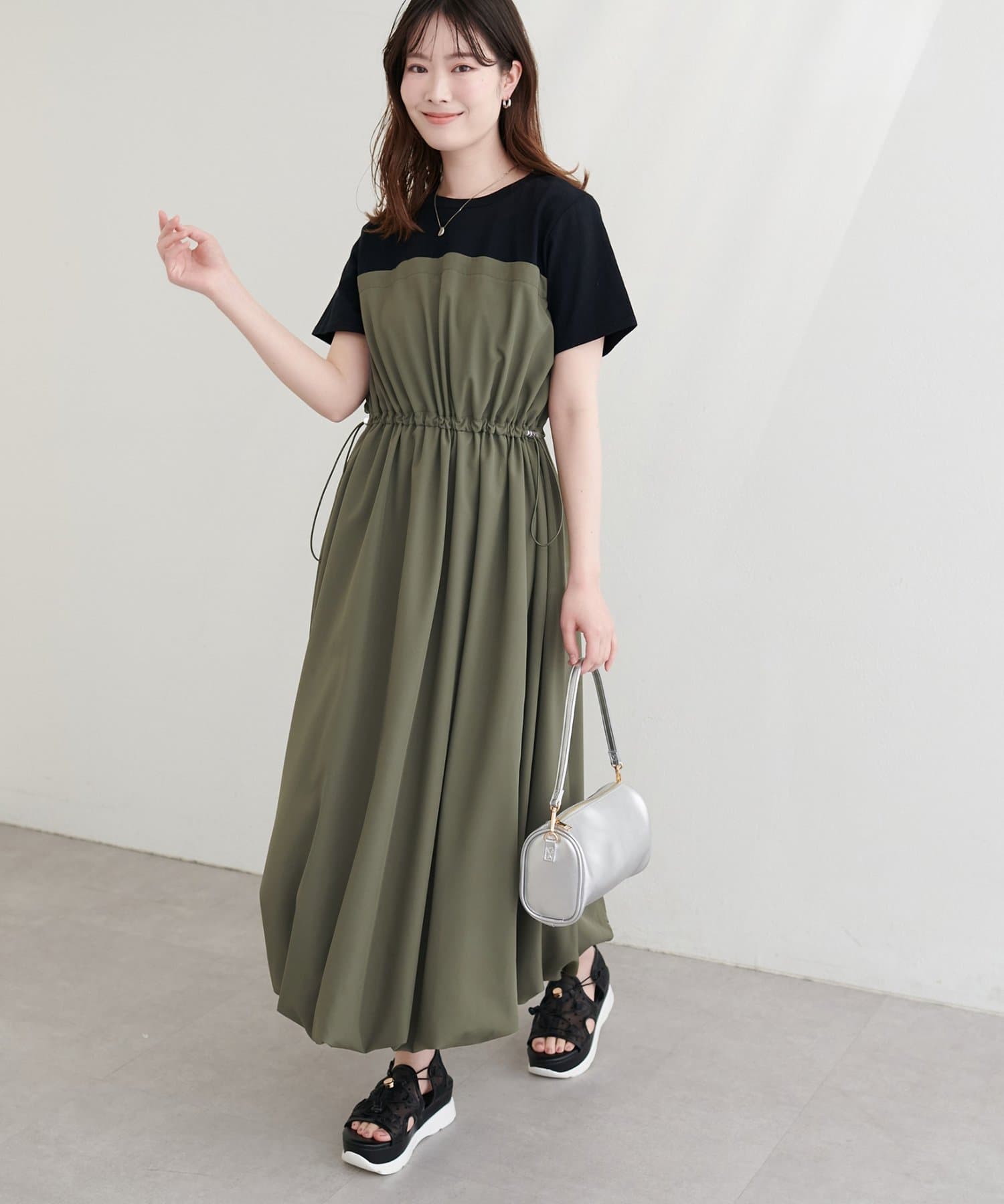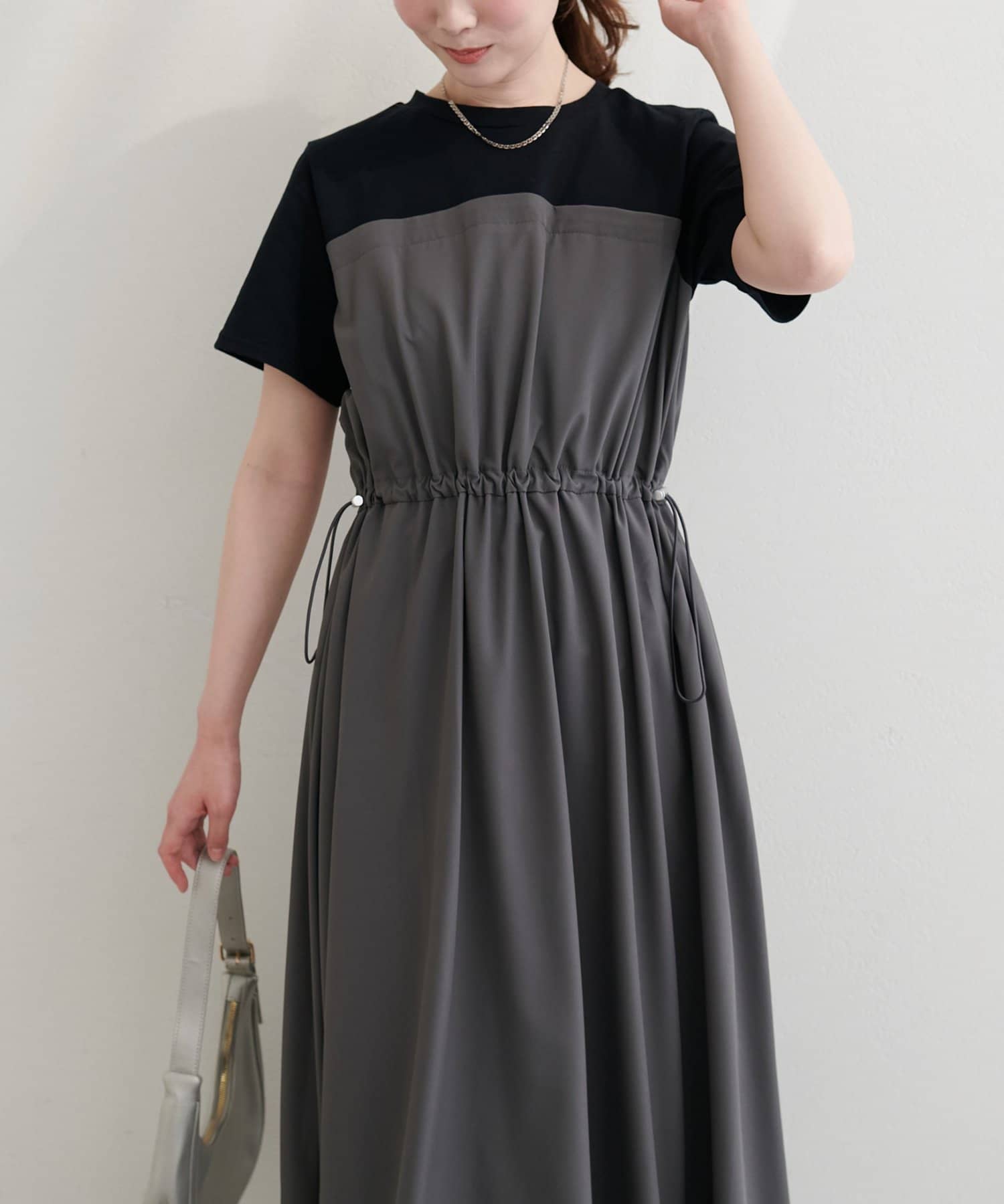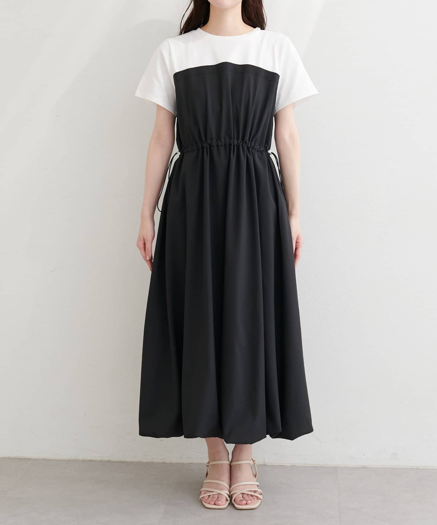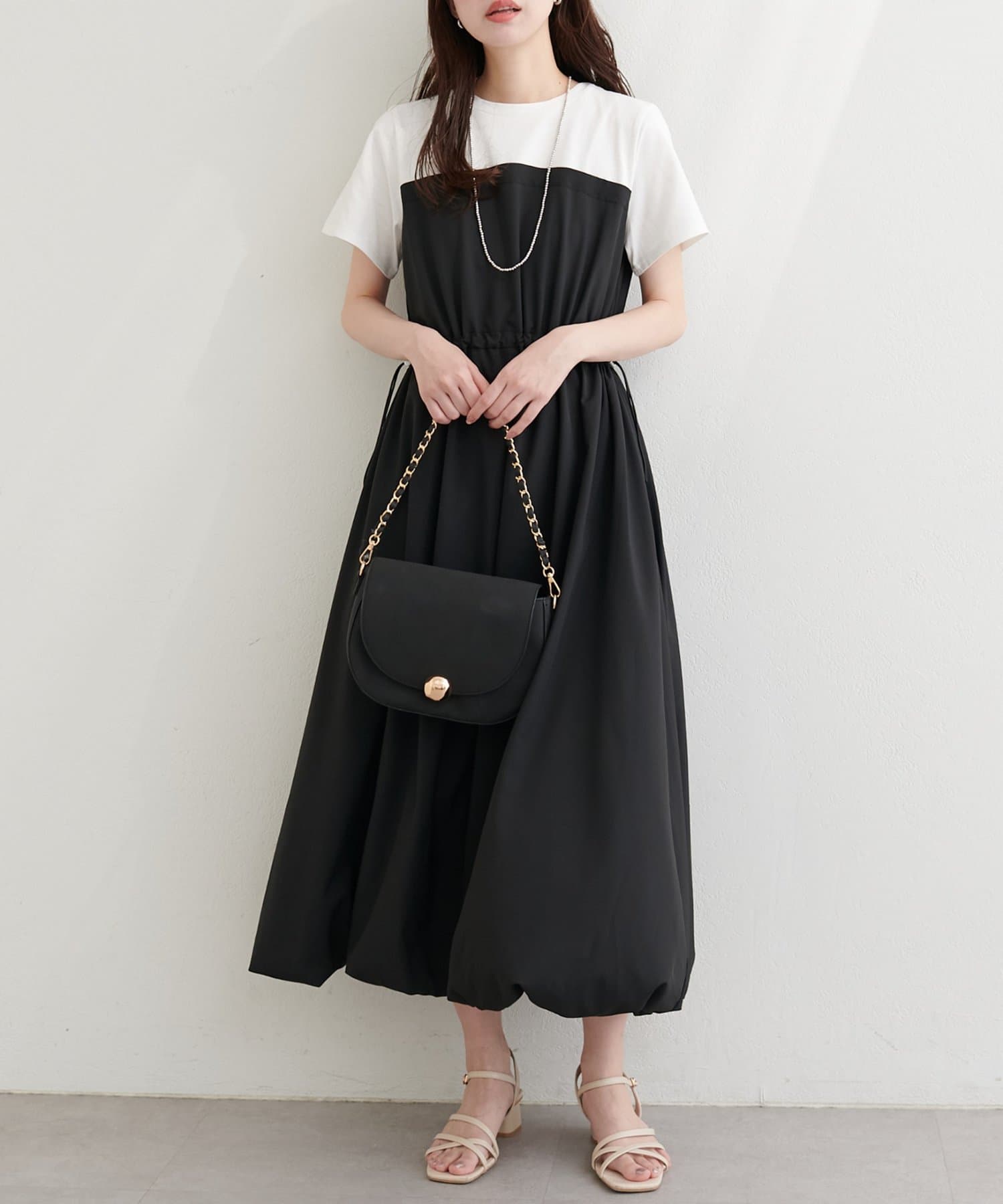 半袖ドッキングバルーンワンピース