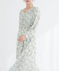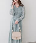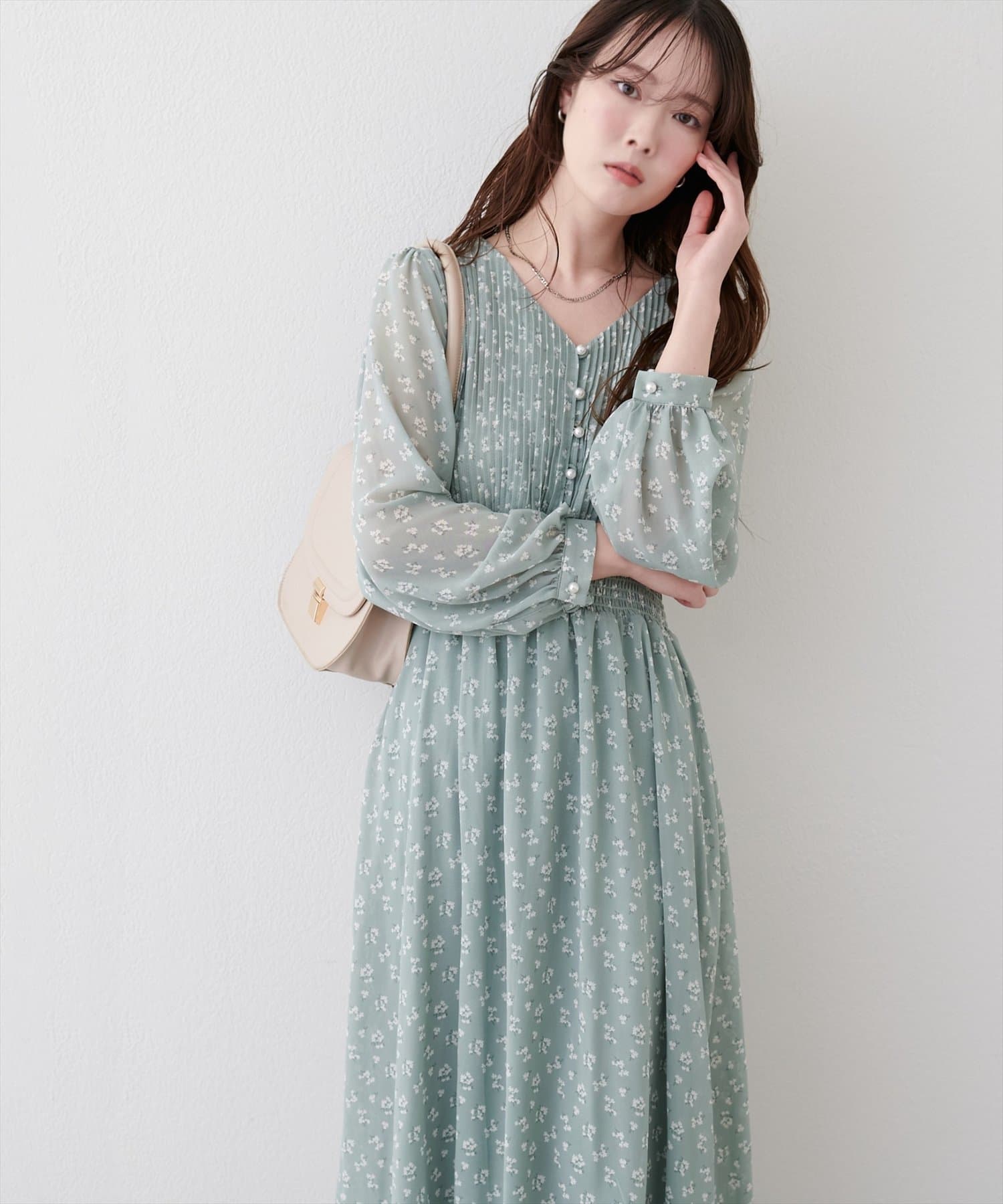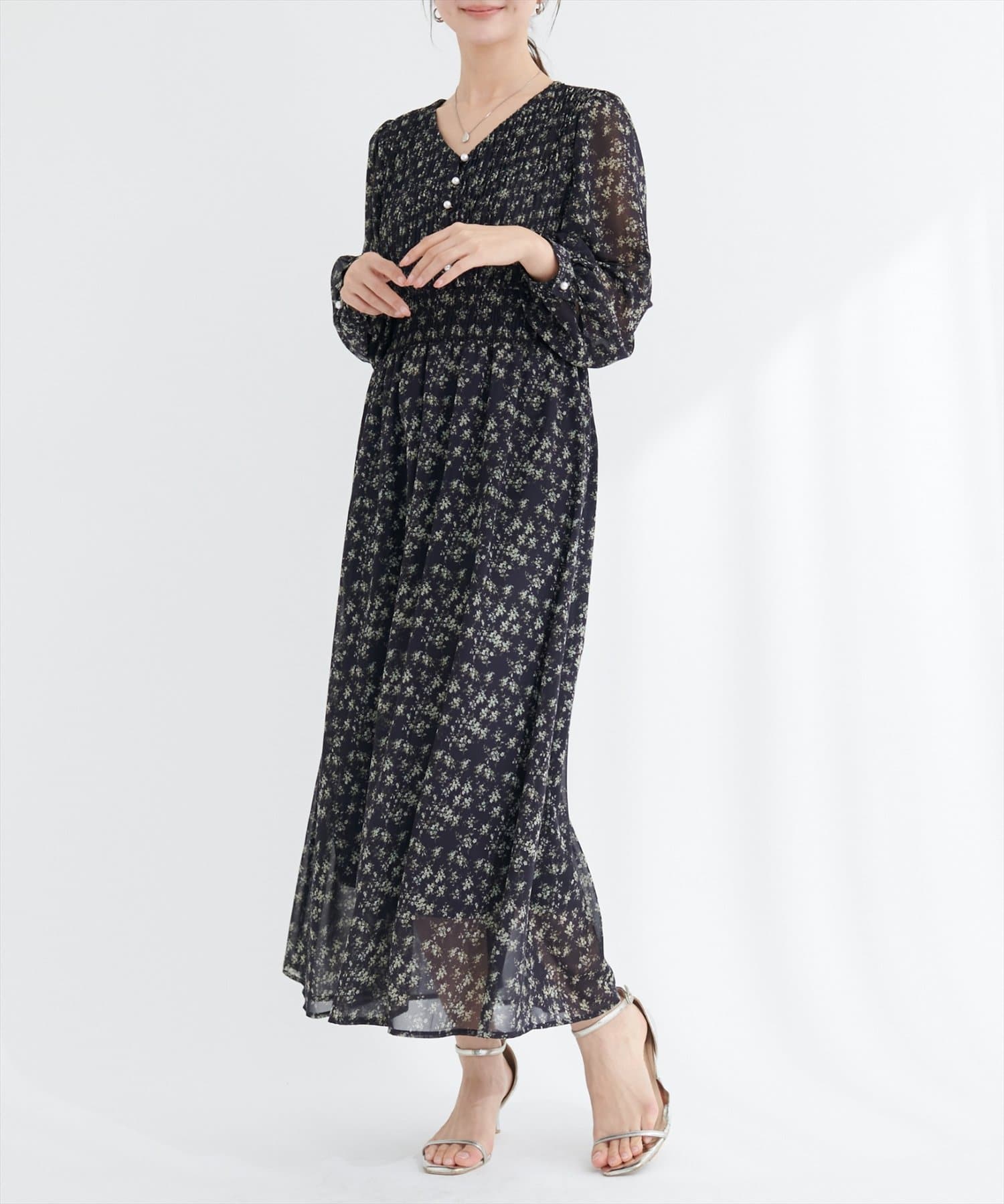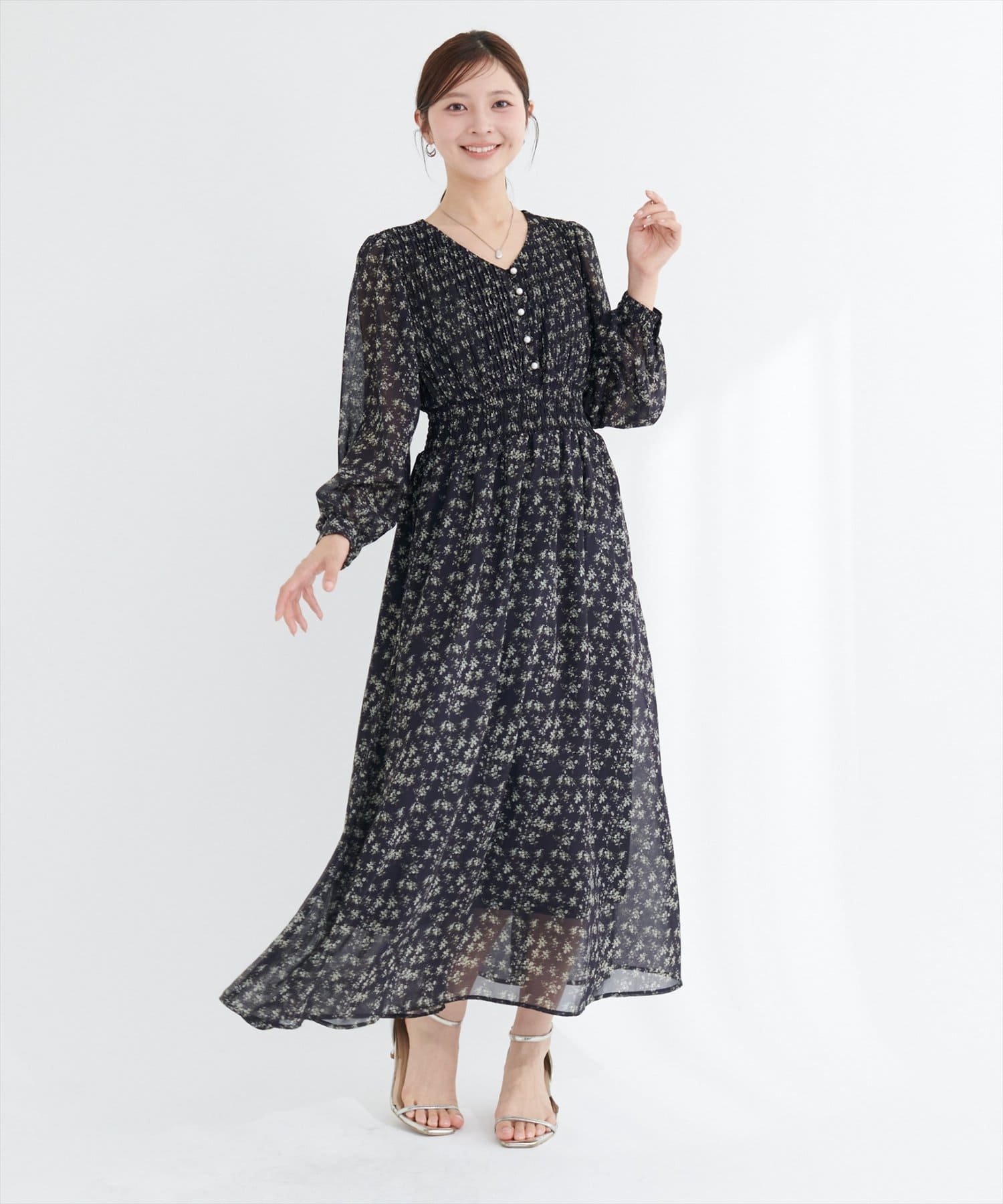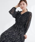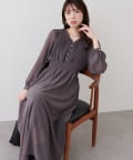 パール釦をあしらった女性らしいデザインのワンピースです。