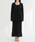 シンプルなデザインながらも、スクエアネックがデコルテを美しく見せ、女性らしさを引き立てます。