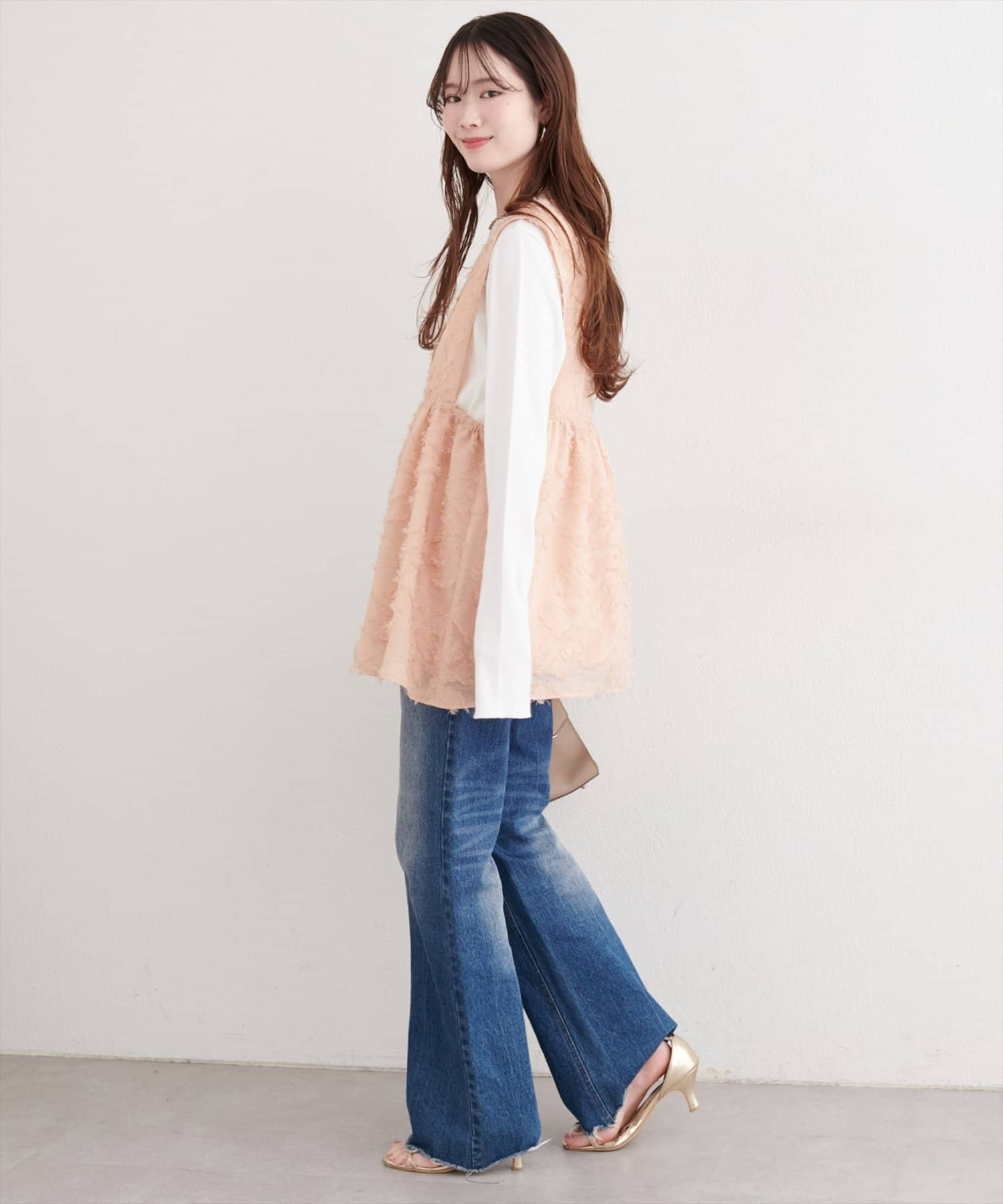 ベストの絶妙な丈感は、スタイルアップ効果も期待できます。