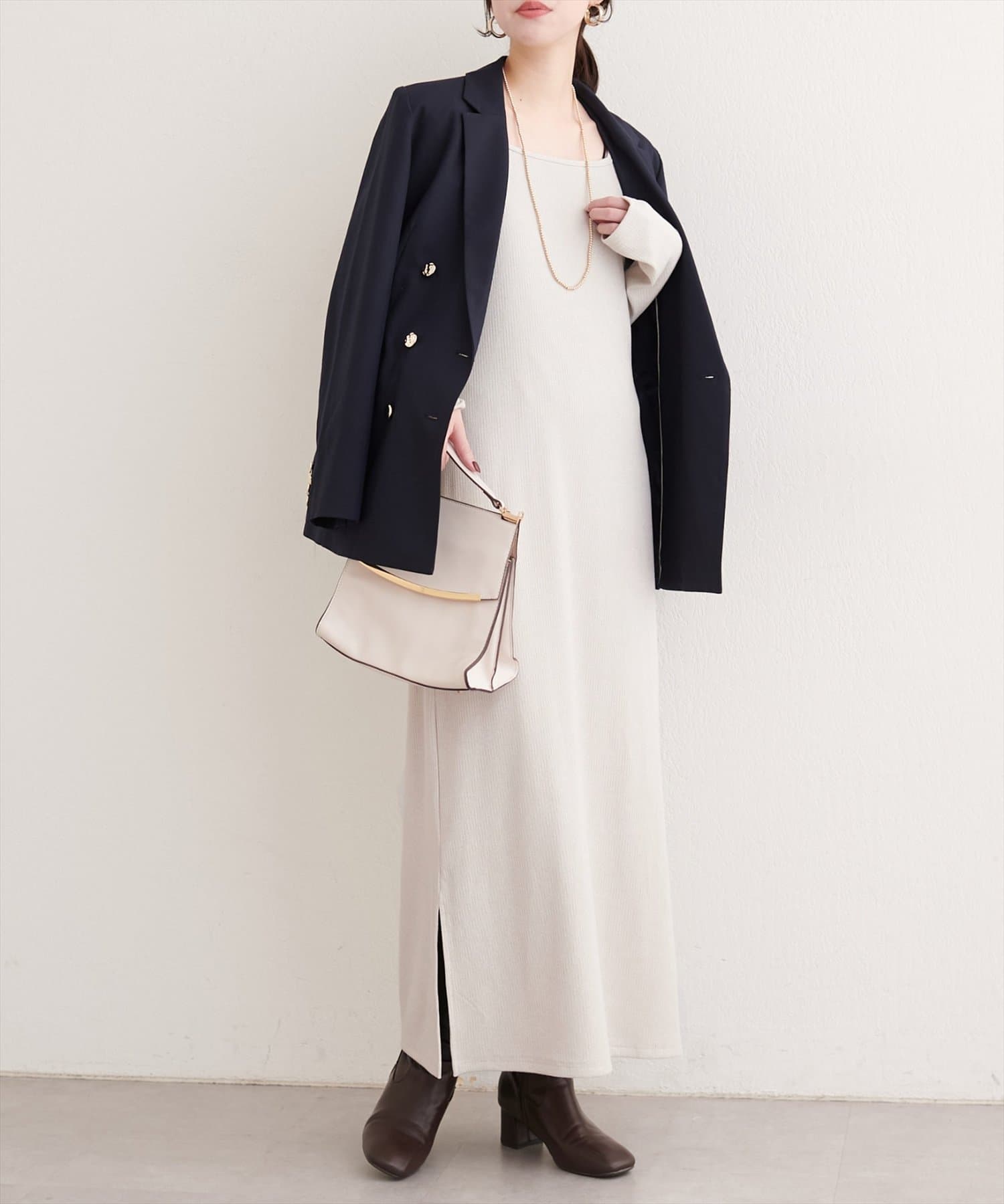 ワンピースは、ジャケットやカーディガンを羽織れば、オフィスシーンにも対応できる万能アイテムです。