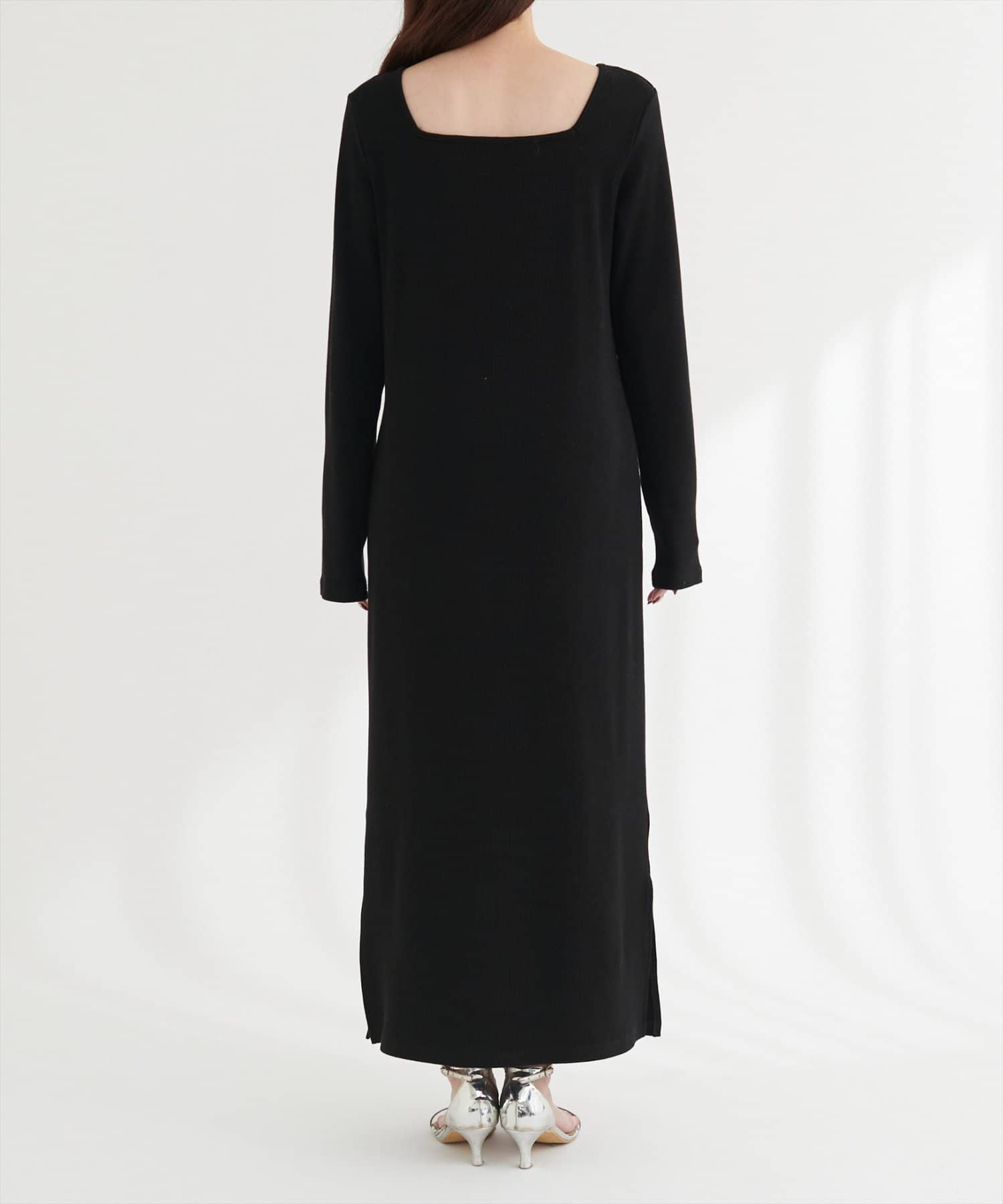 シンプルなデザインながらも、スクエアネックがデコルテを美しく見せ、女性らしさを引き立てます。