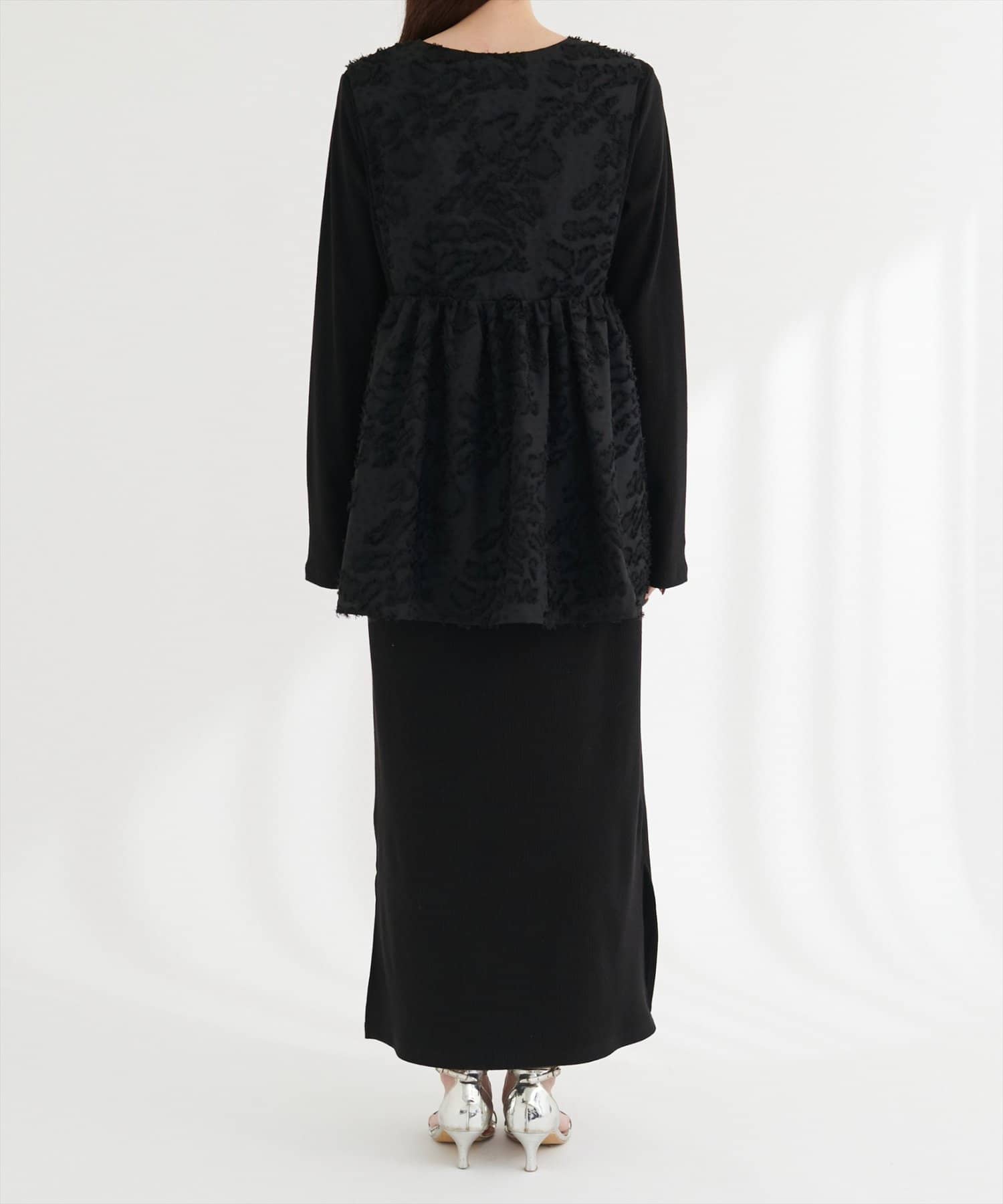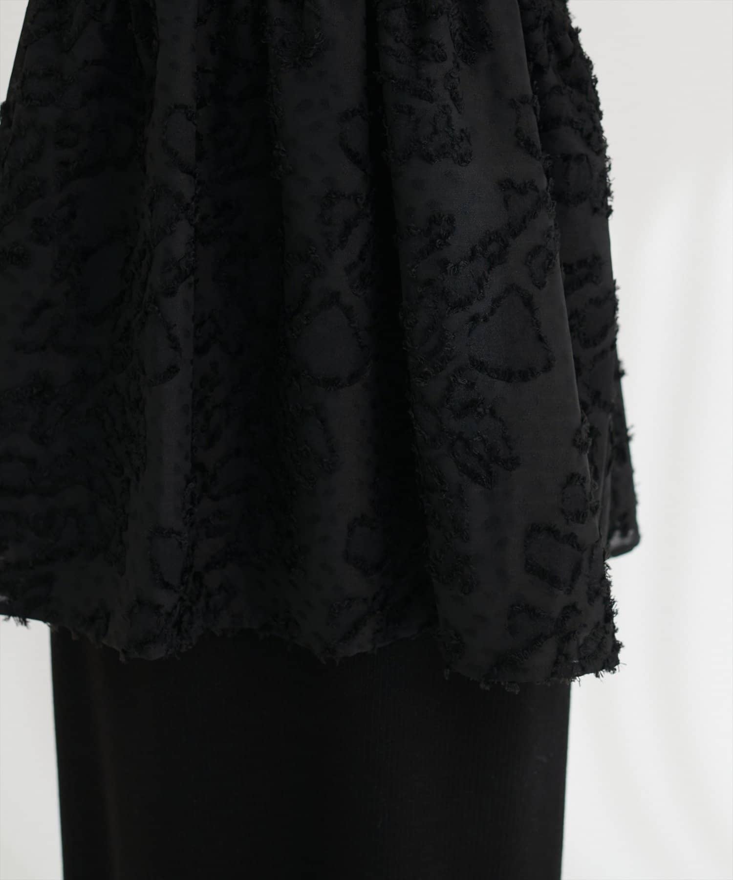 ジャガード素材は上品で落ち着いた印象を与え、甘すぎない大人の可愛らしさを演出。