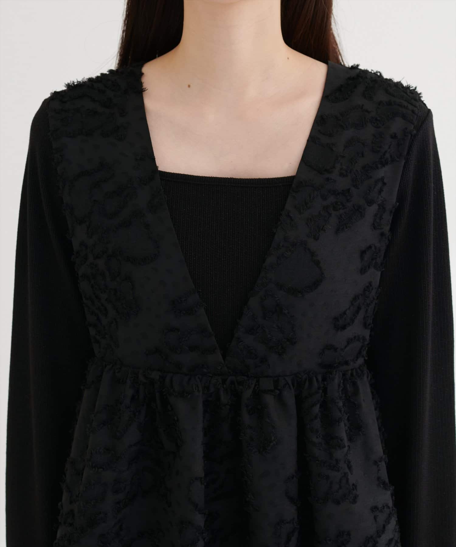 ジャガード織りのベストは、表情豊かなお花柄が特徴。