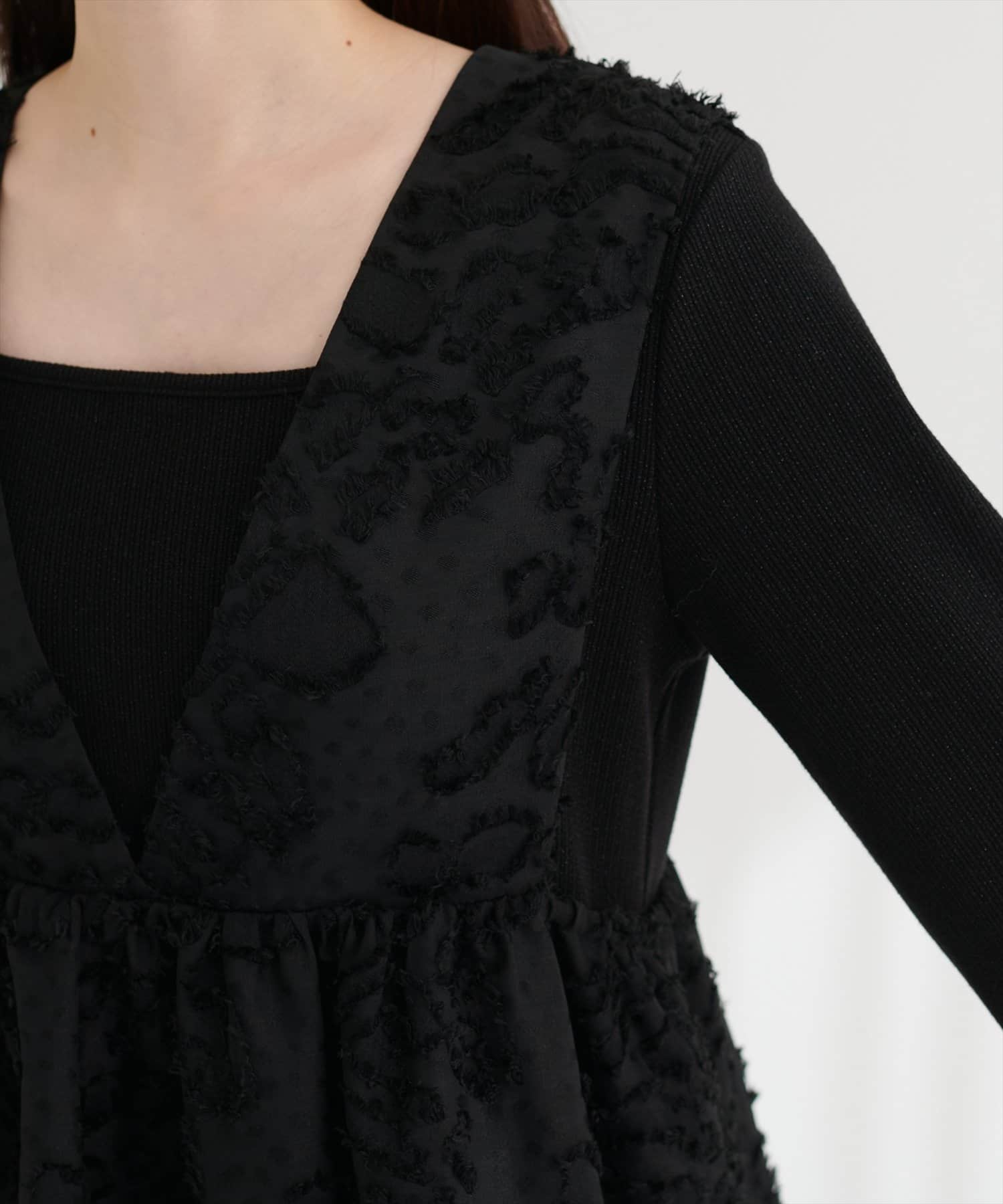 お花ジャガードベスト×ラメワンピースセット