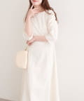 女性らしい印象を与える美しいAライン寄りのシルエットが印象のワンピース。