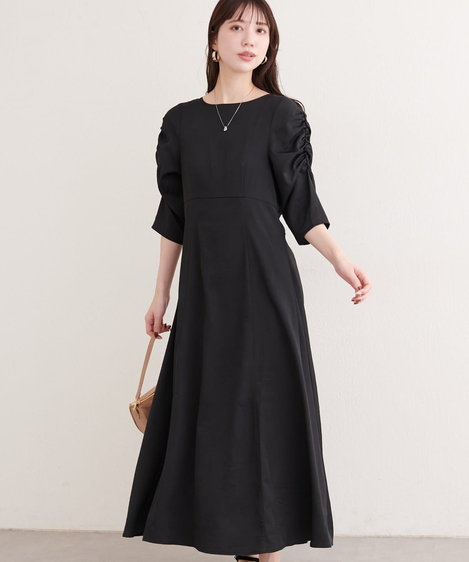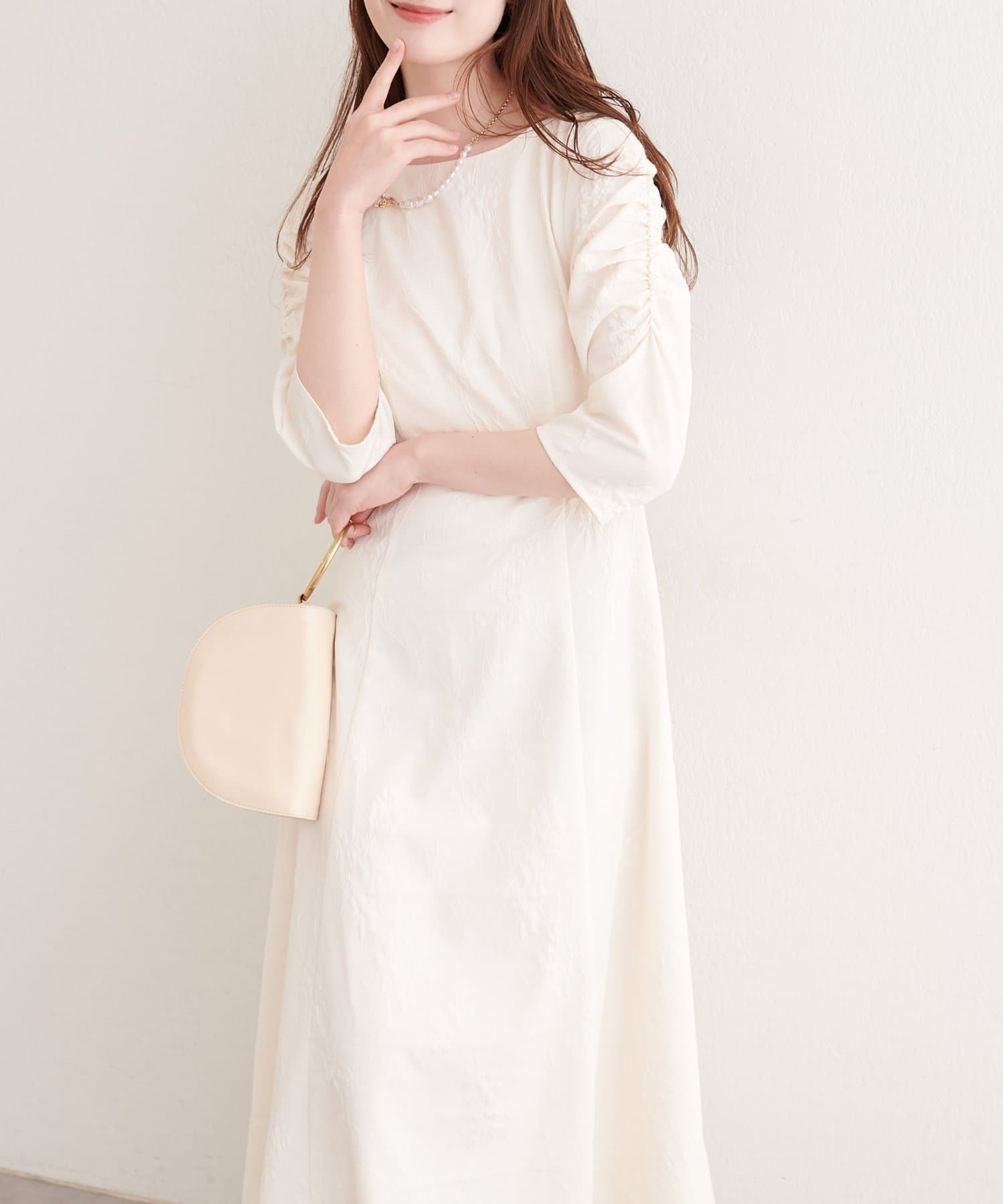 女性らしい印象を与える美しいAライン寄りのシルエットが印象のワンピース。