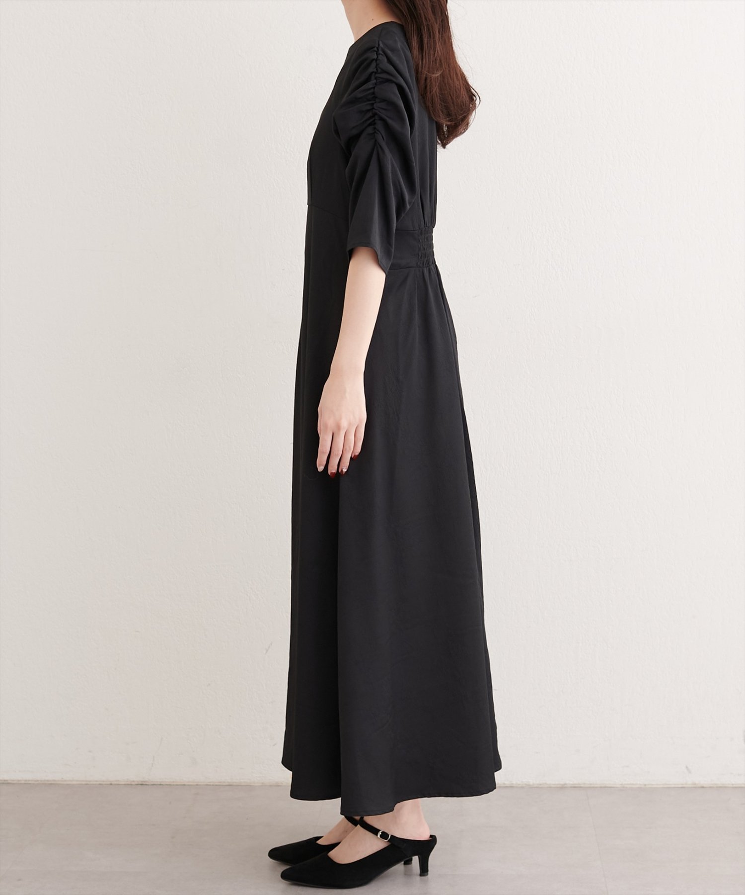 目を引くジゴスリーブは、肩から袖にかけてふんわりとしたボリュームを持たせ、ロマンティックな雰囲気をプラス。