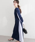 裾のアシメ切り替えをあえて片側に寄せることで、派手になりすぎず、洗練されたおしゃれな印象に仕上げました。