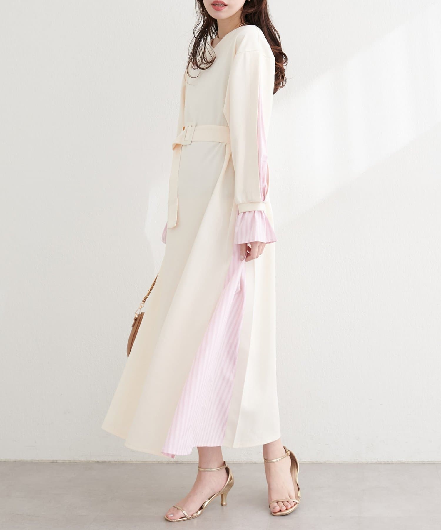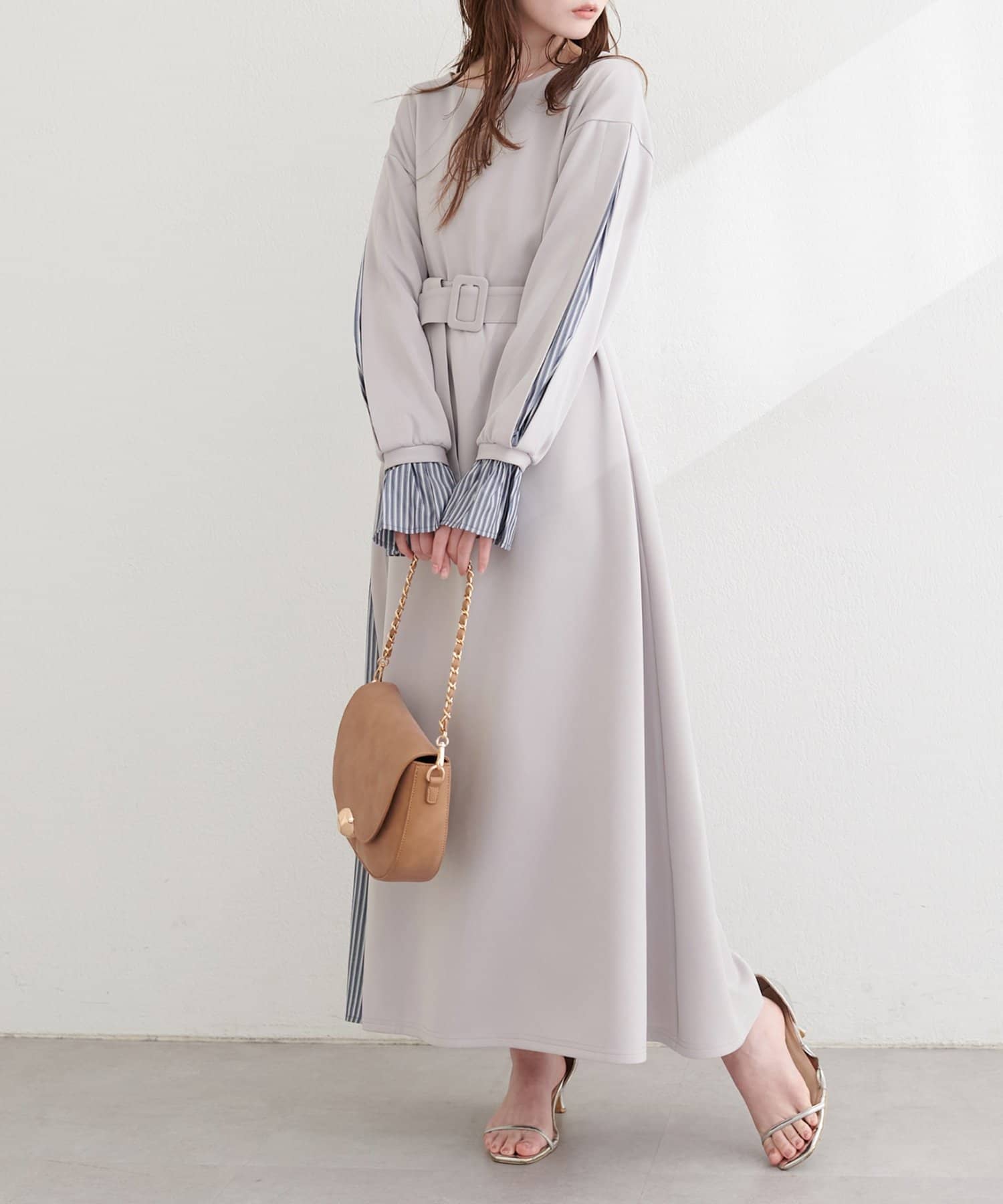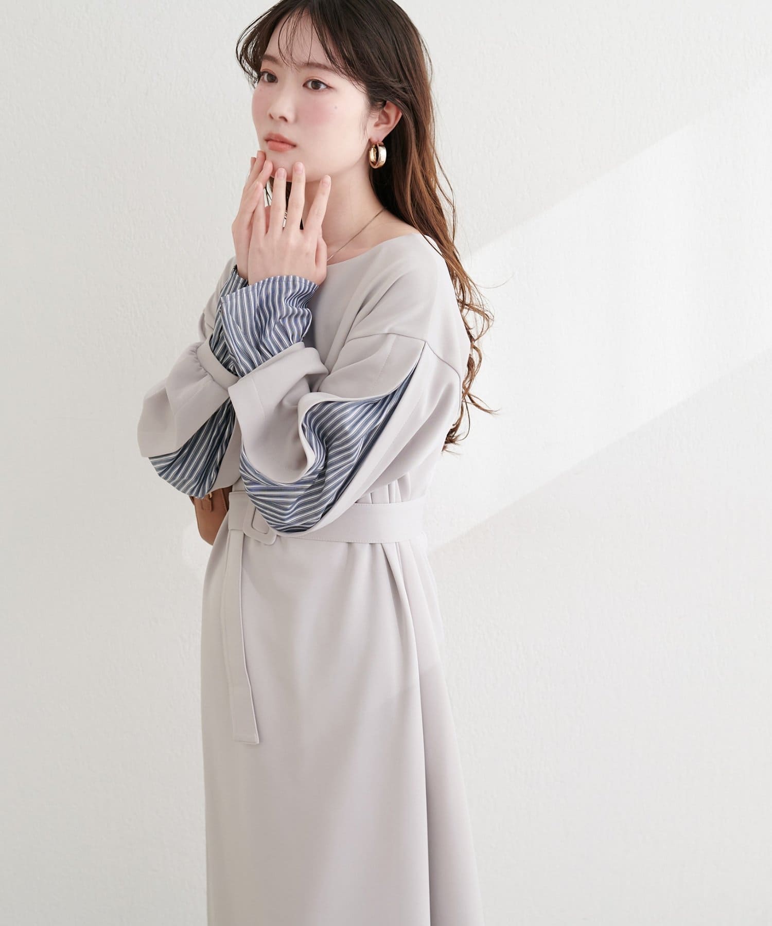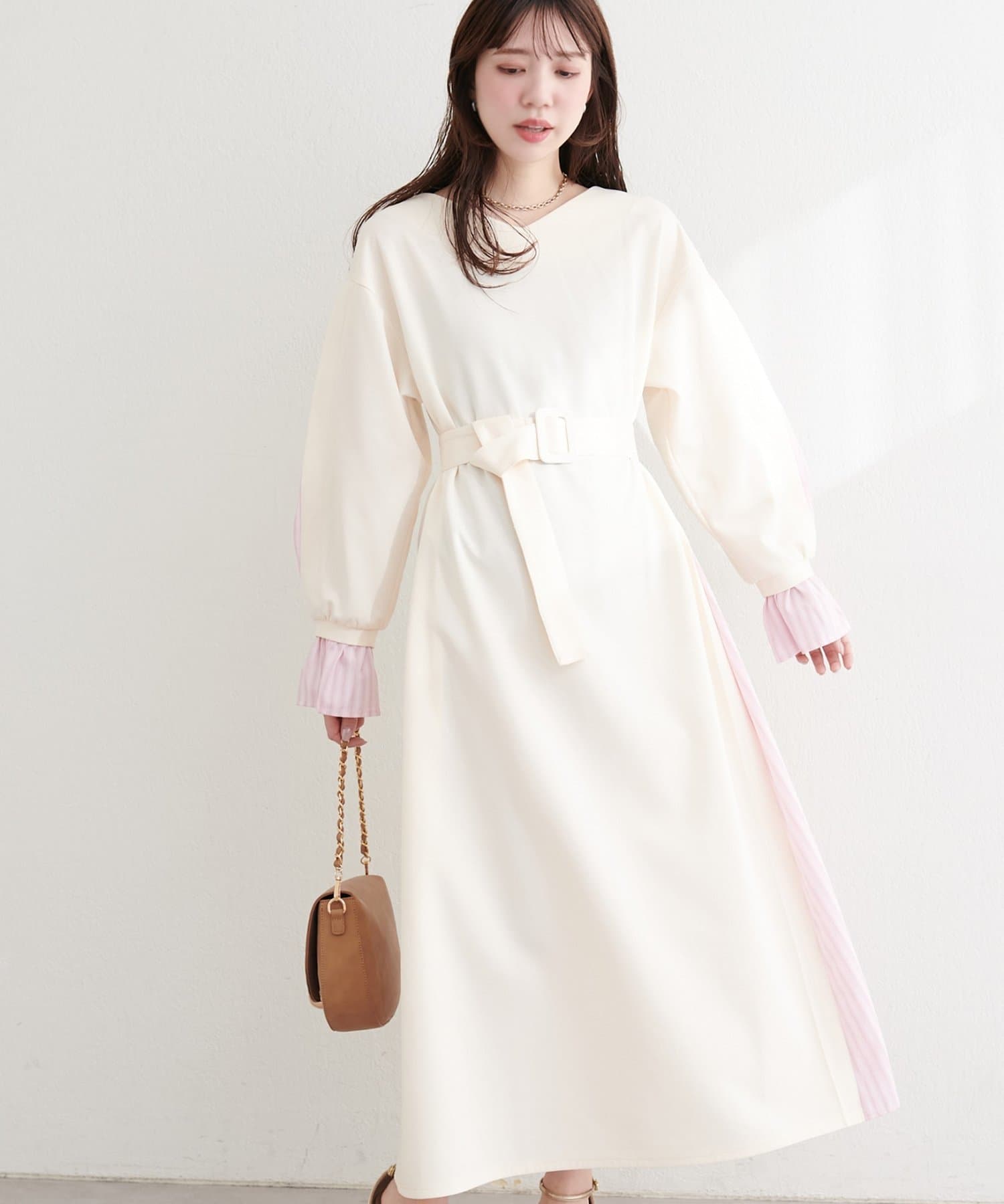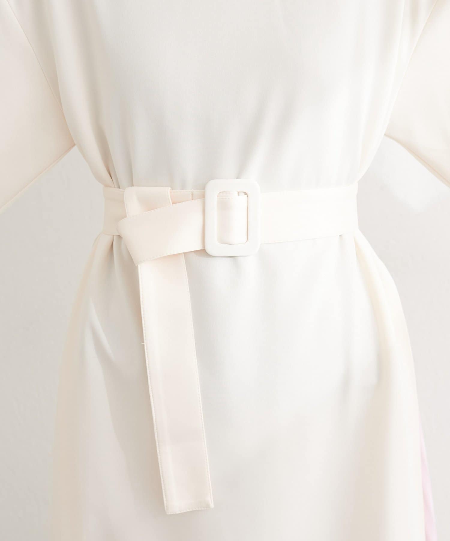 付属のベルトでウエストマークすれば、メリハリが効き、より女性らしいシルエットに。
