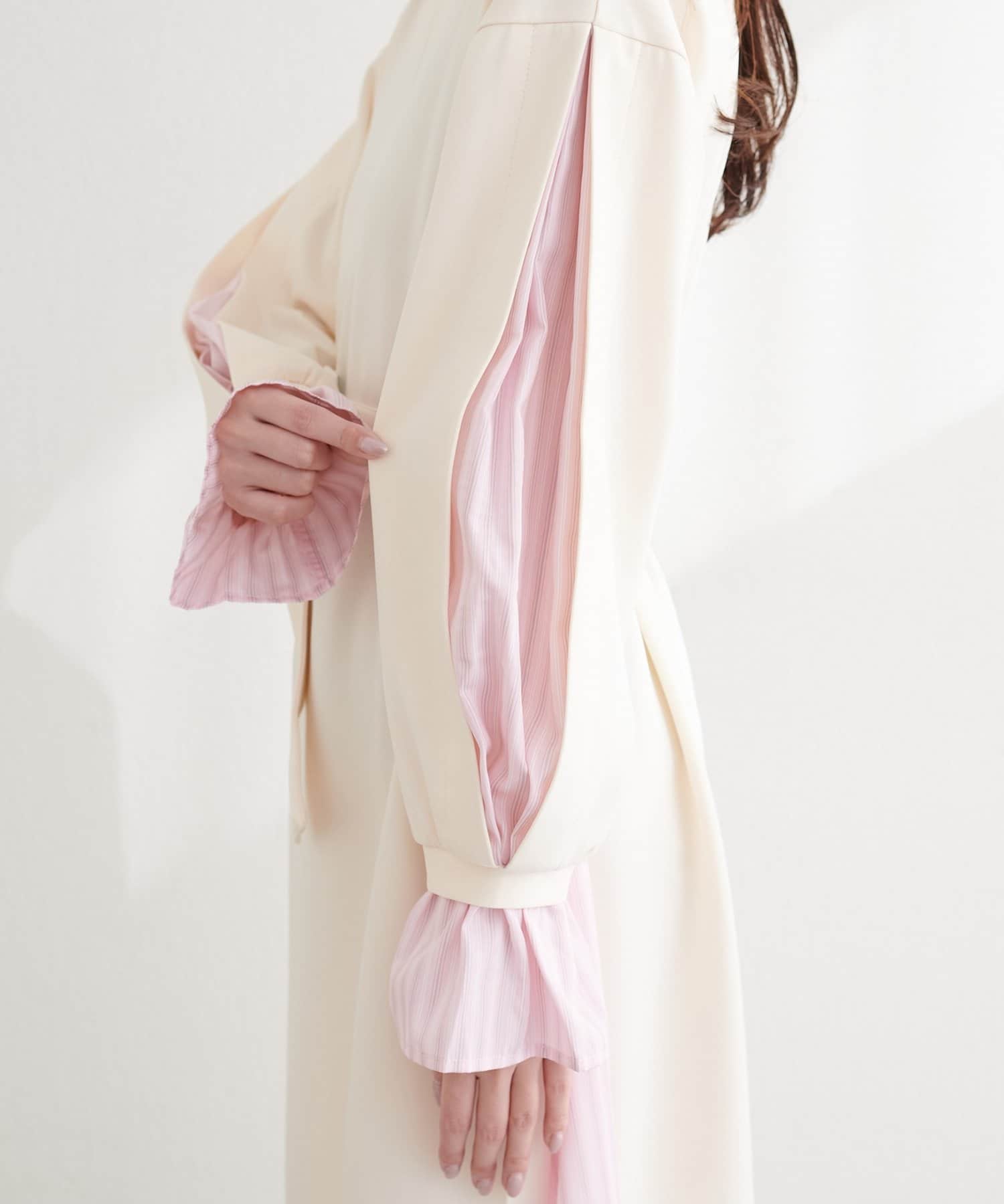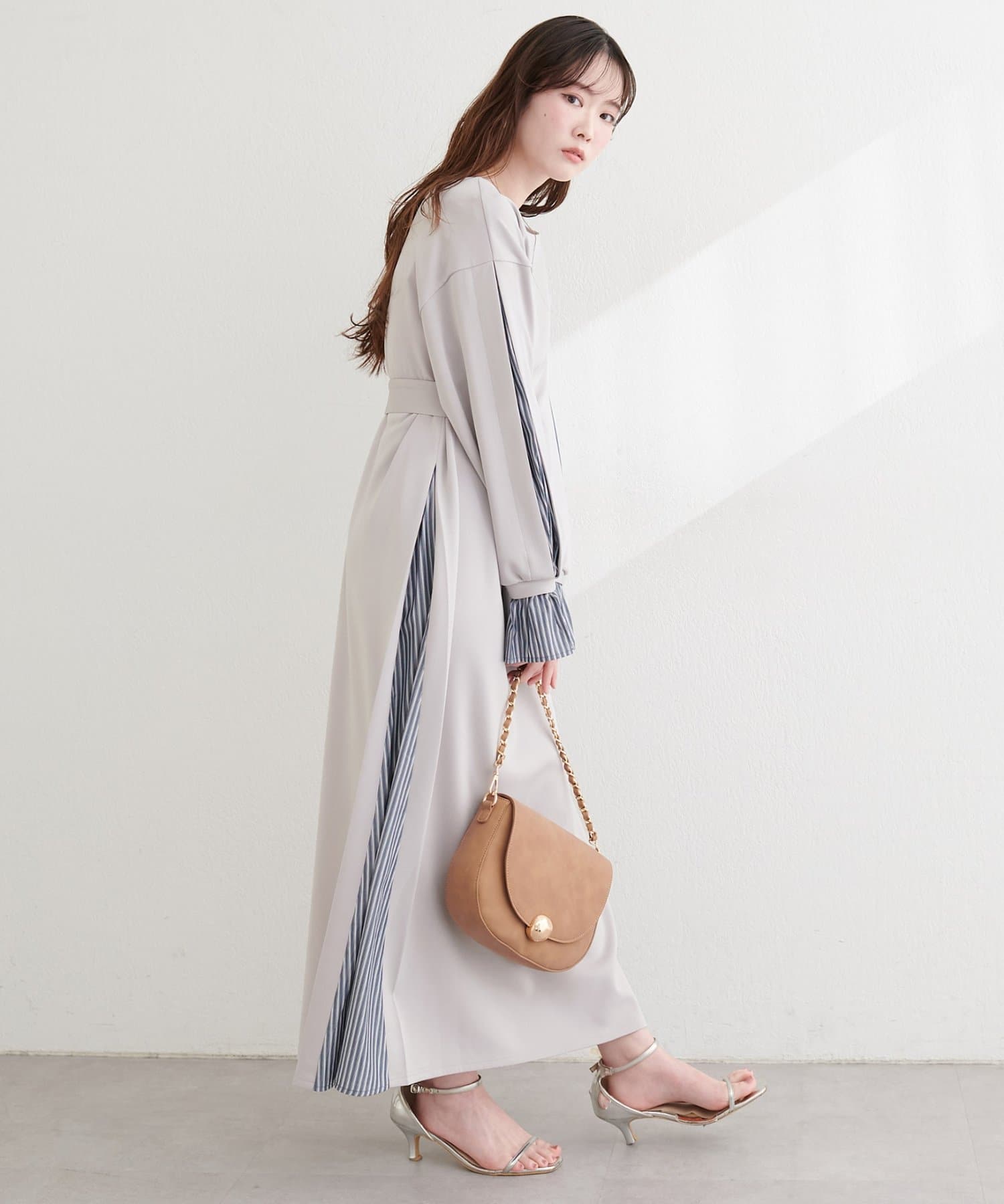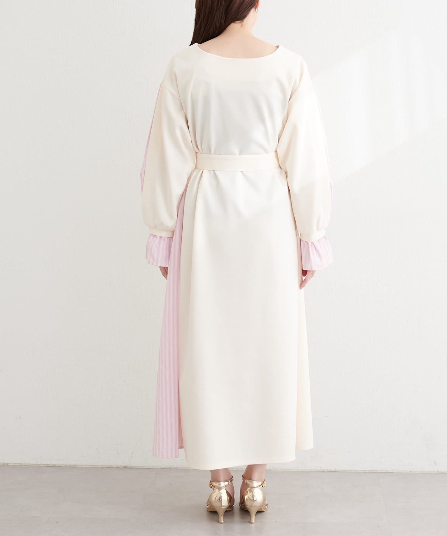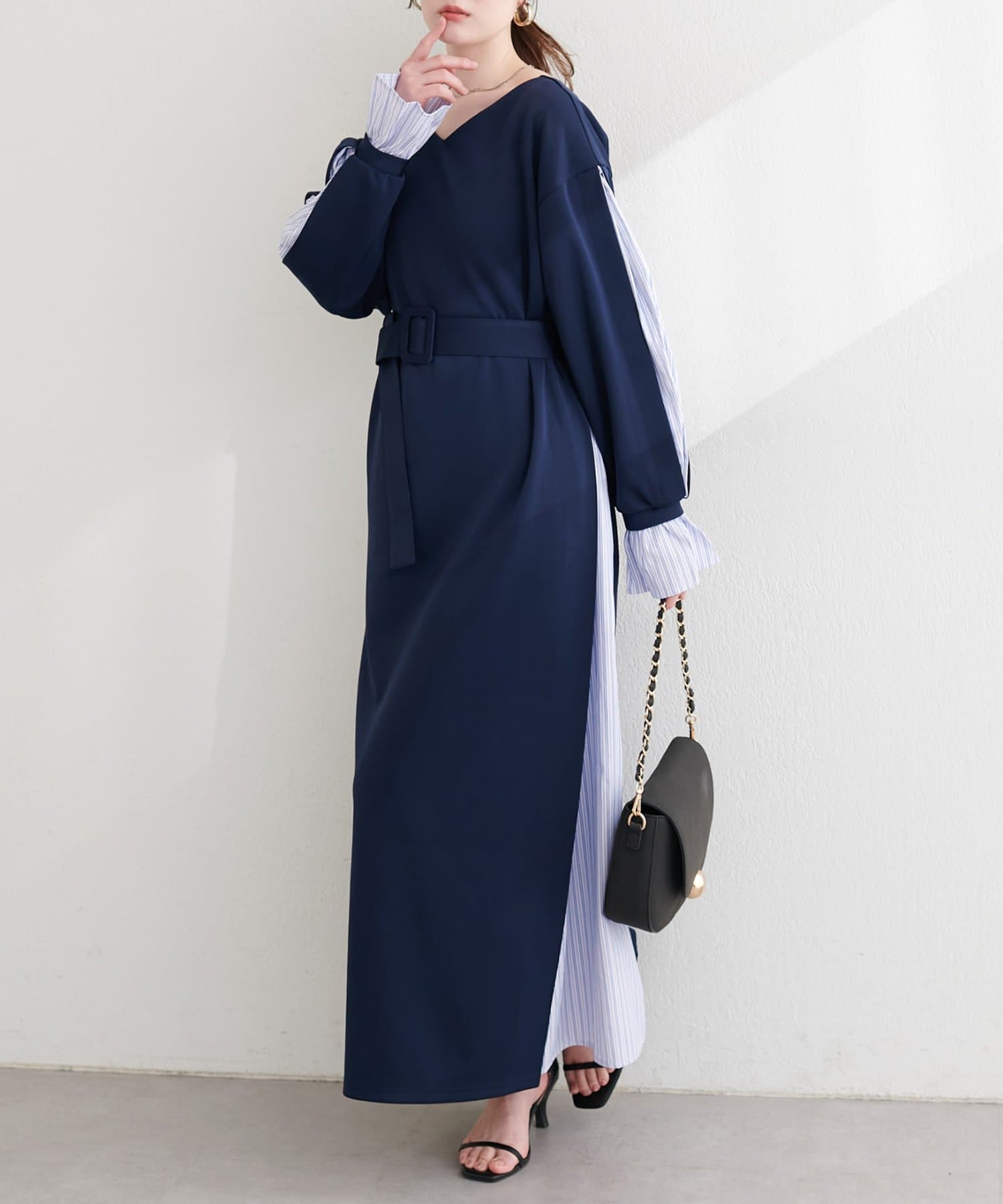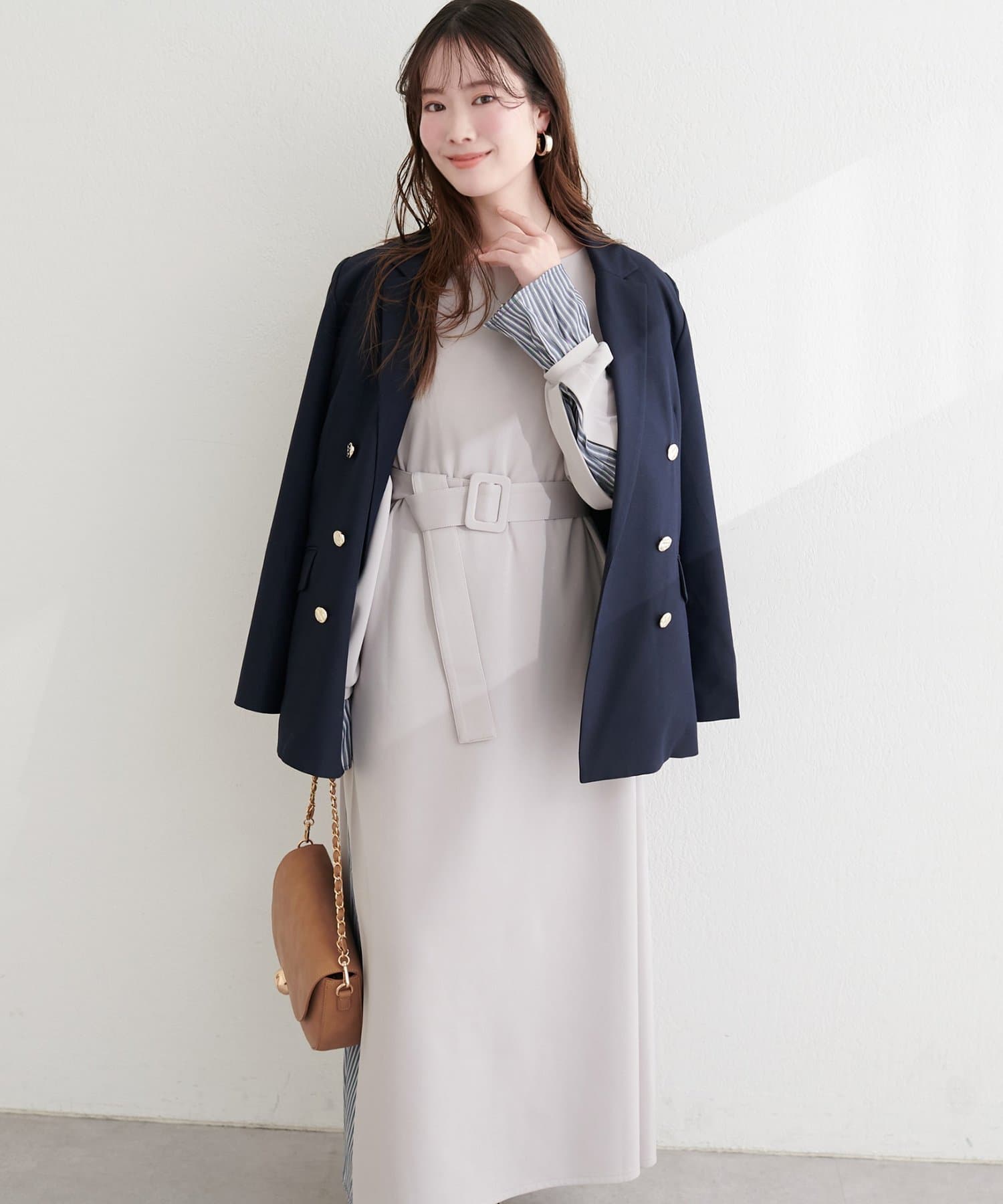 付属のベルトでウエストマークすれば、メリハリが効き、より女性らしいシルエットに。