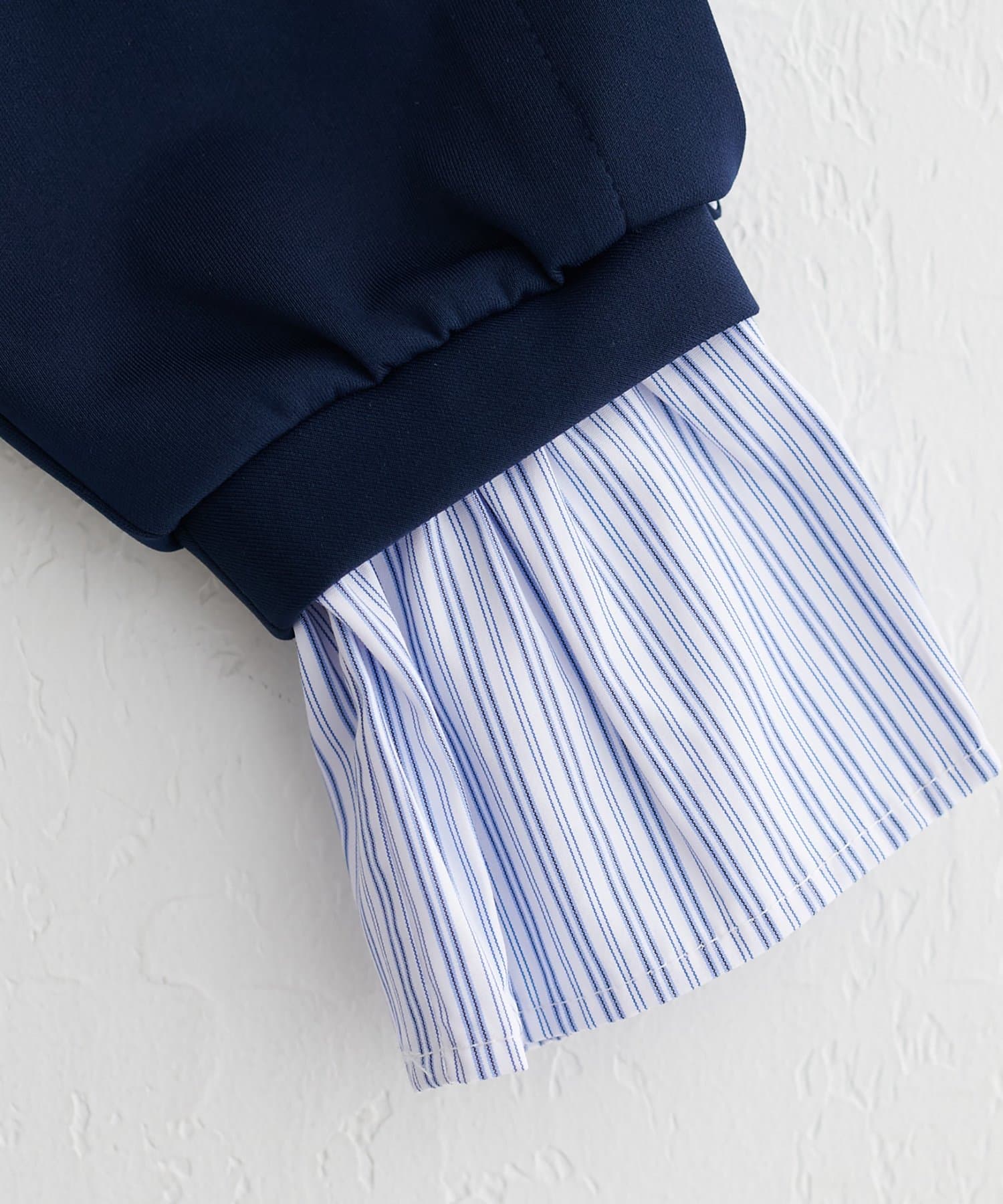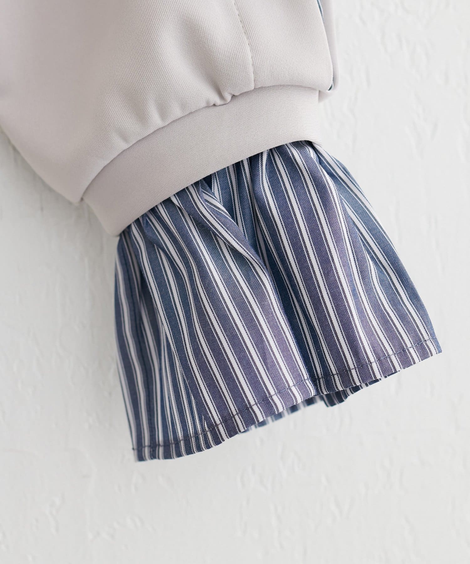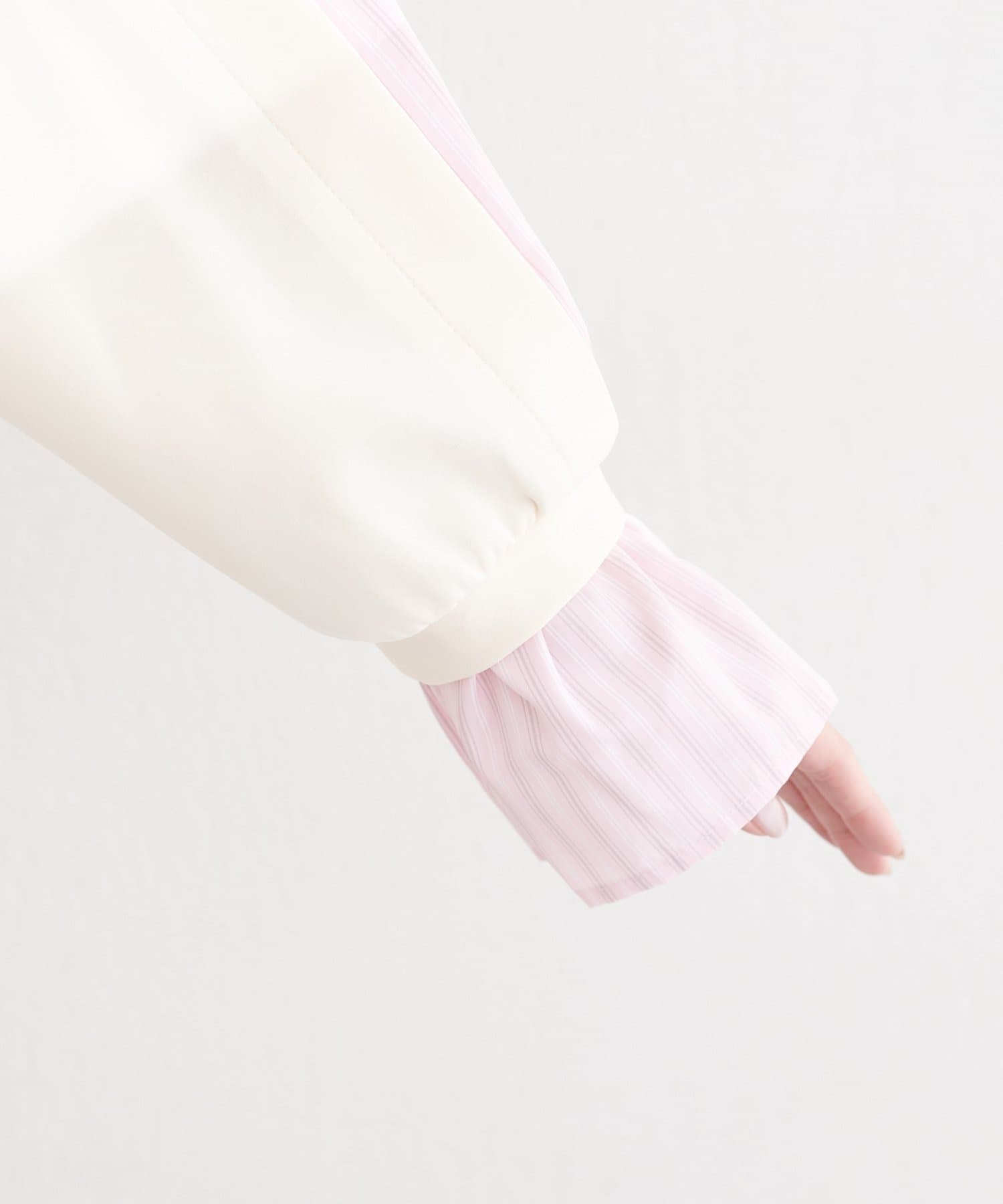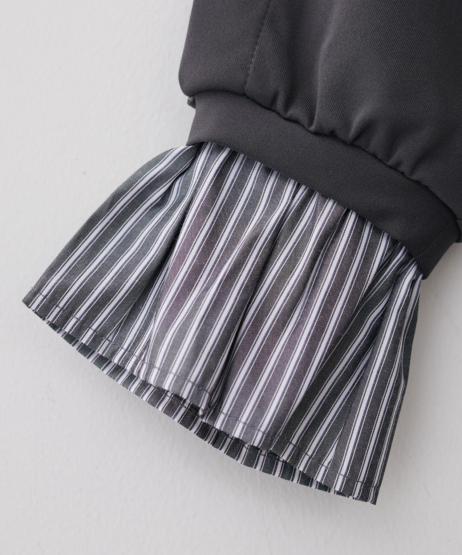 ボリュームスリーブとシャツ地のレイヤード風デザインでこの一枚だけでトレンド感のあるコーデに◎