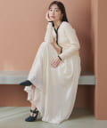 スカート部分は、上品で抑えめの光沢感と、しなやかなドレープ性が魅力です。