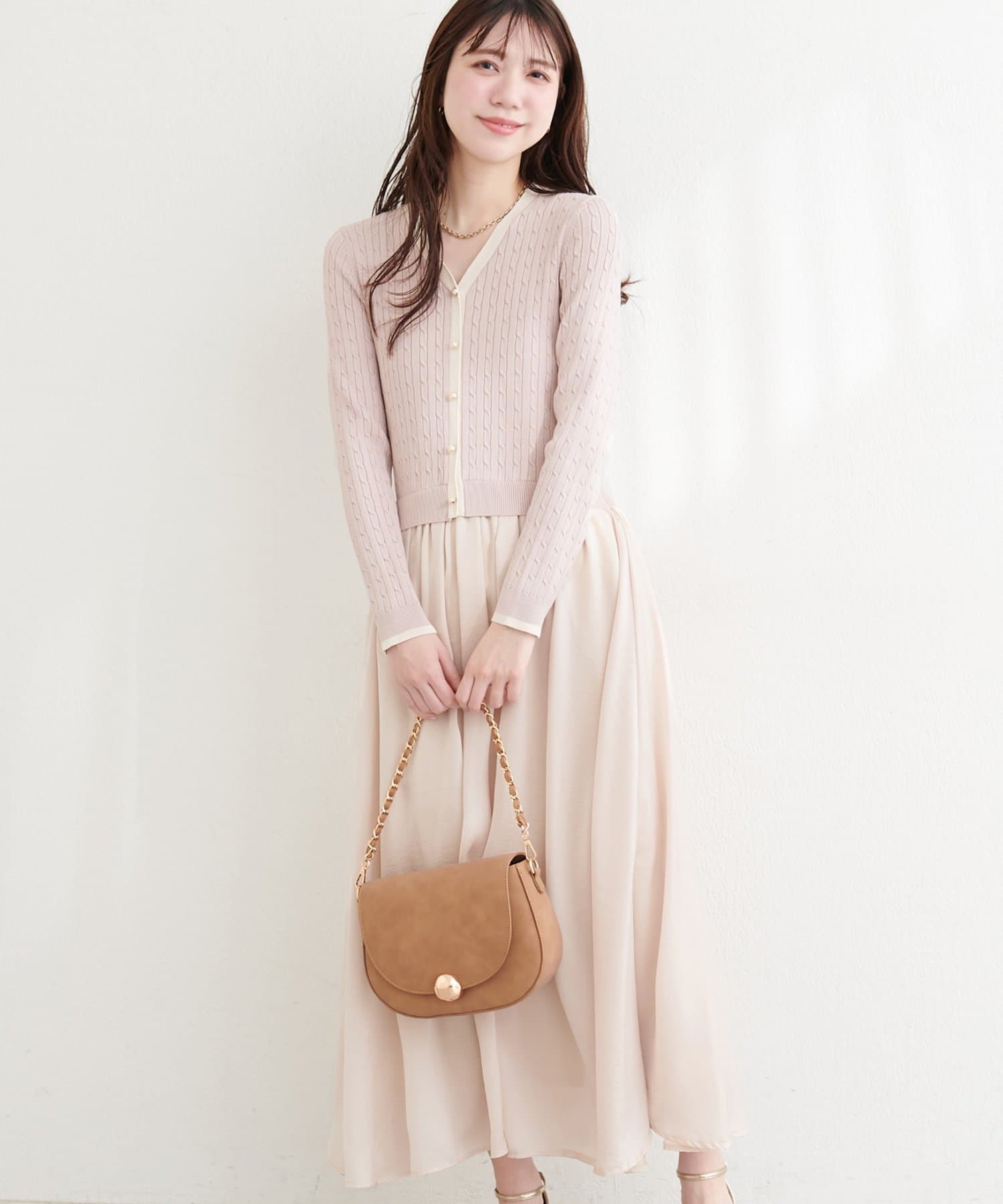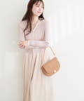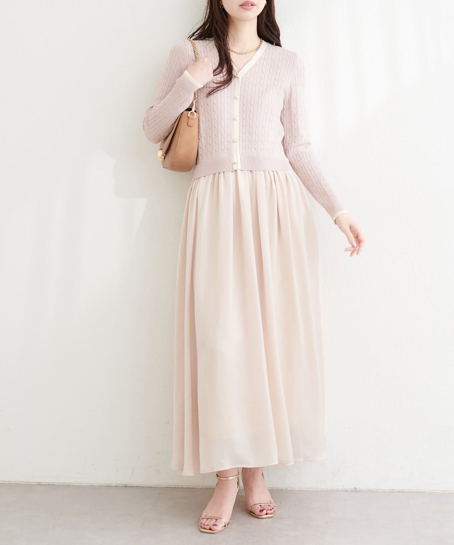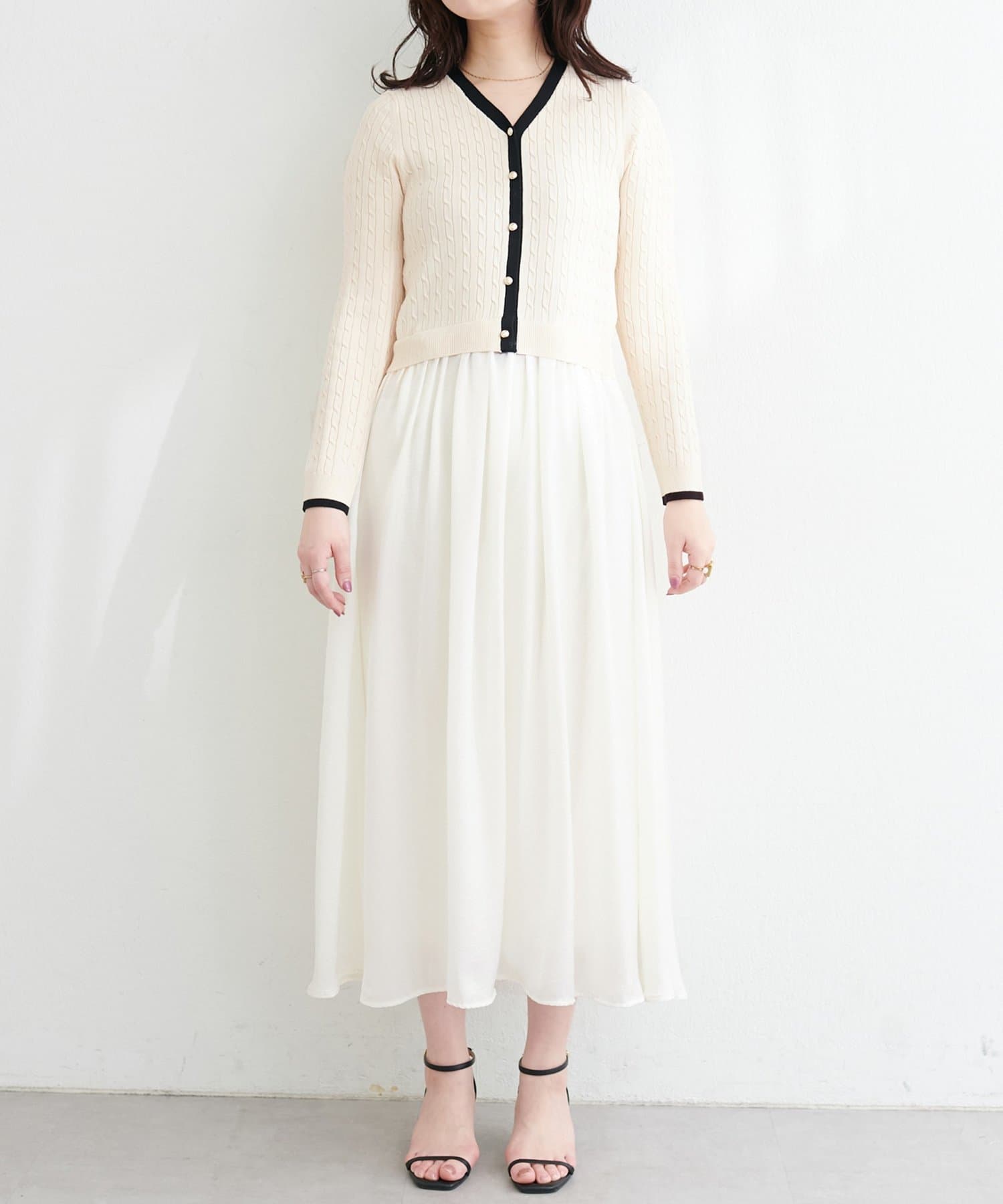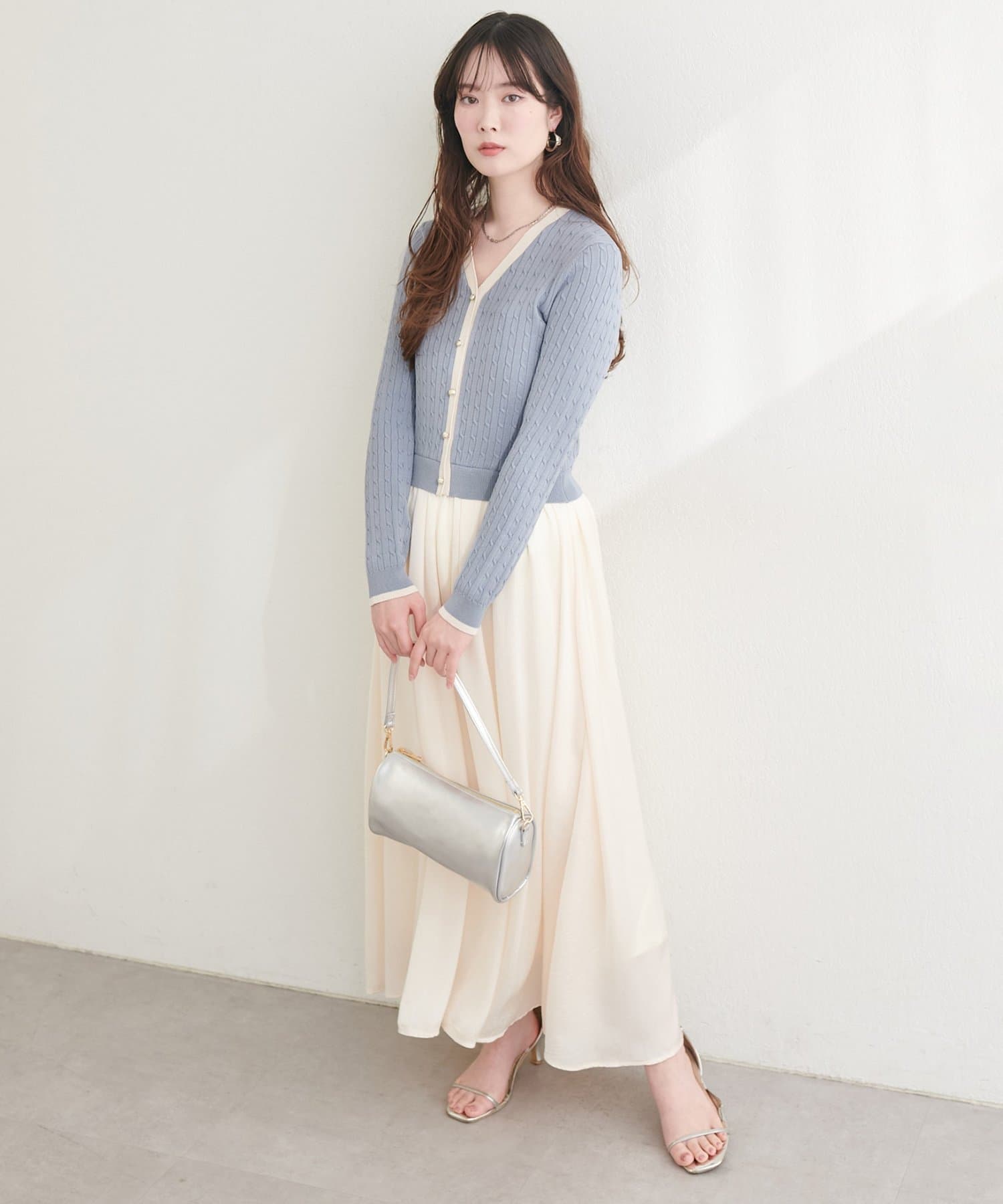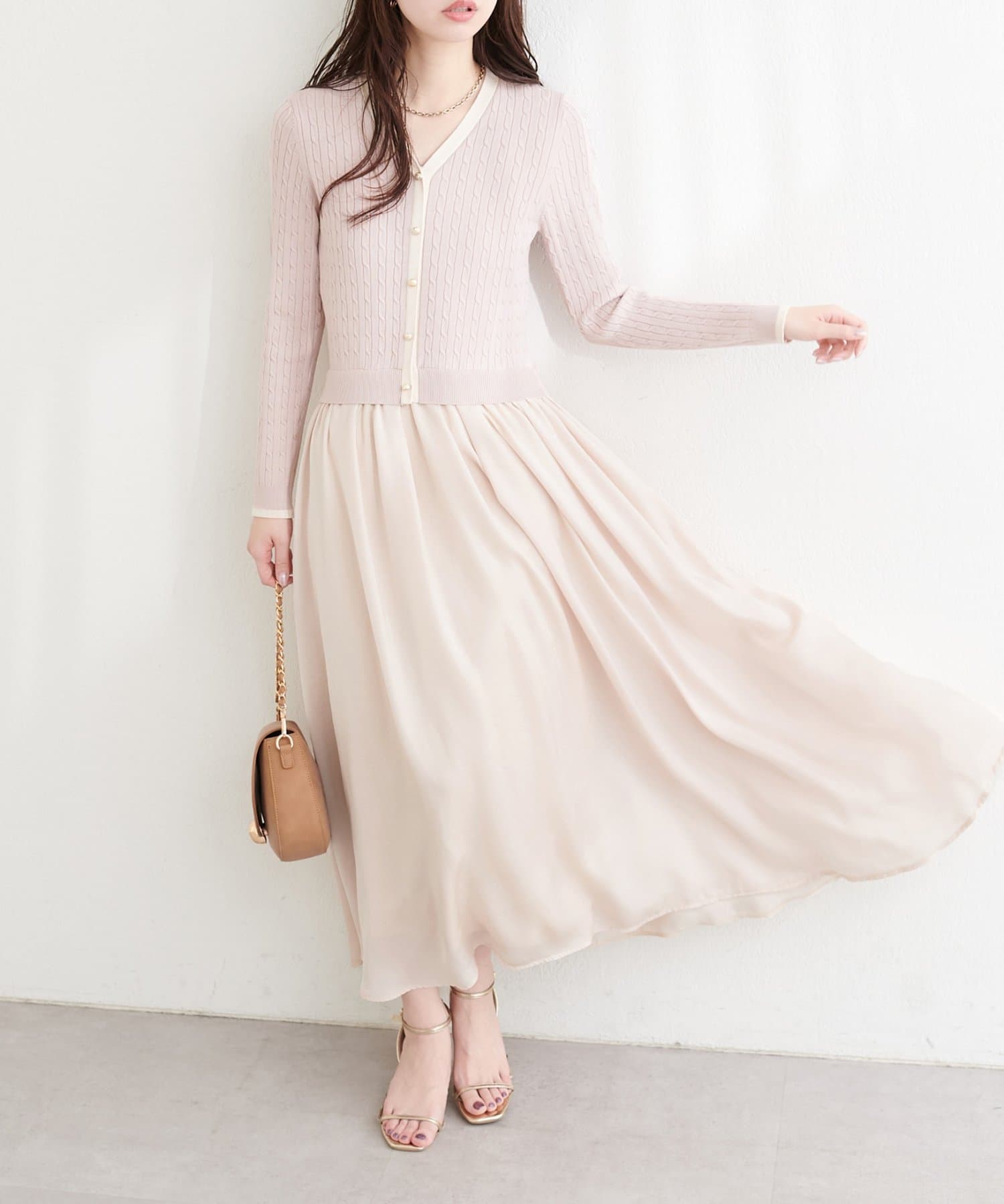 軽やかなサテンと優しいニットの組み合わせがポイントのワンピース。
