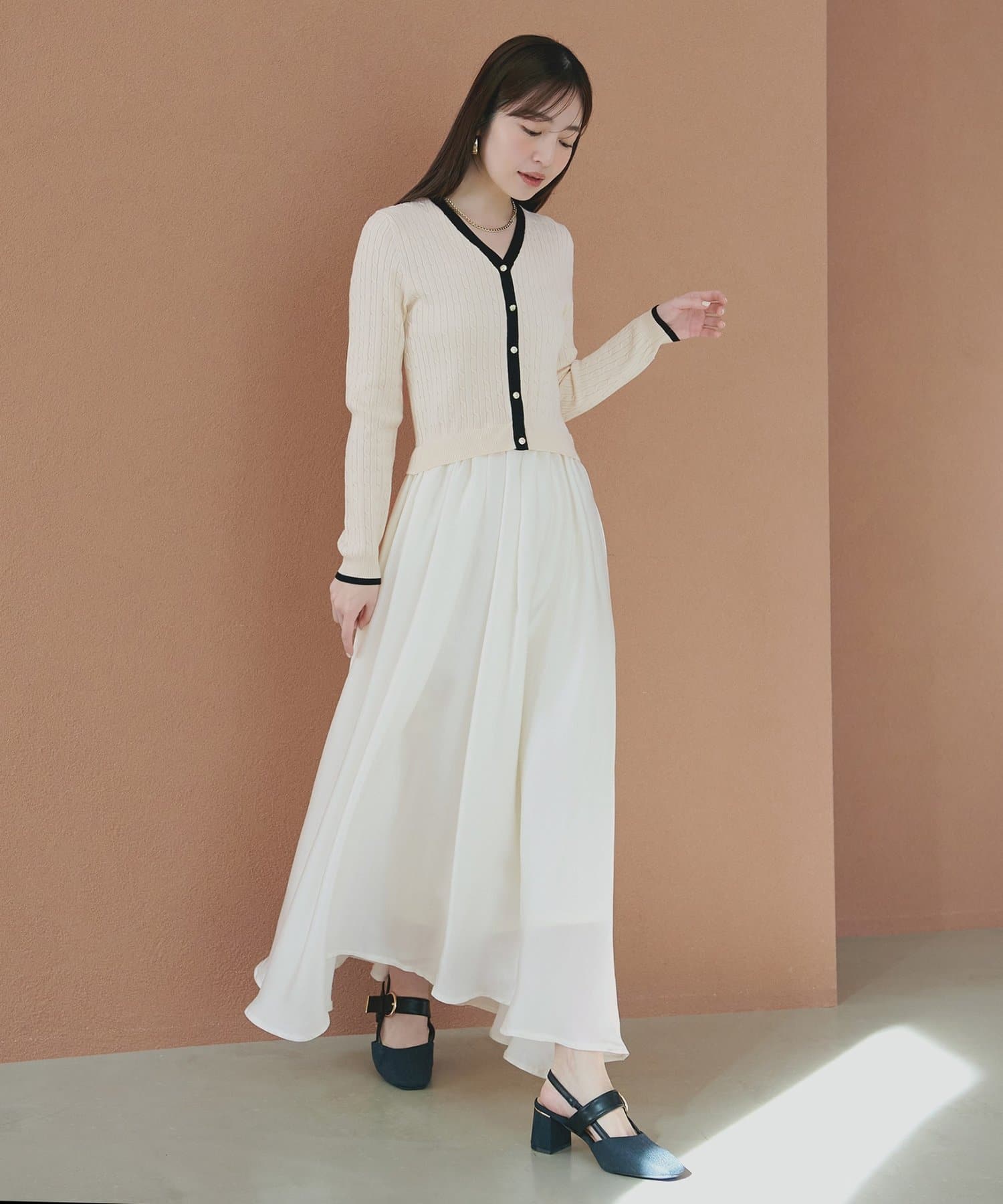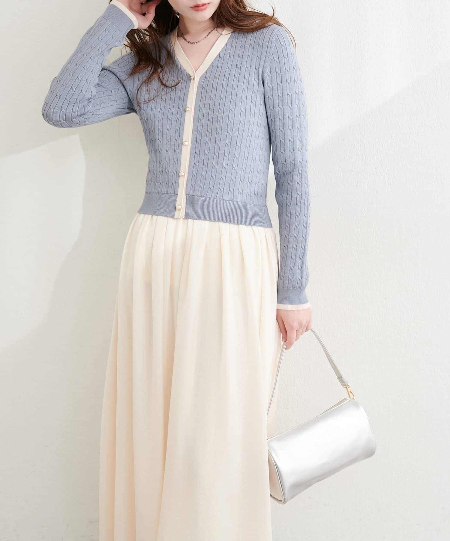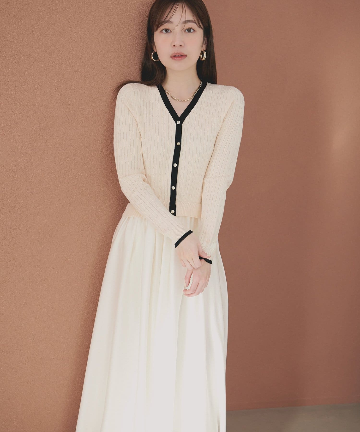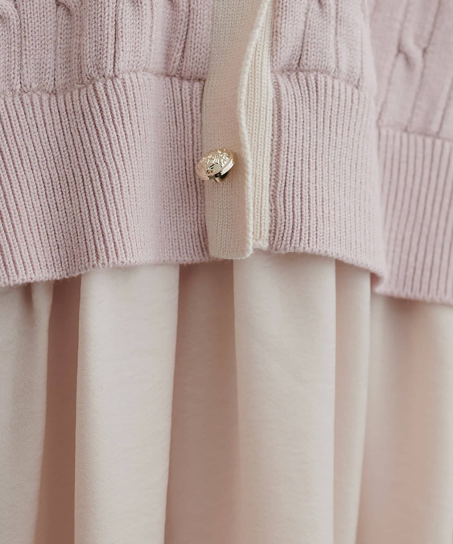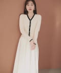 軽やかなサテンと優しいニットの組み合わせがポイントのワンピース。