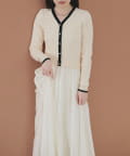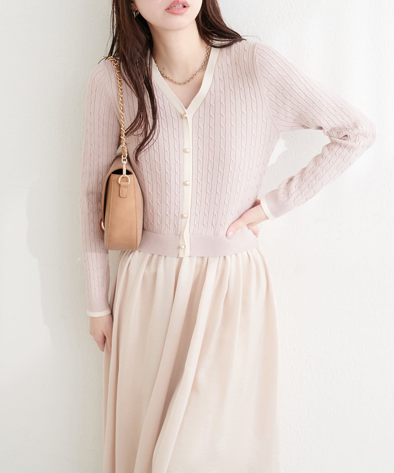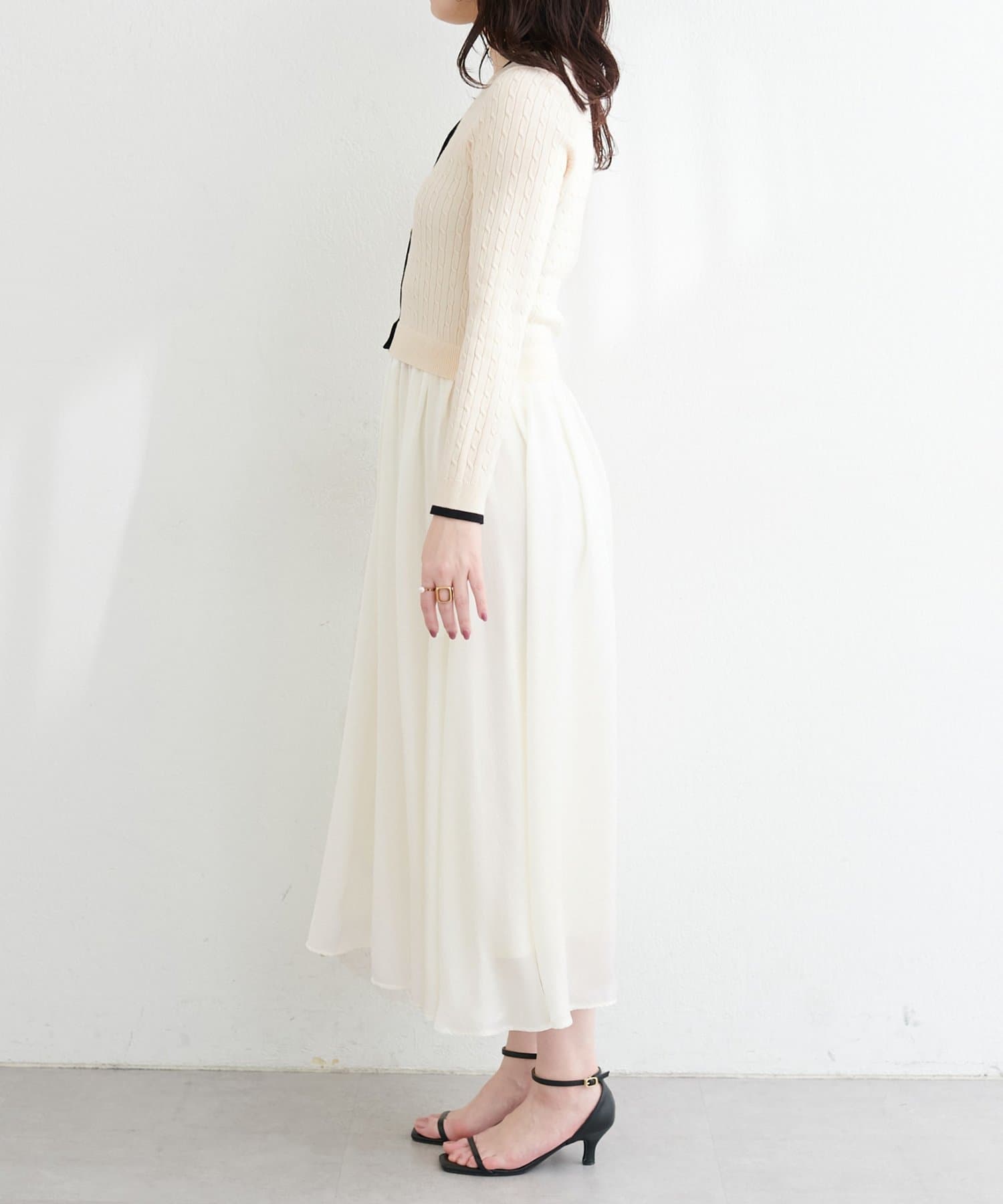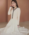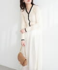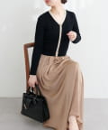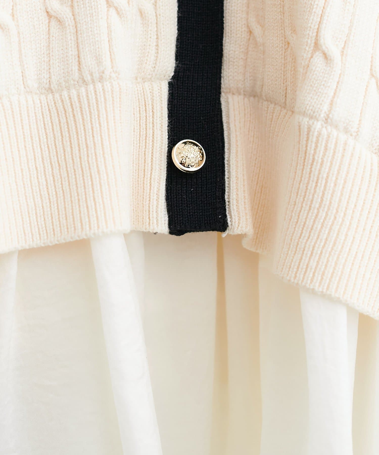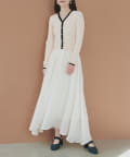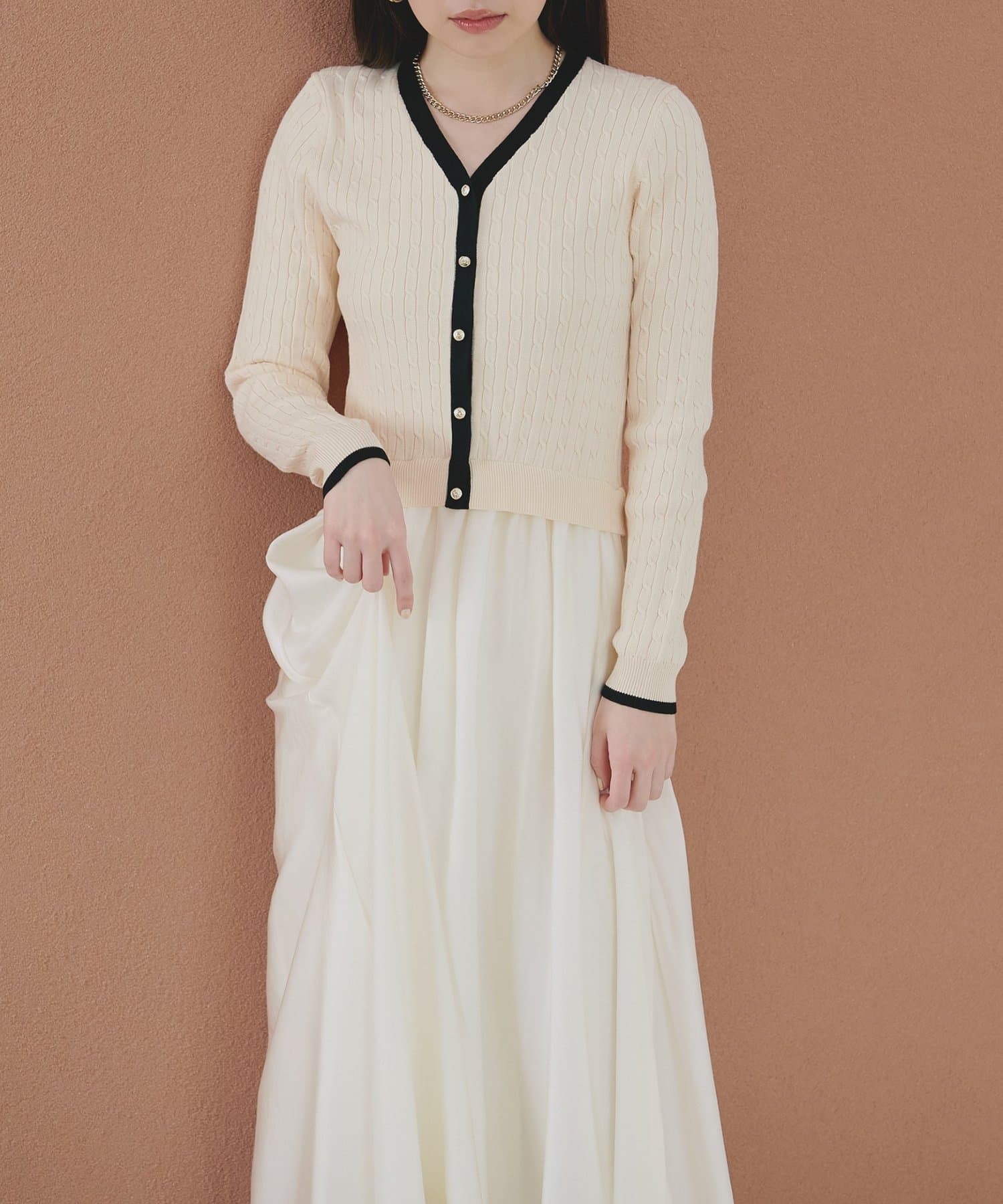 軽やかなサテンと優しいニットの組み合わせがポイントのワンピース。