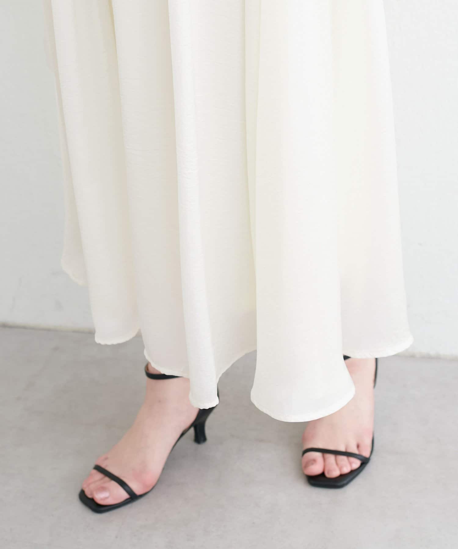 スカート部分には、動くたびに優雅なドレープを生み出す、軽やかなサテンを使用。