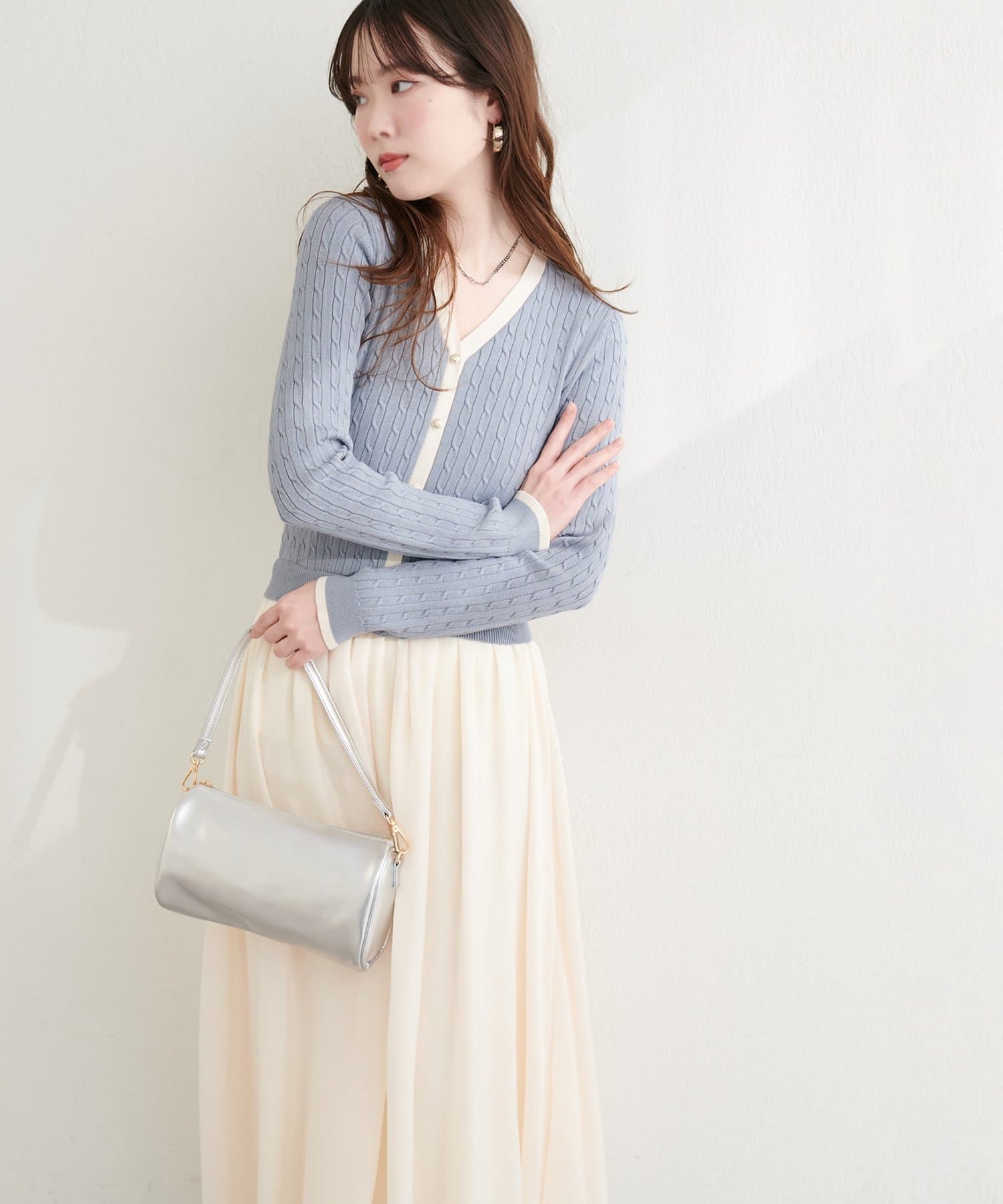 異なる素材が織りなす絶妙なバランスで、トレンド感溢れるデザインです。