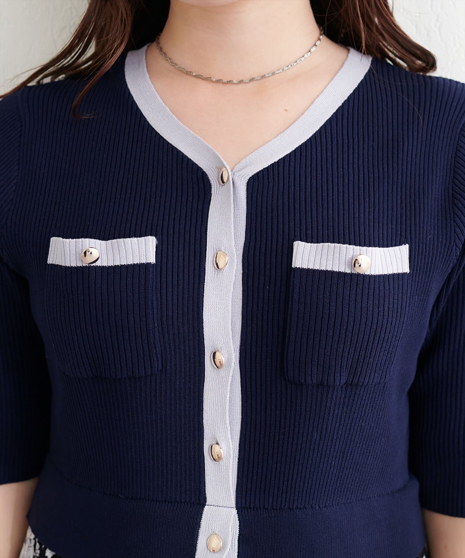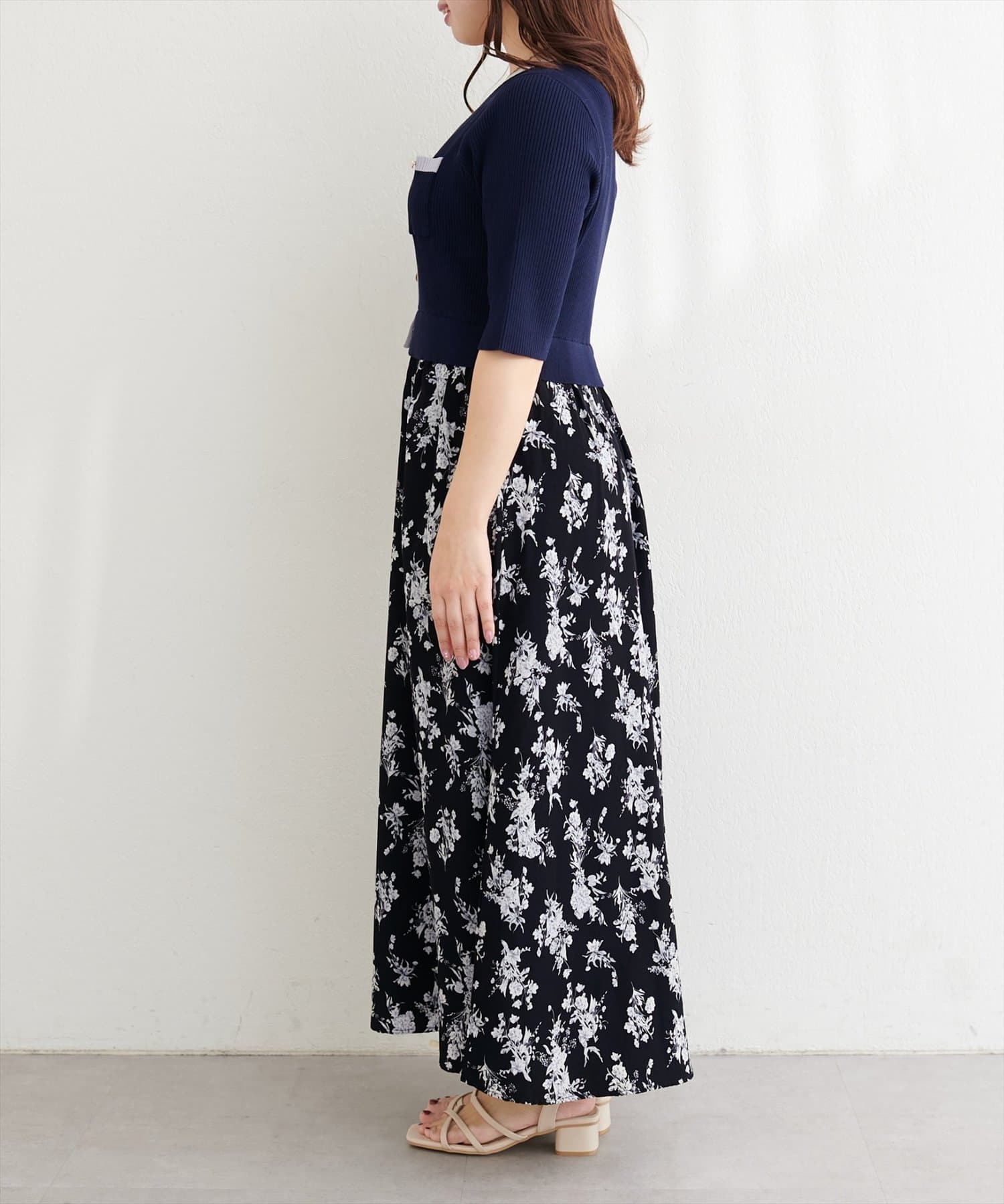 〈canami〉配色ニットドッキングワンピース