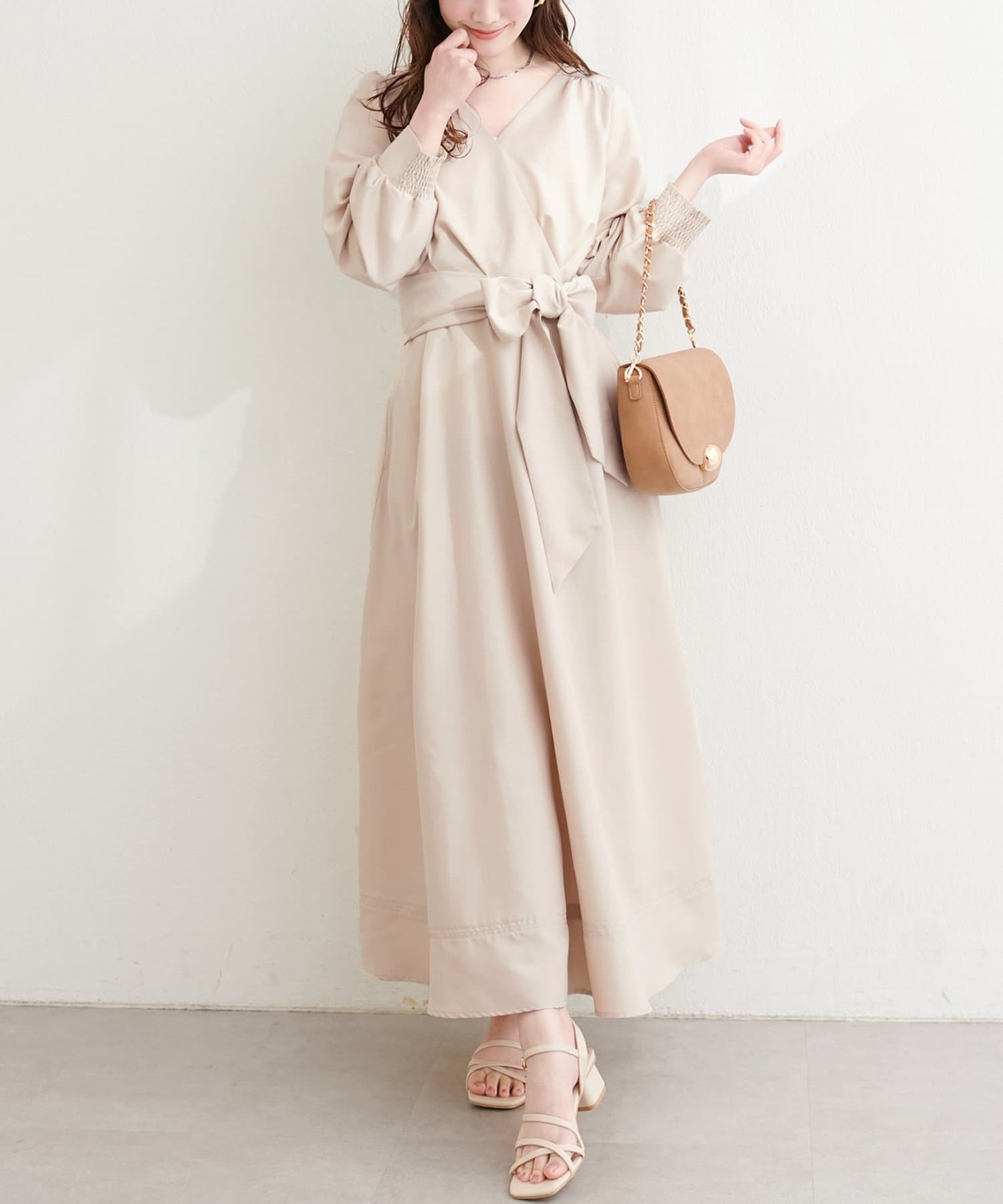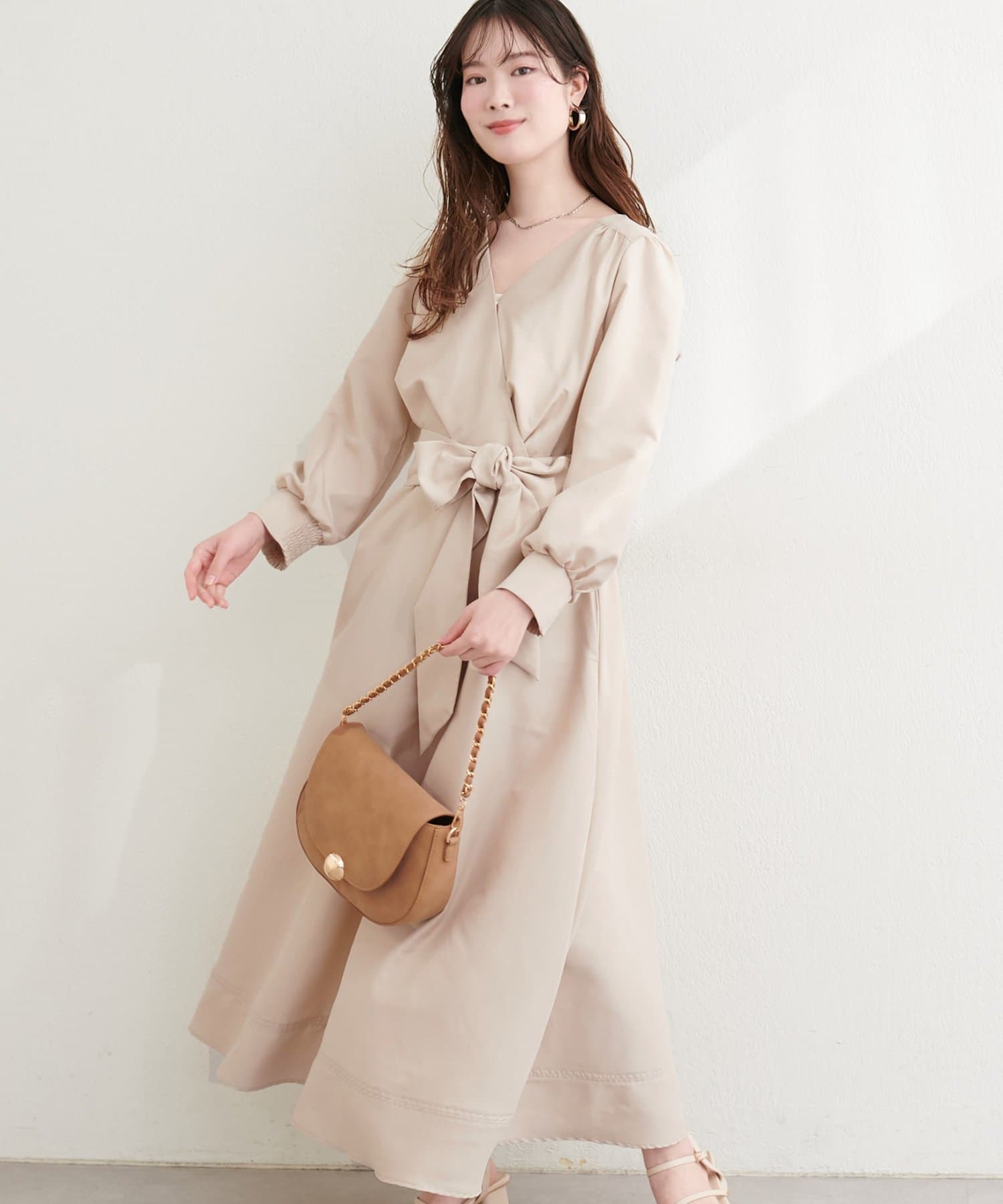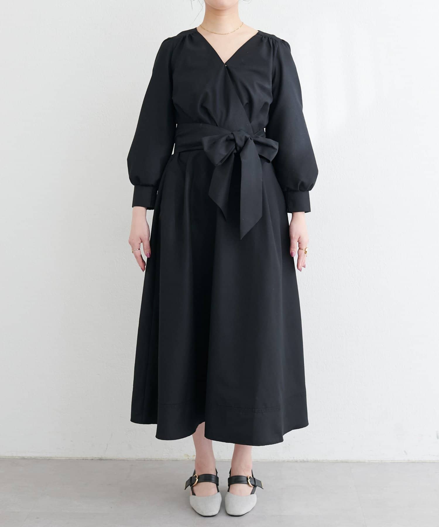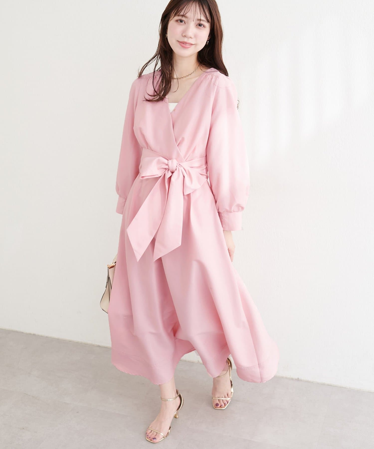 ウエストのリボンは、結び方によって印象を変えられるのがポイント。