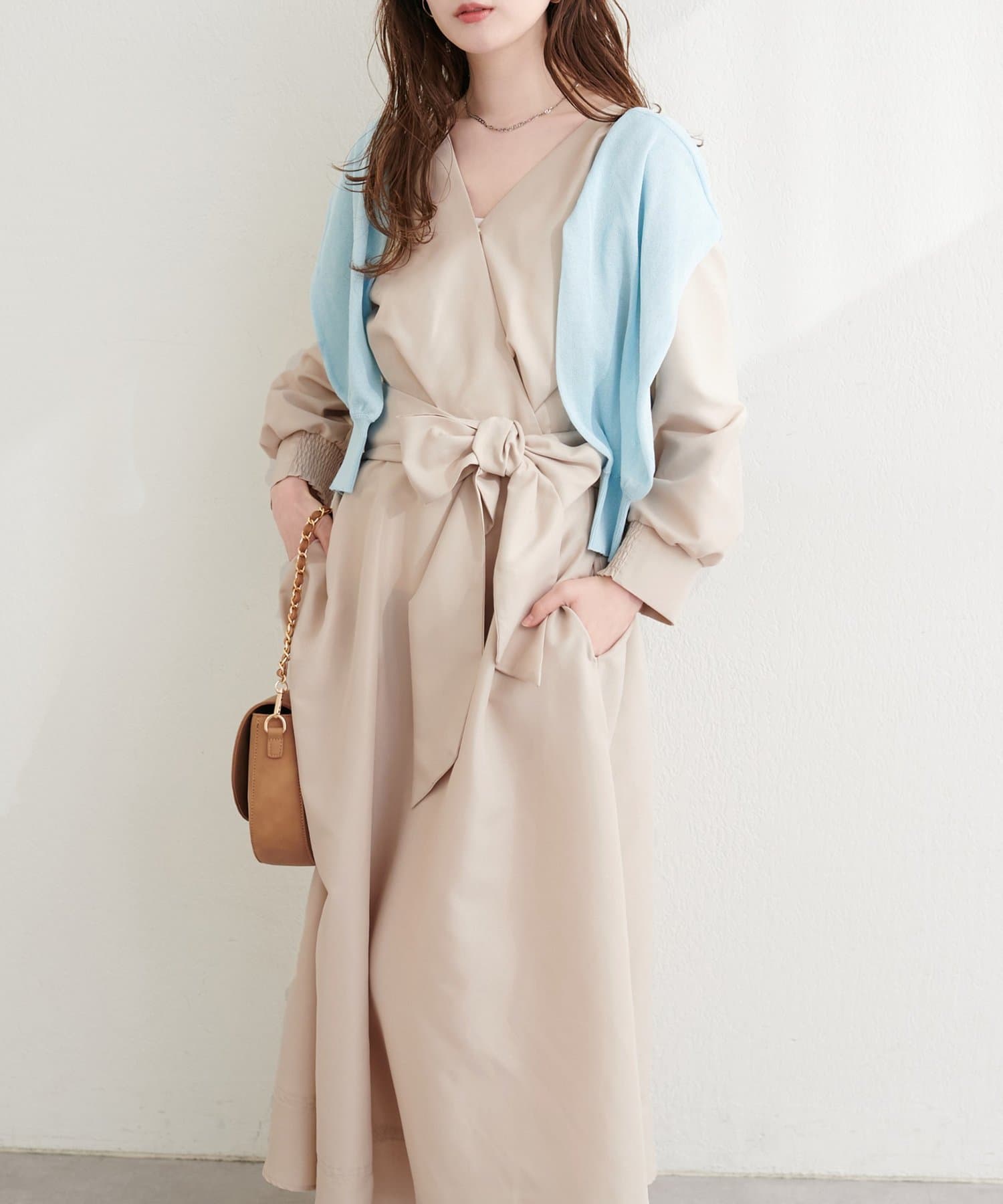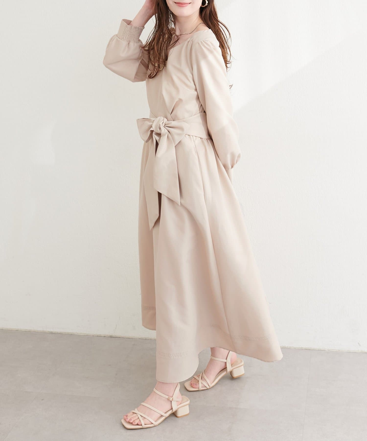 付属のリボンでウエストマークすることで、スタイルアップ効果も期待できます。