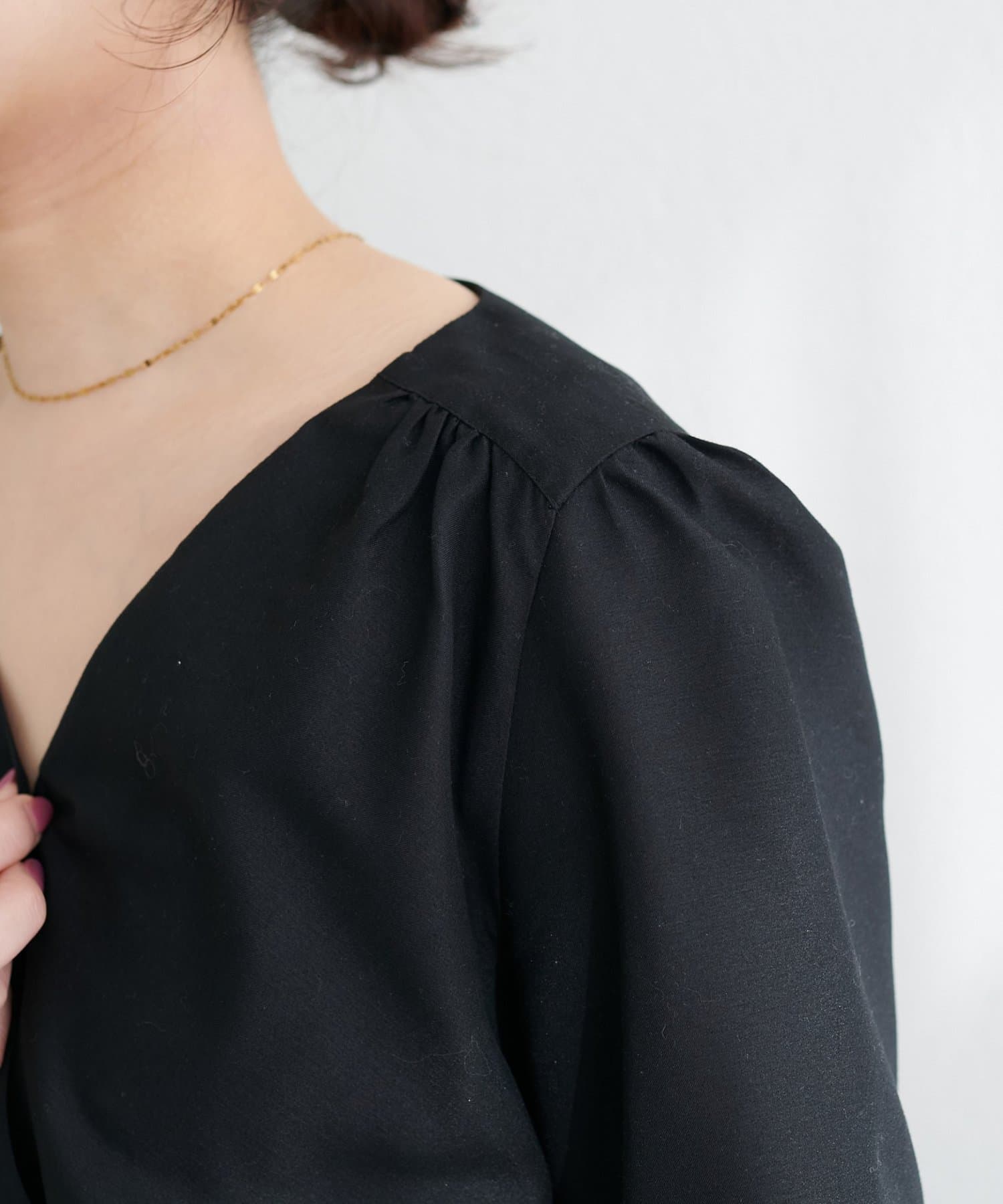袖口にはギャザーを施し、ふんわりとしたボリューム感をプラス。