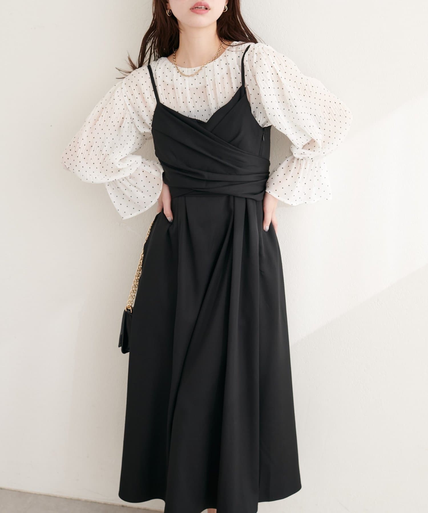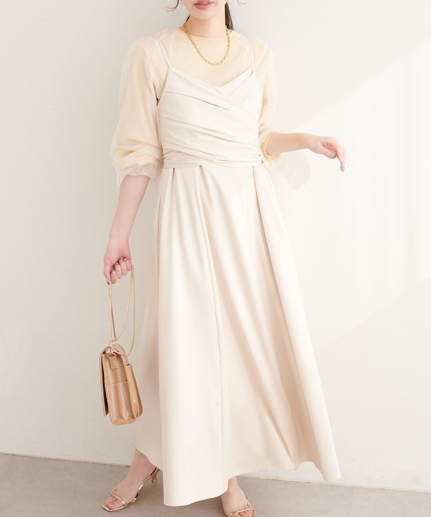 キャミソールタイプなので、インナー次第で様々な表情を楽しめます。
