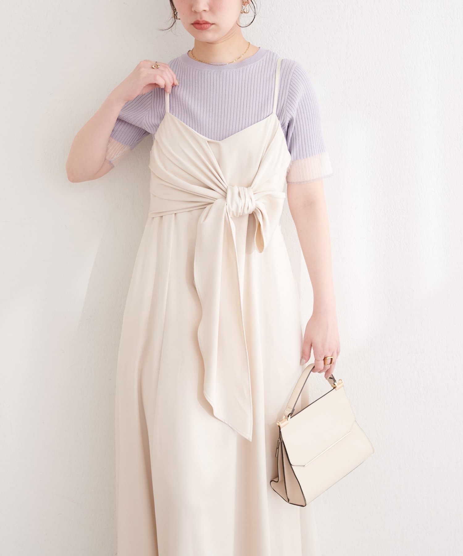 natural couture(ナチュラルクチュール) 〈osono〉アシメカシュクールリボンキャミワンピース