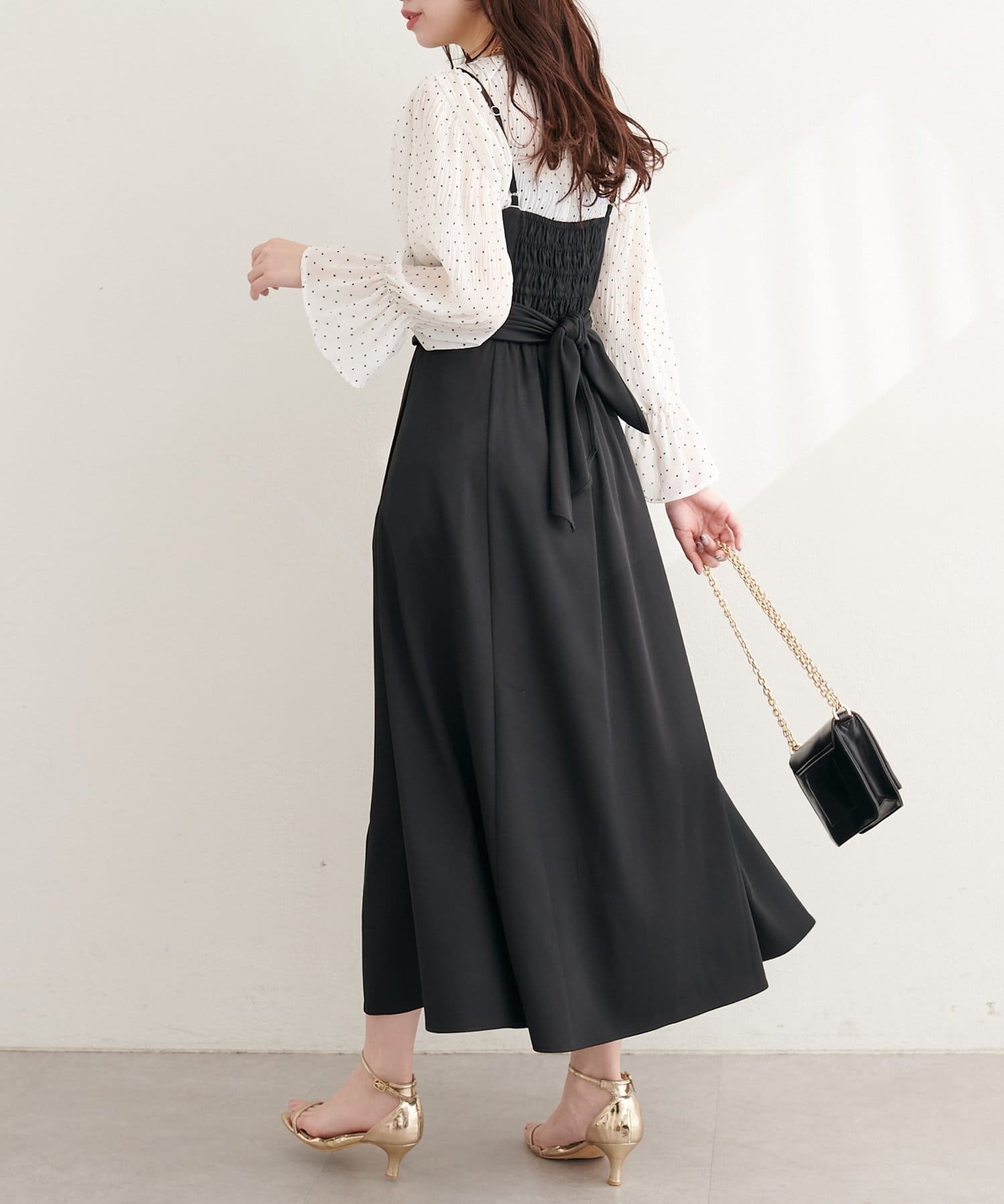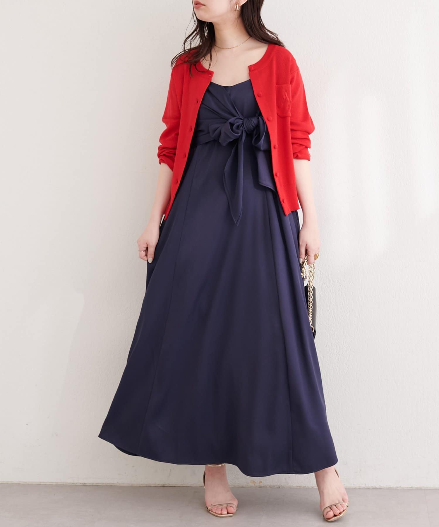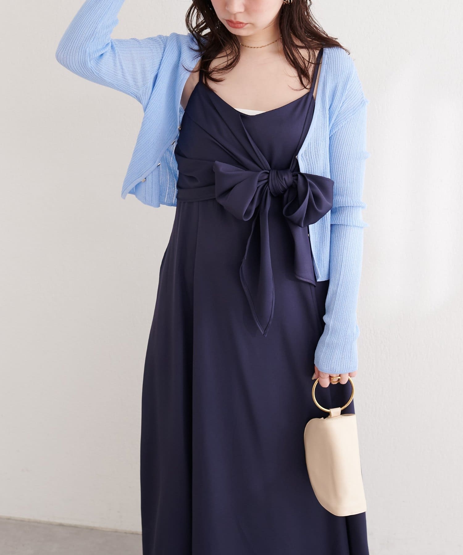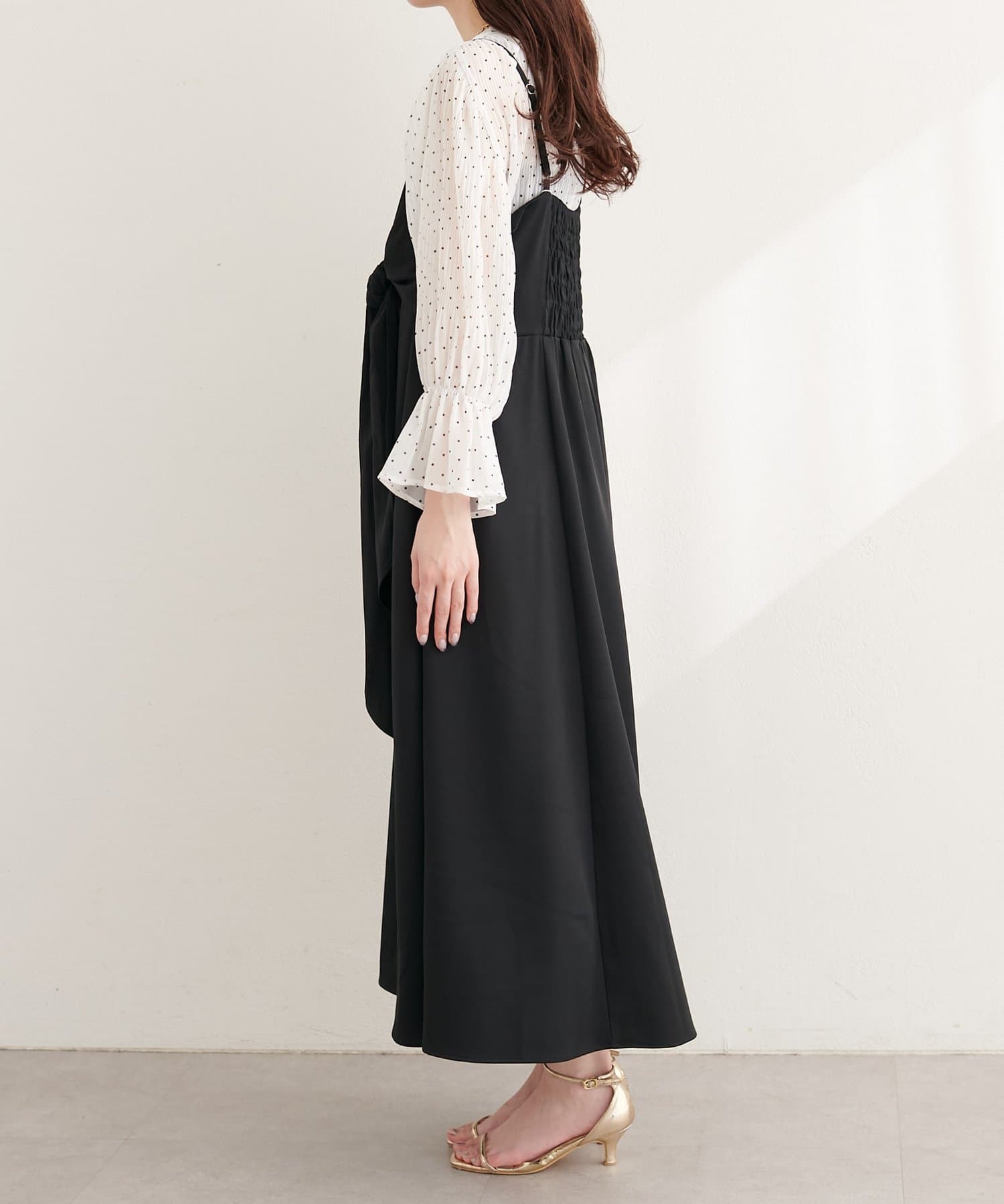 高めの位置で結ぶリボンは、スタイルアップ効果も期待できる優れもの。