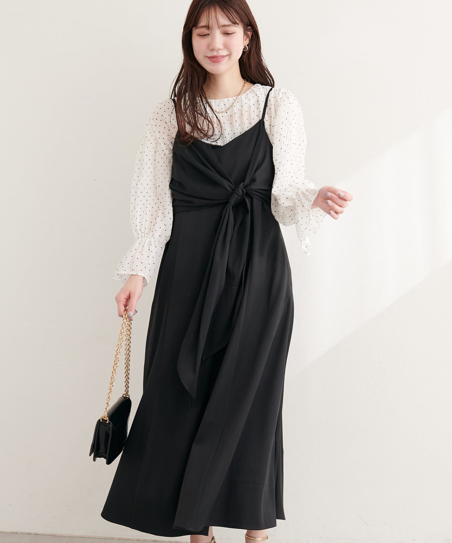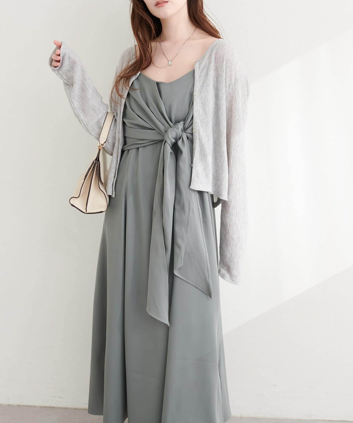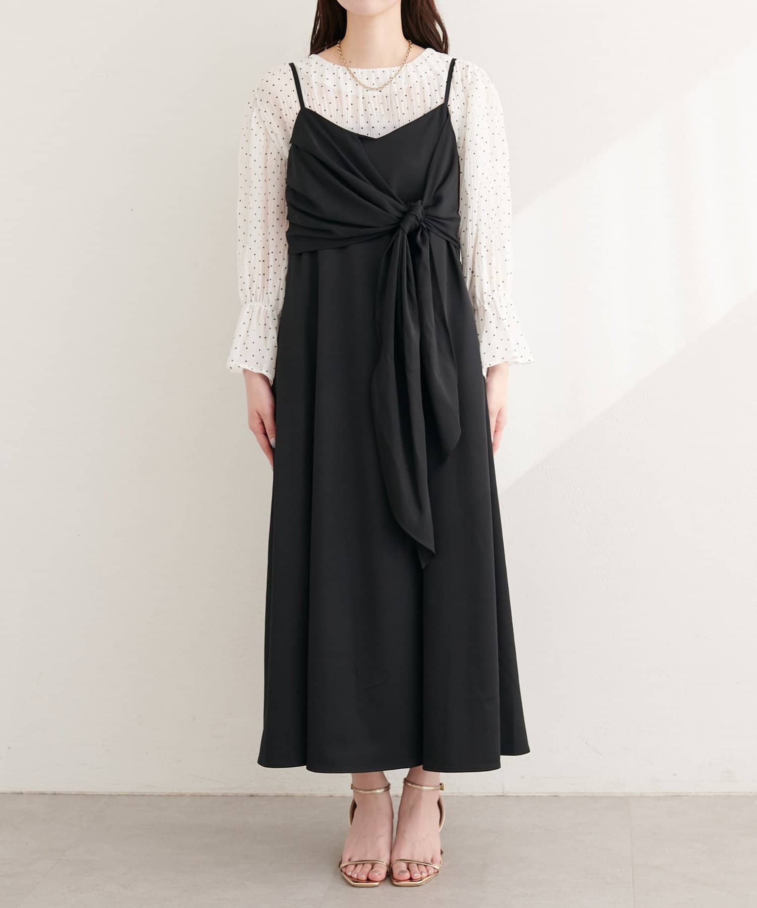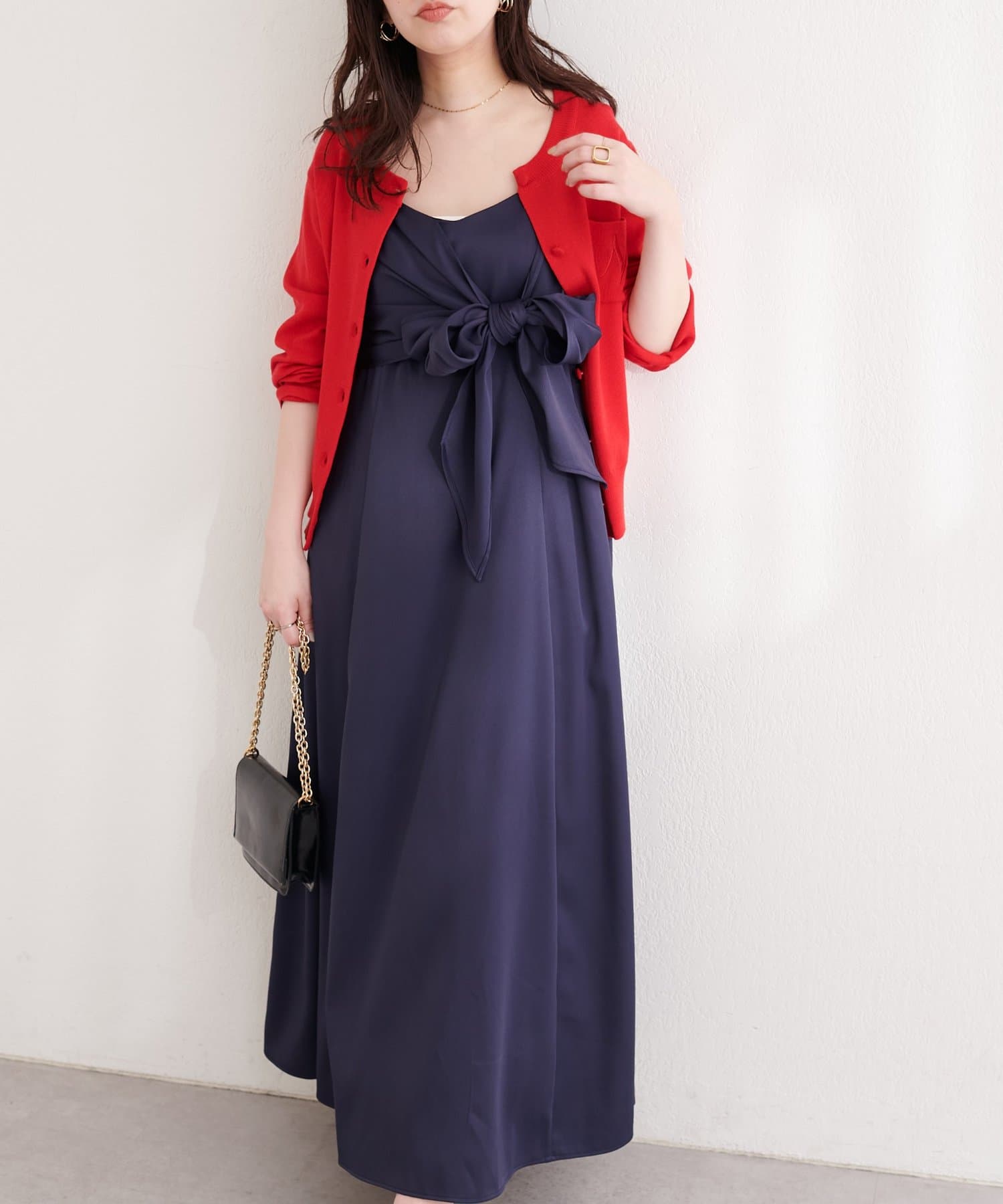 高めの位置で結ぶリボンは、スタイルアップ効果も期待できる優れもの。