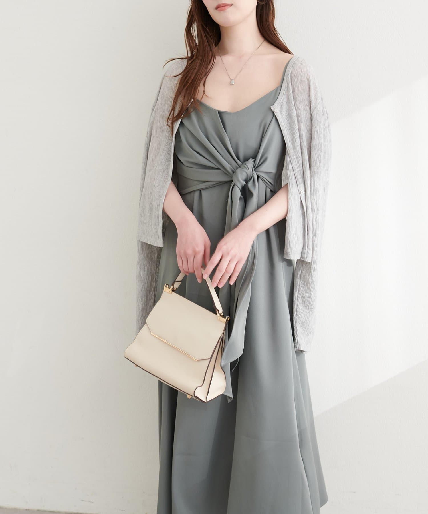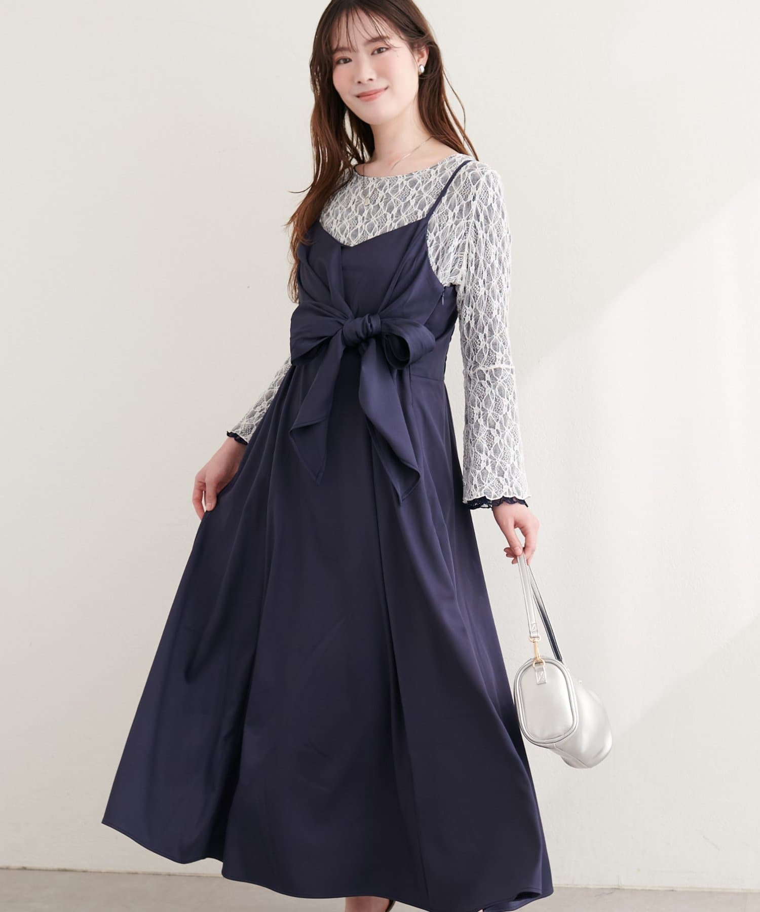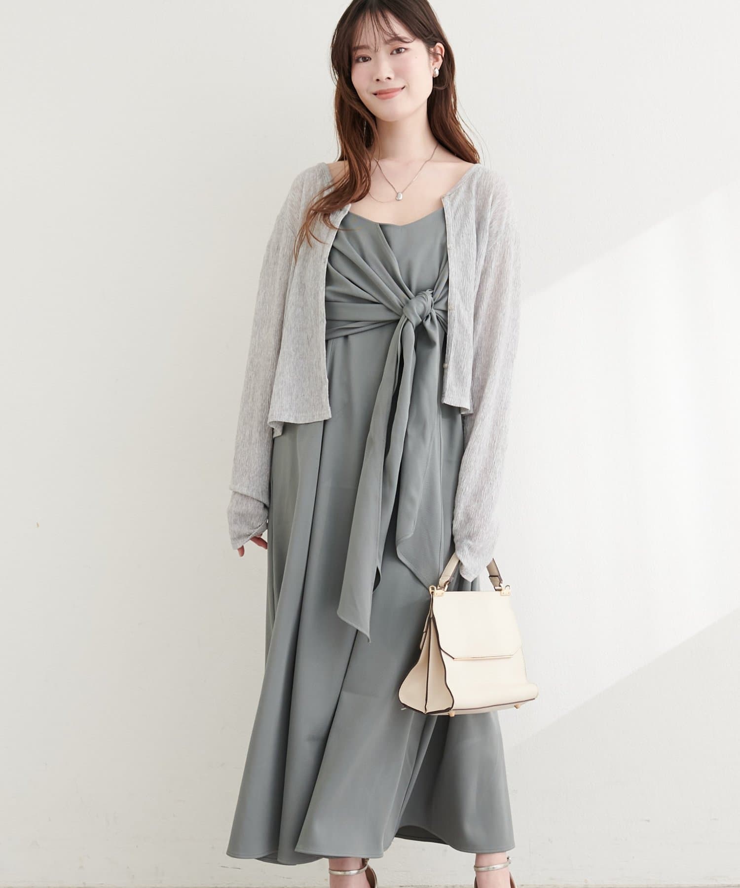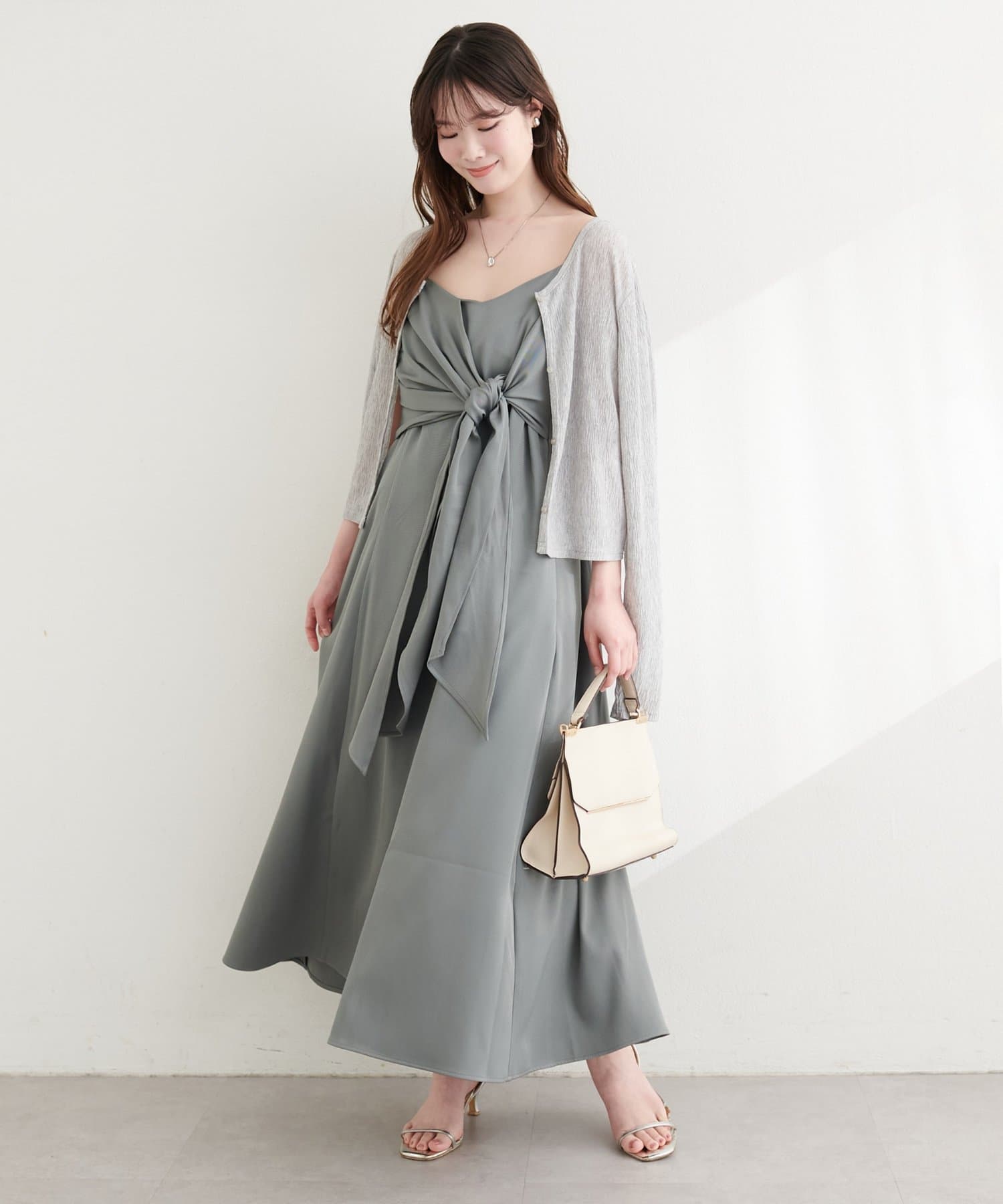 高めの位置で結ぶリボンは、スタイルアップ効果も期待できる優れもの。