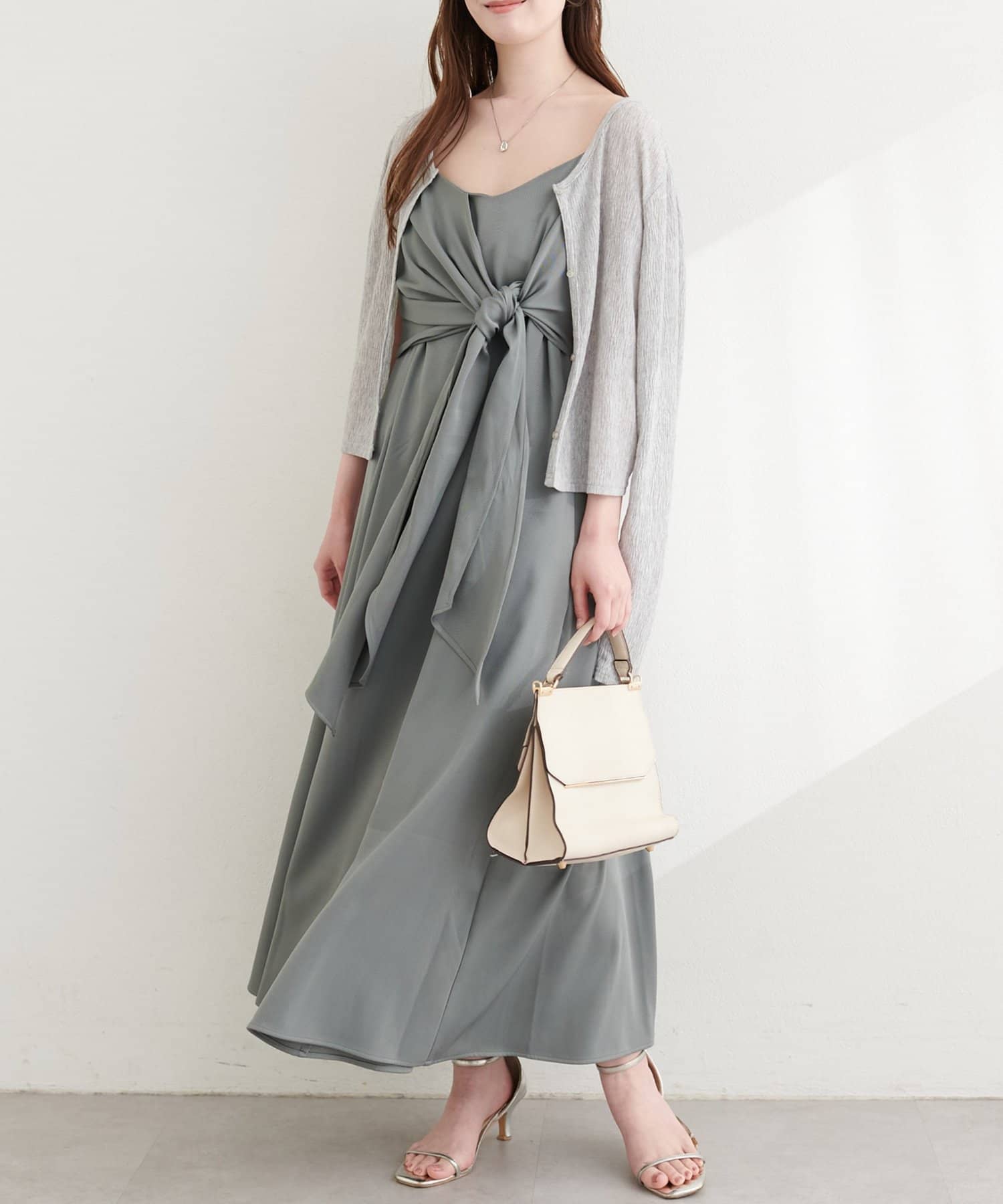 〈osono〉アシメカシュクールリボンキャミワンピース