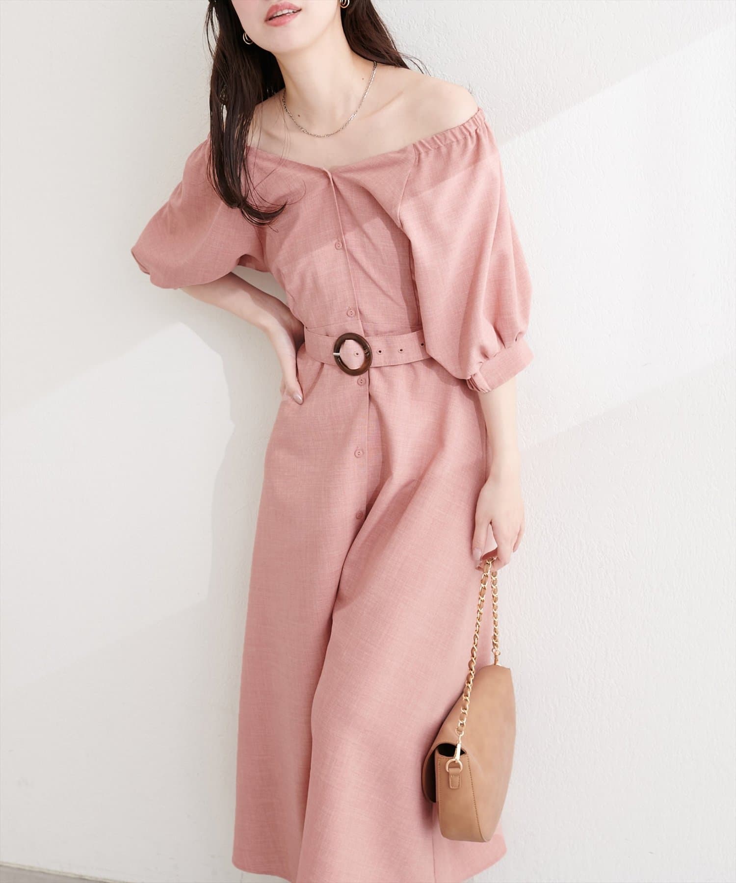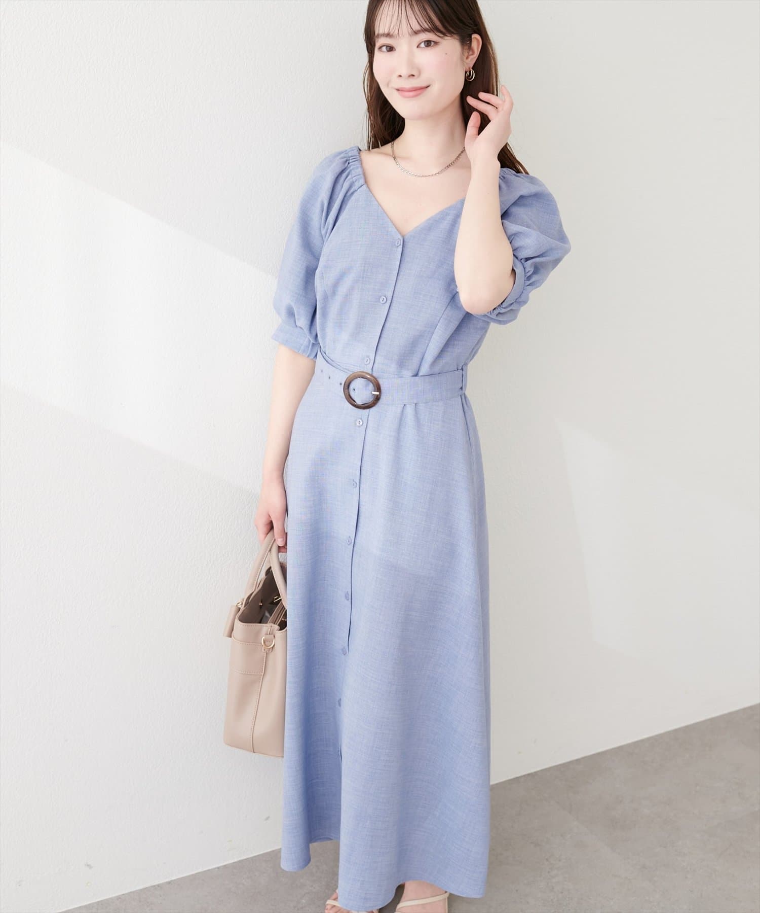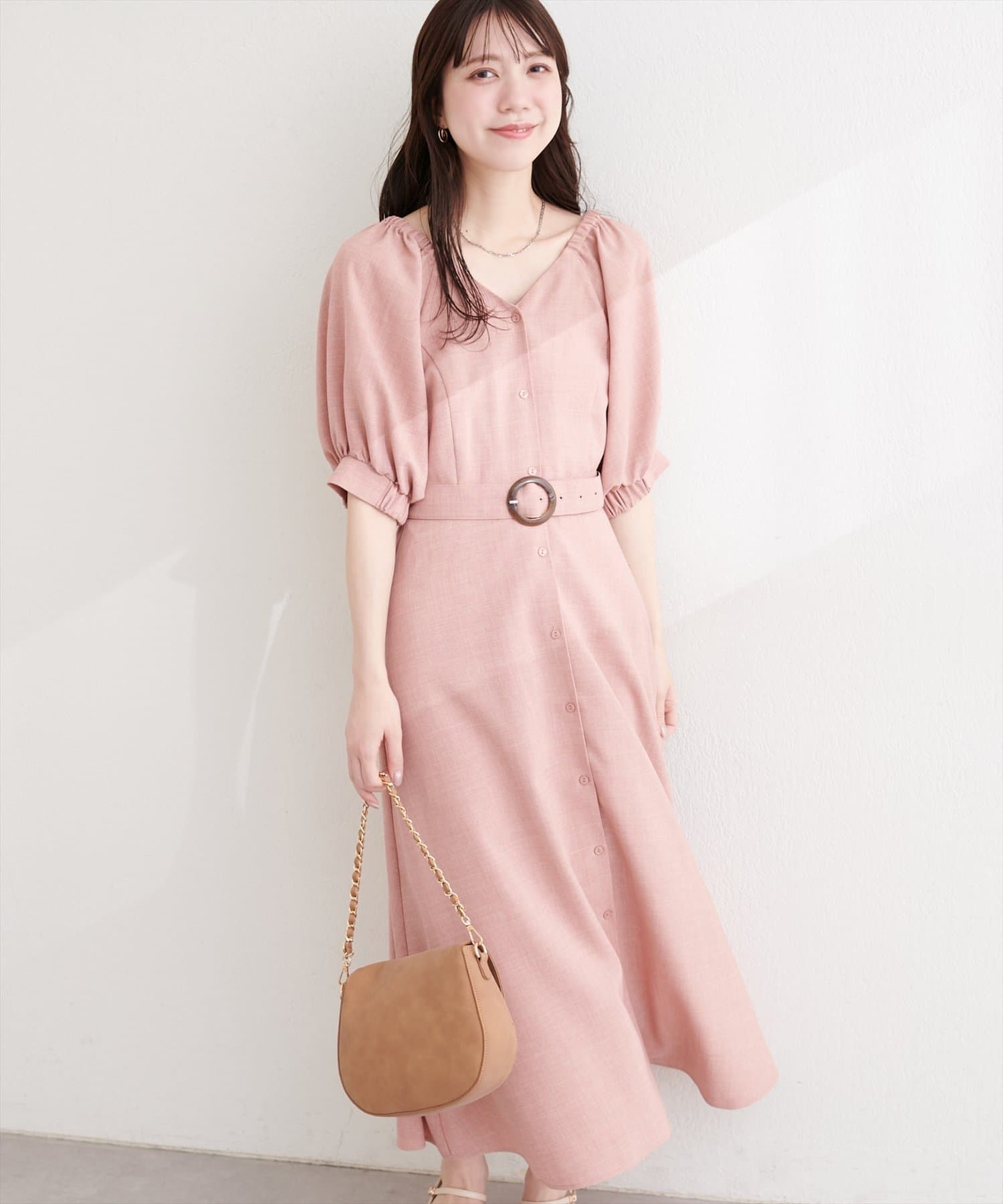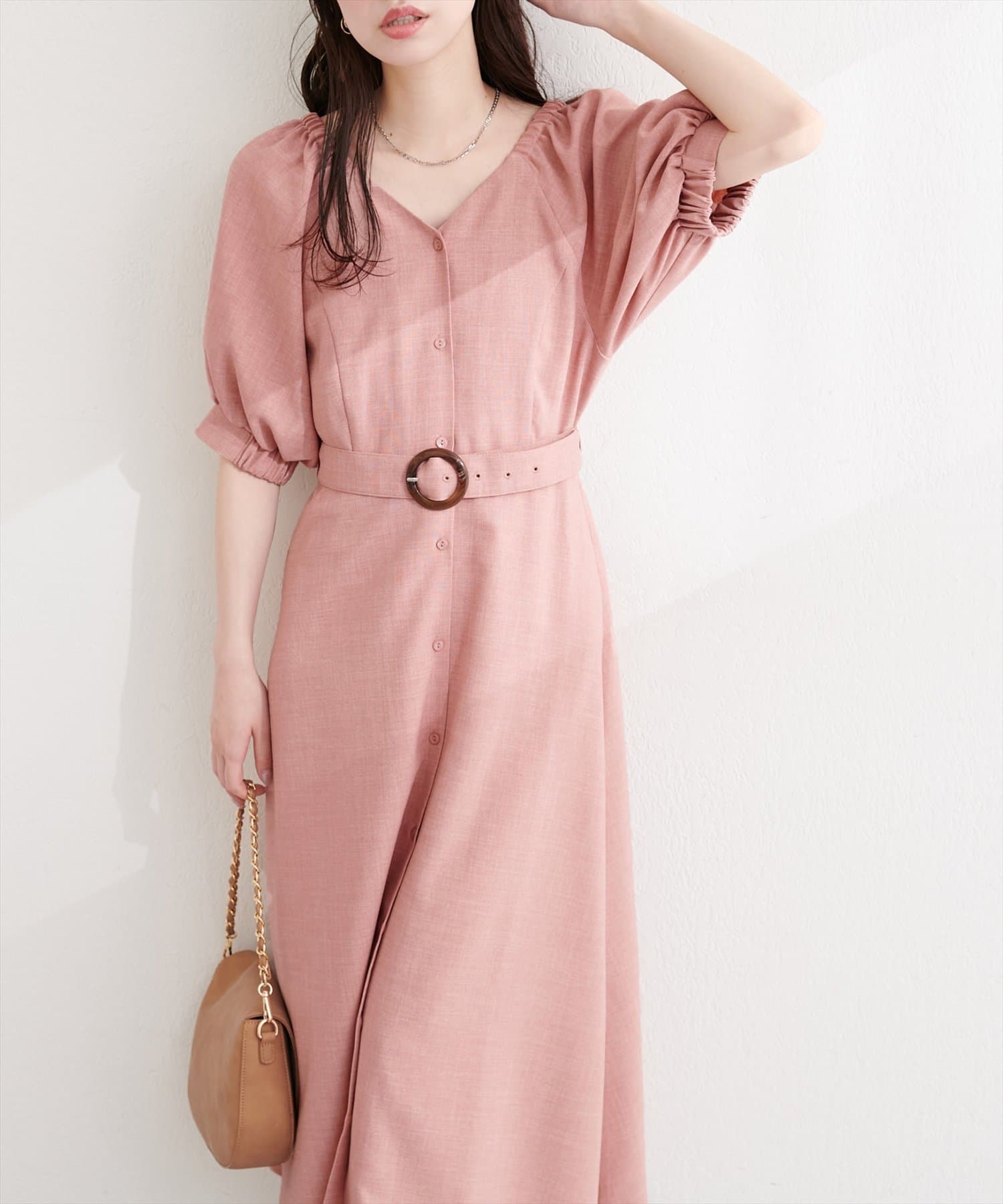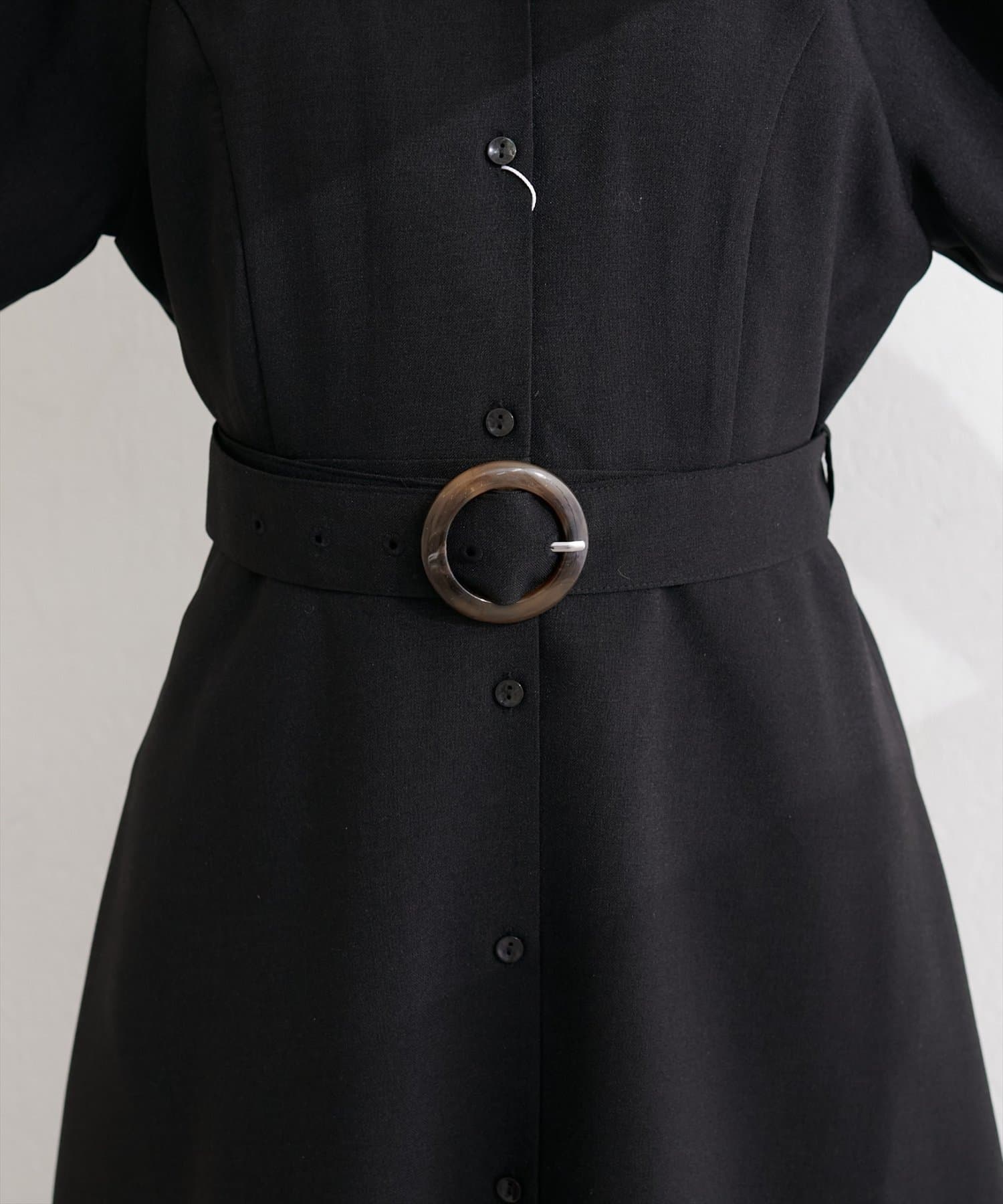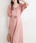 フロントボタンベルト付きワンピース