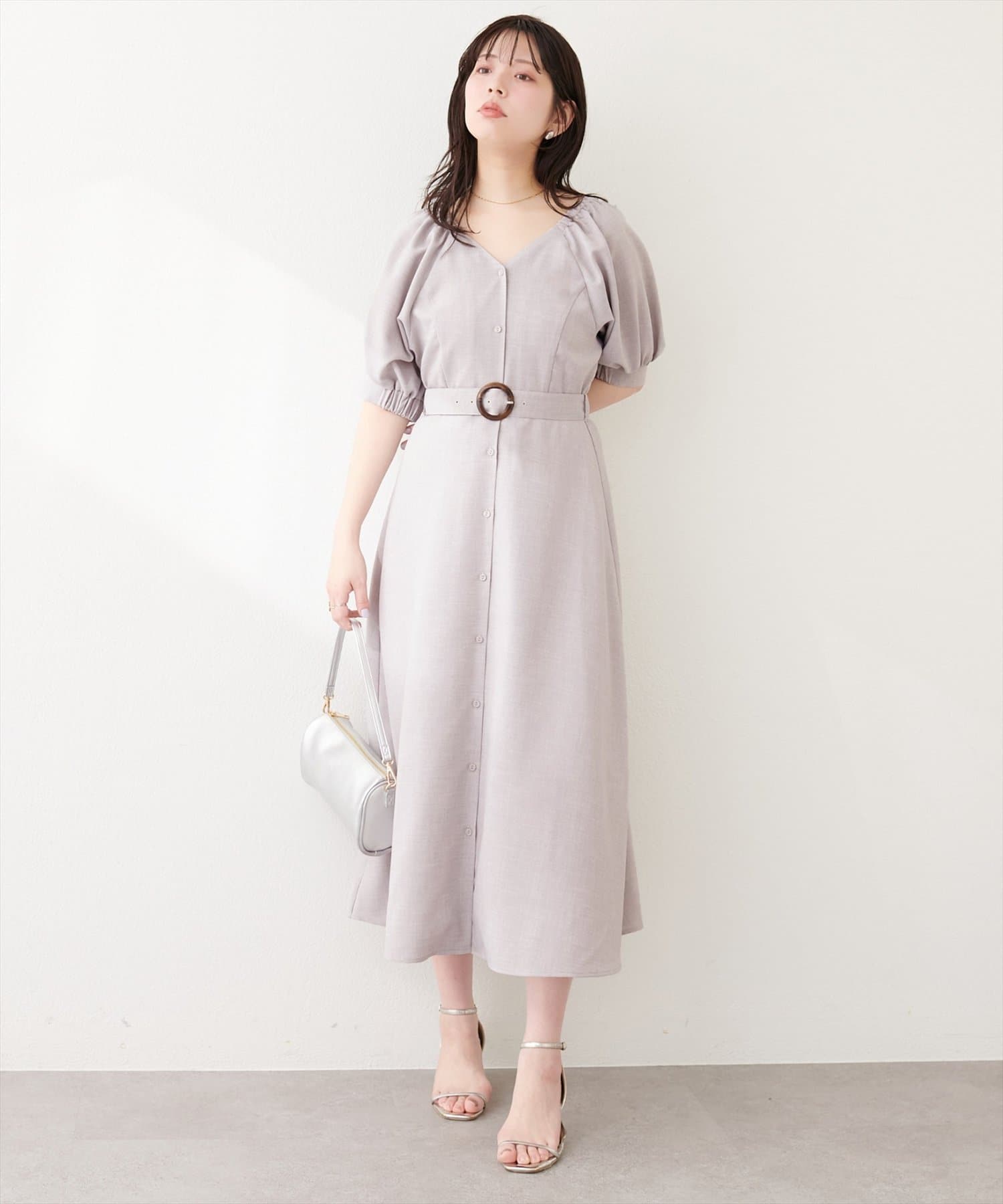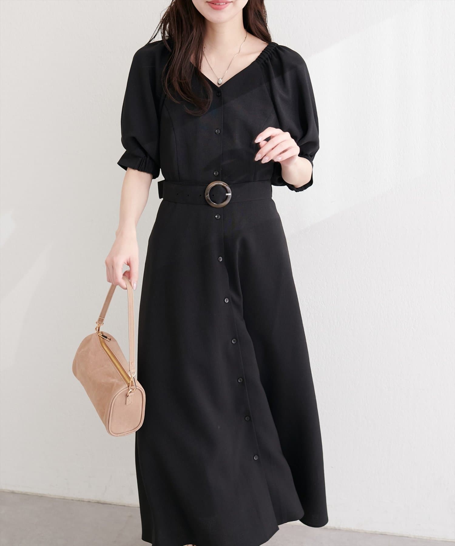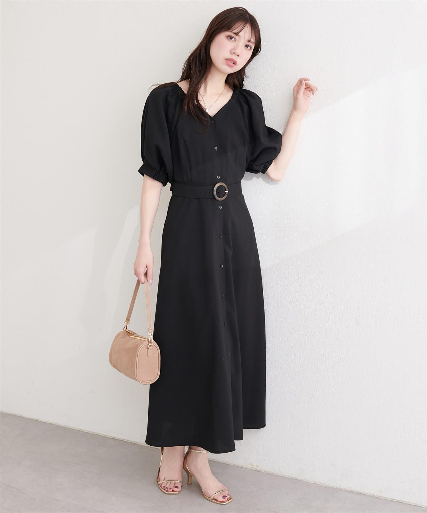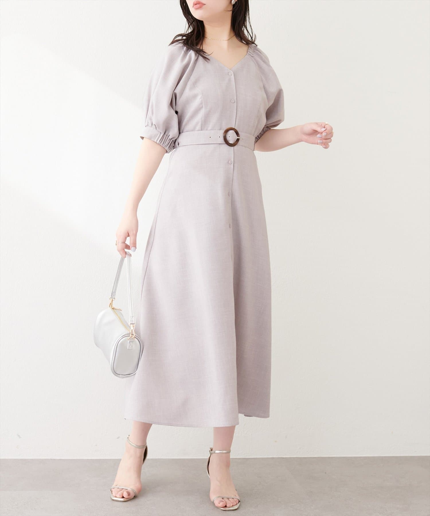 フロントボタンベルト付きワンピース