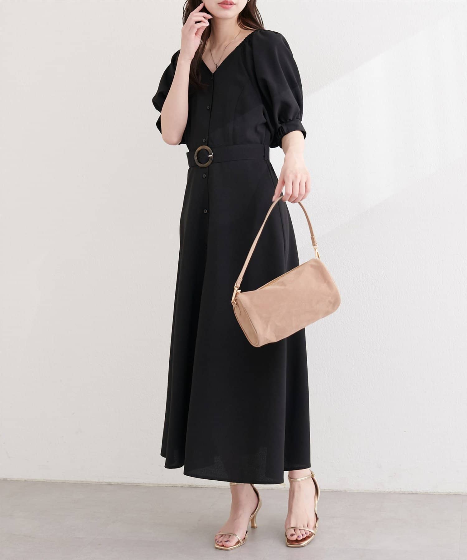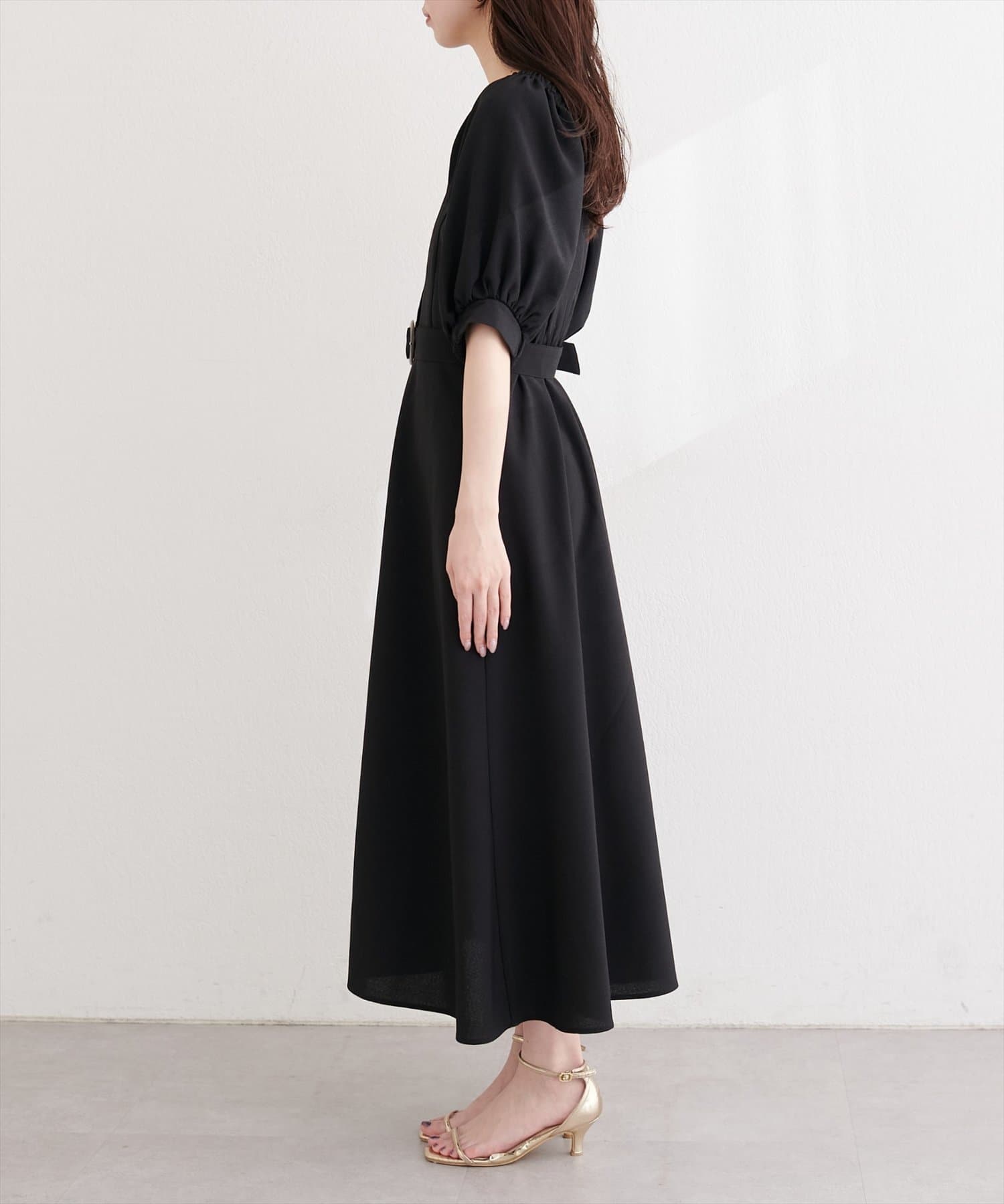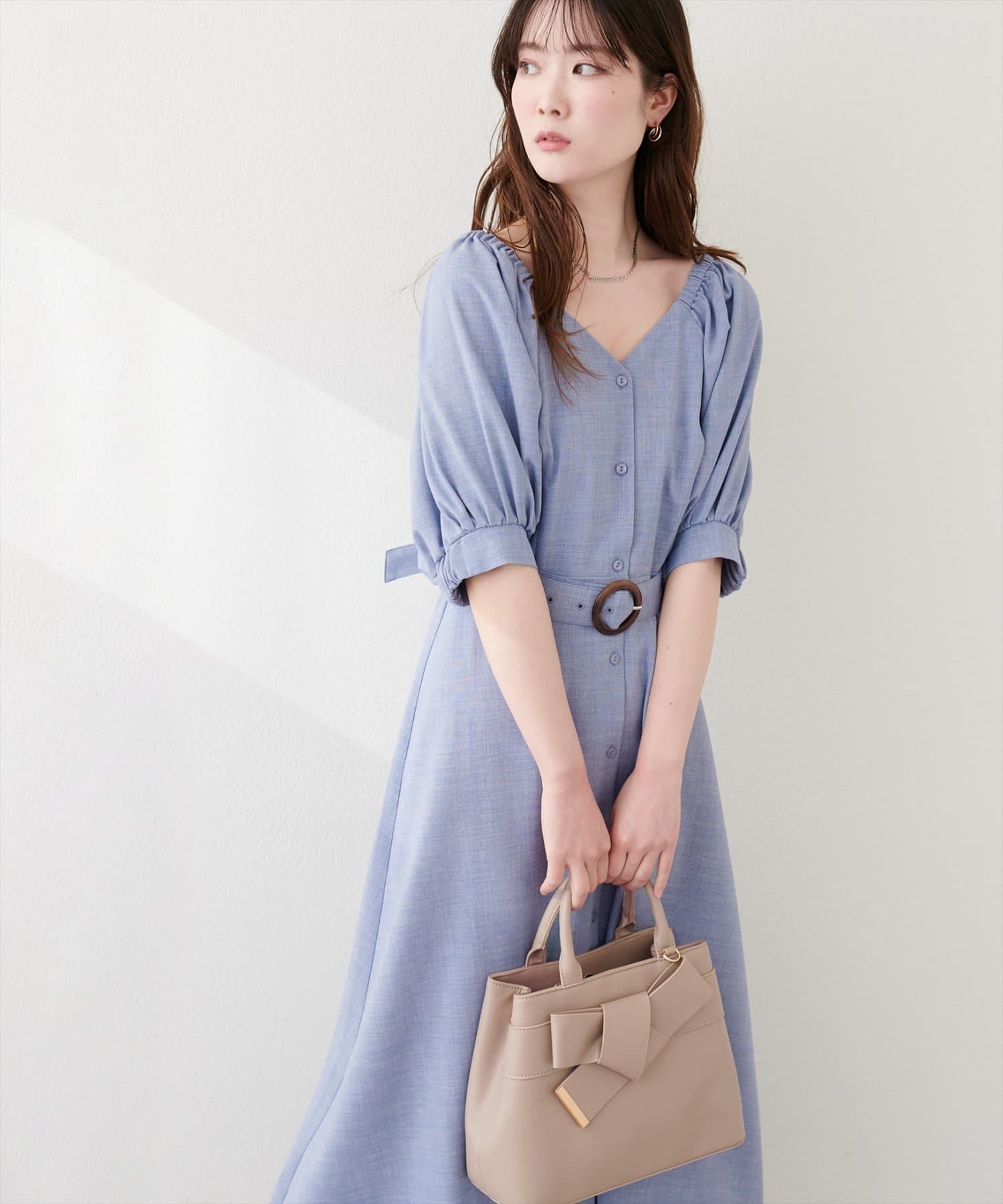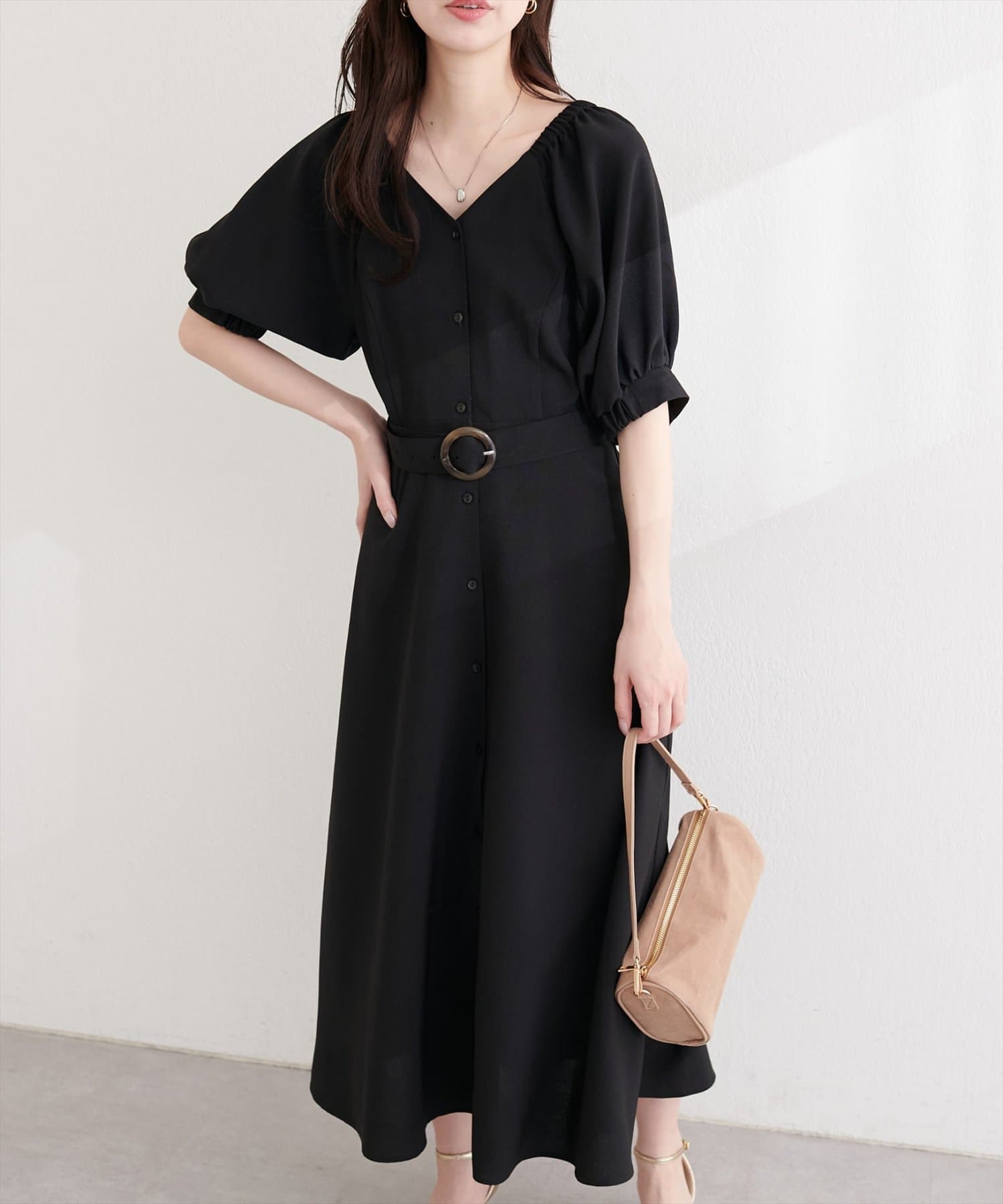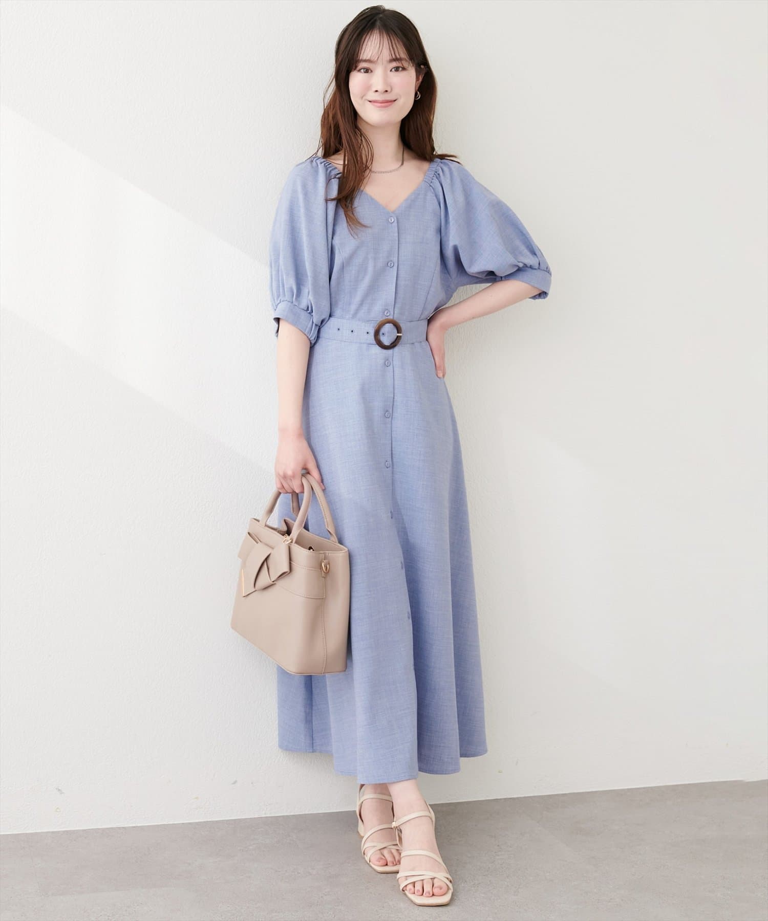 フロントボタンベルト付きワンピース