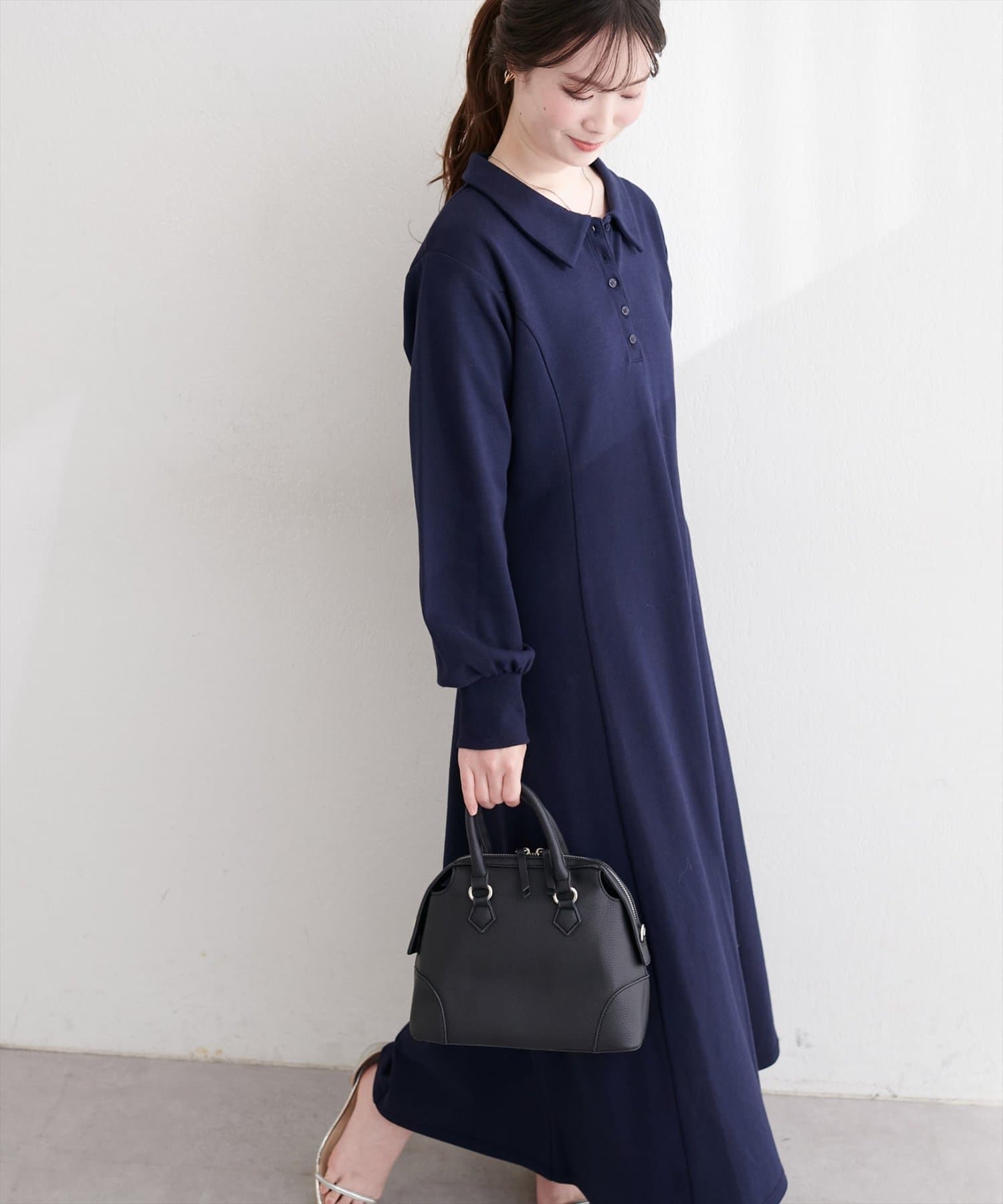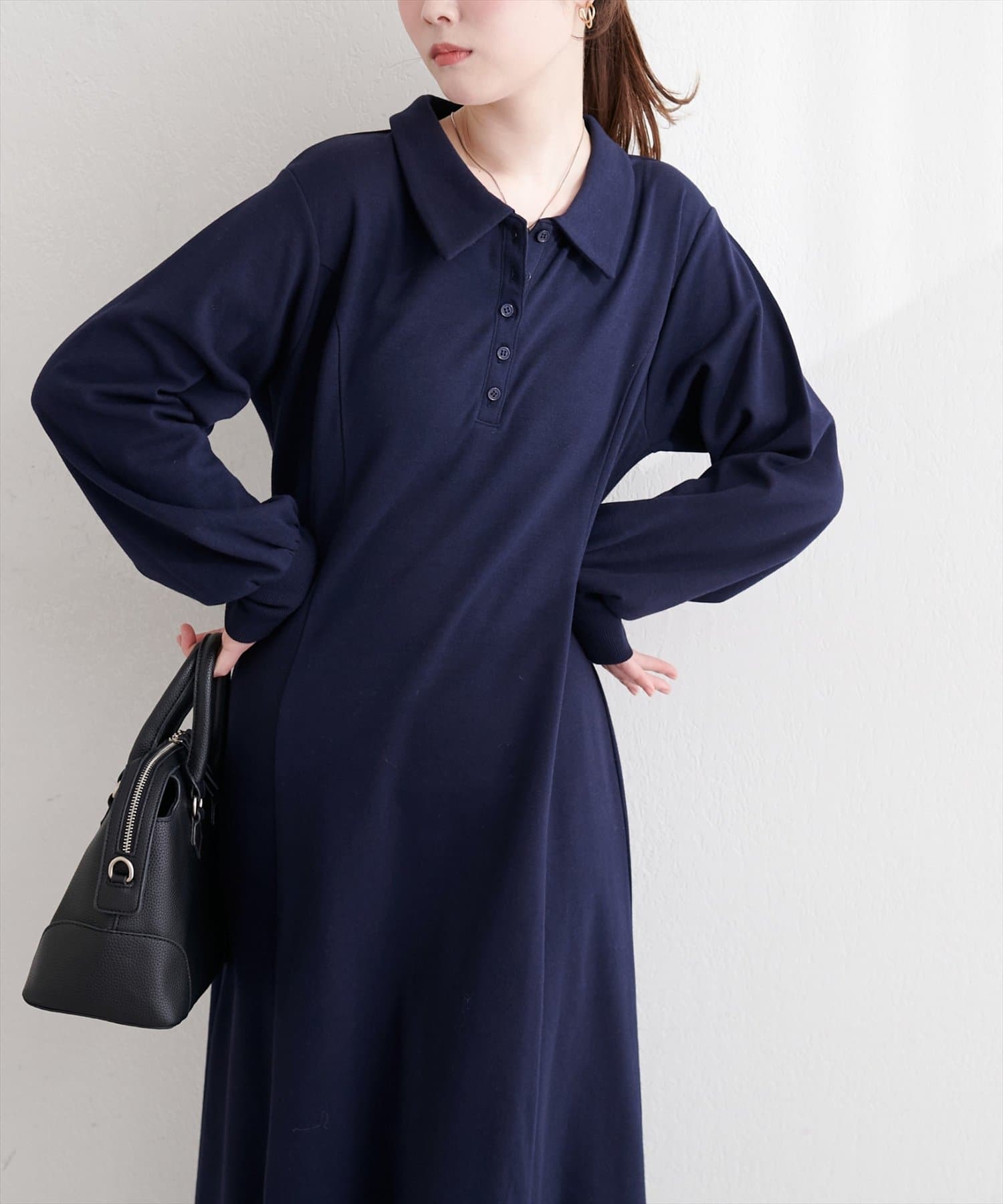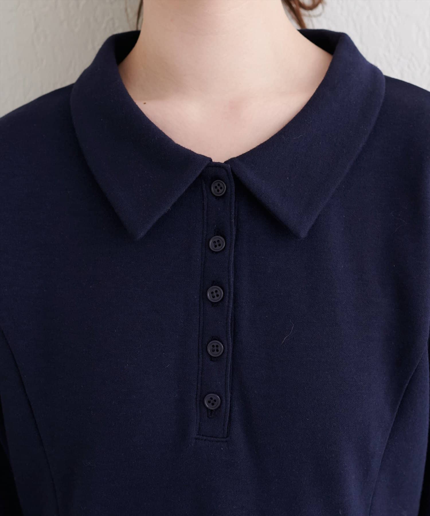 ポロシャツならではのマニッシュな襟元と、フェミニンなフレアシルエットの絶妙なバランスが、他にはないデザイン◎