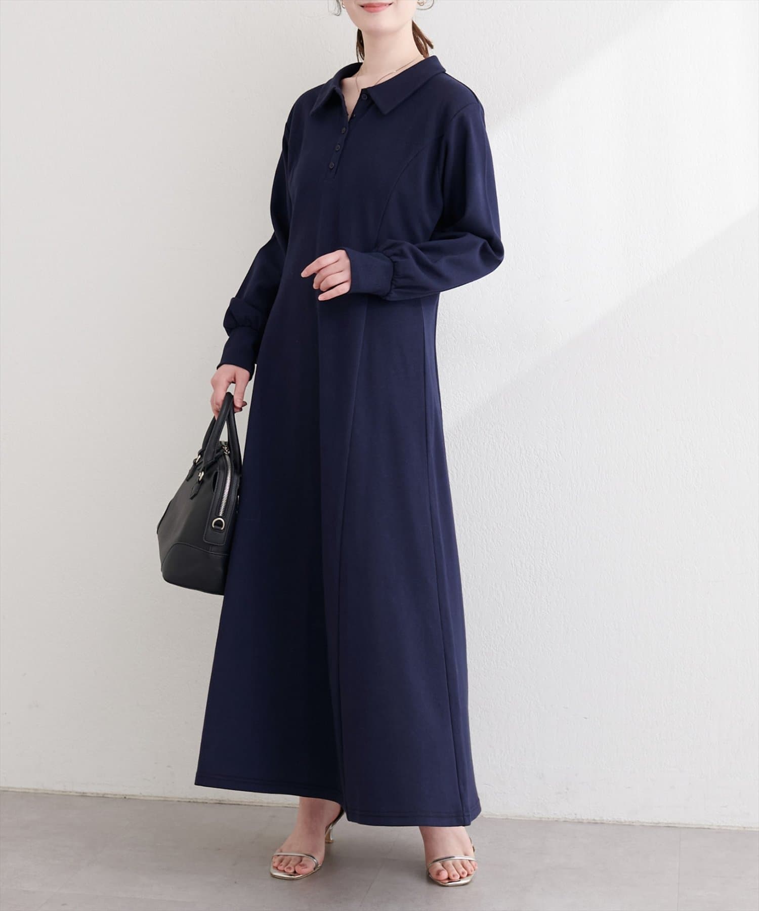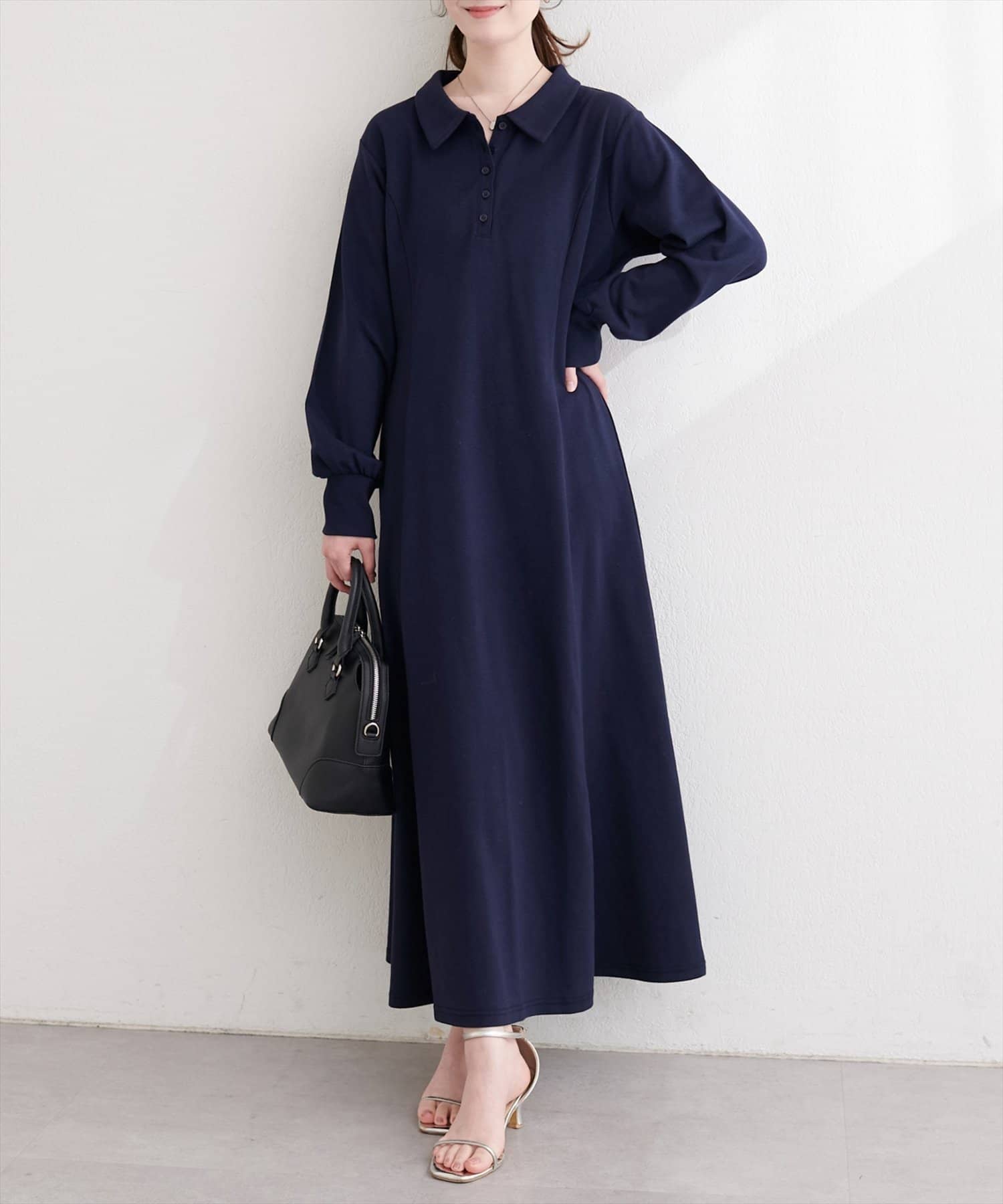 ウエストから緩やかに広がるラインが、女性らしい曲線を際立たせ、スタイルアップ効果も期待できます。