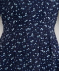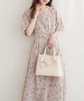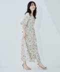 鮮やかな色合いのフラワープリントが目を引く、上品なワンピース。