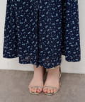 膝下丈のフレアスカートは、動くたびに優雅なシルエットを描き出し、エレガントな雰囲気に。