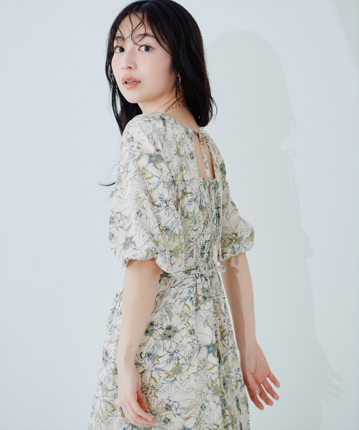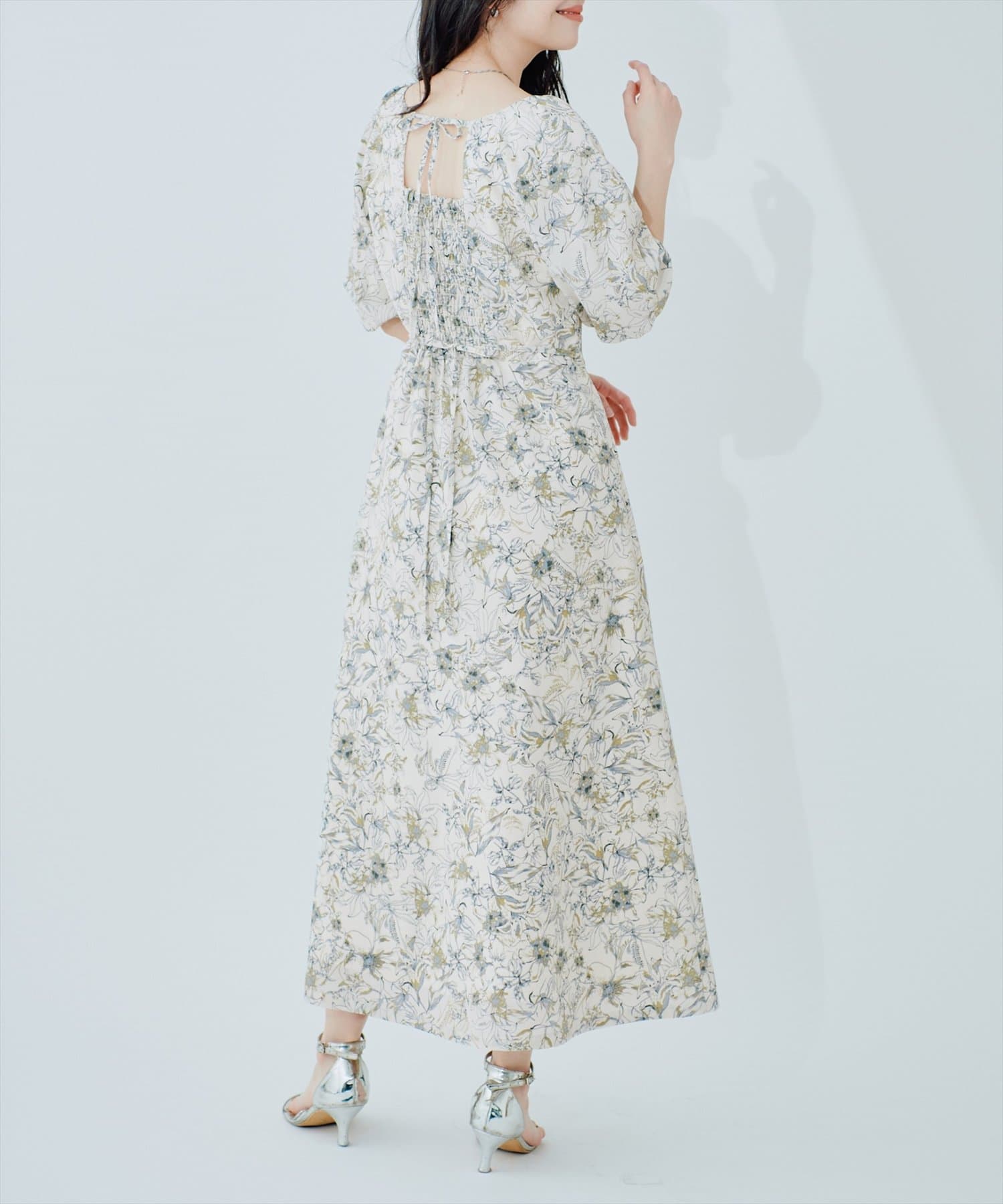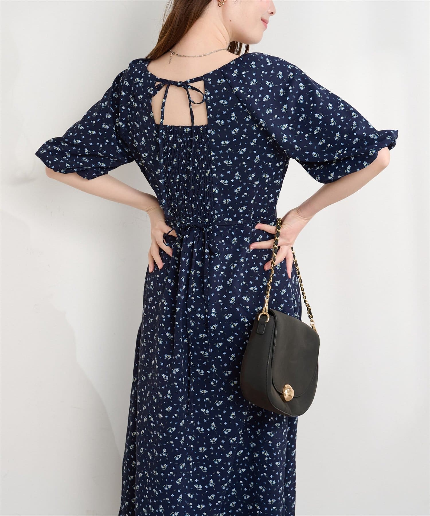 首元、ウエストリボンでバックスタイルも手を抜かない一枚です。